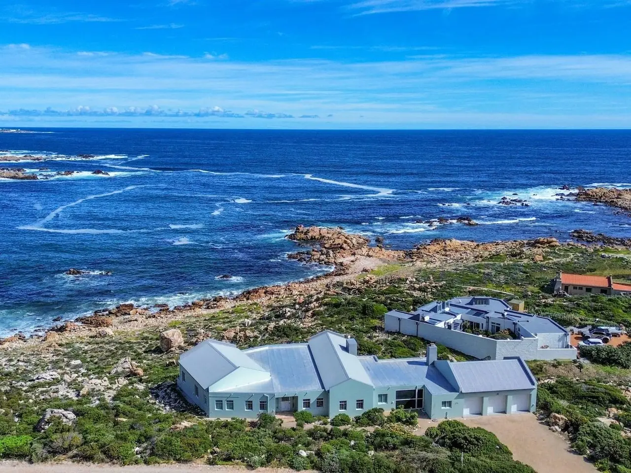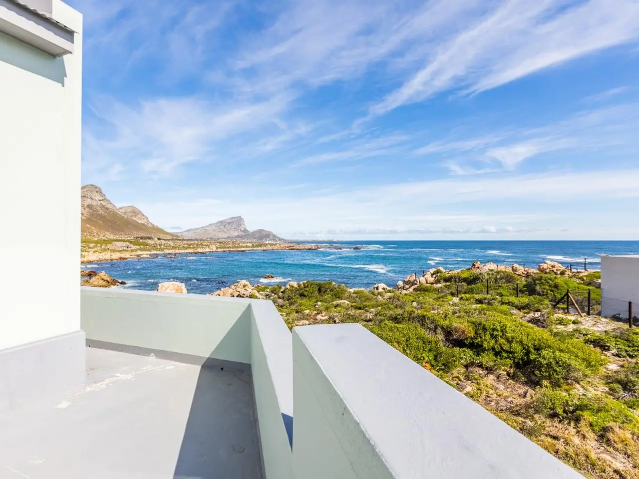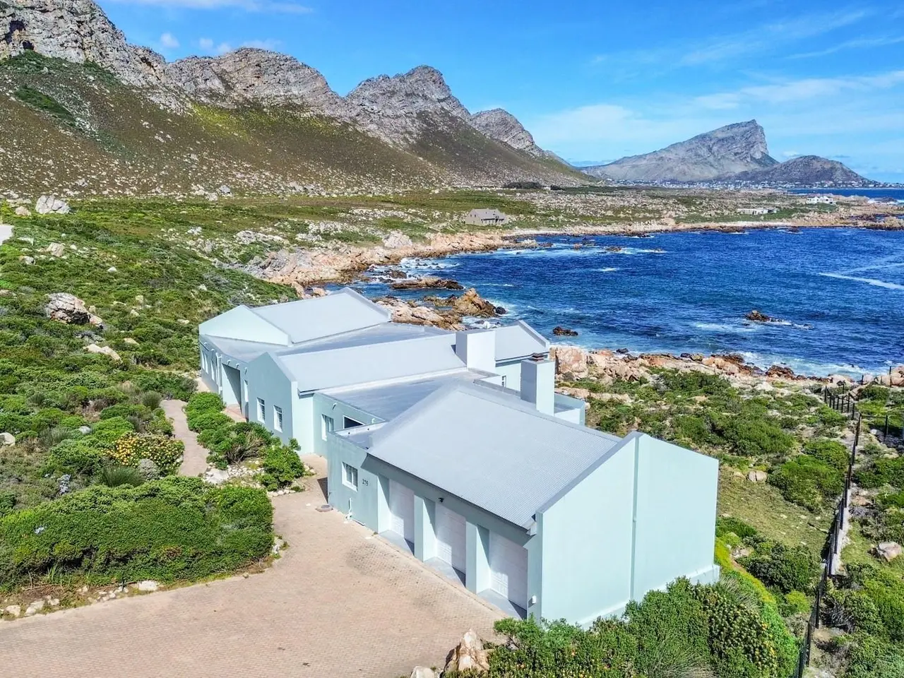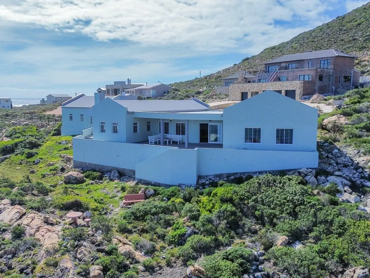 JOINT Mandate - A discreet and inviting entrance takes one into this south-west facing, single storey home on the rocks. Enter into a formal lounge with study area opening onto a roofed stoep offering sweeping ocean views. The main suite is on the south-west side with ocean views from most of the windows. A comfortable well-cupboarded dressing room divides the rather comfortable bedroom from a spacious and sunny full bathroom. There is a sunny fourth/guest bedroom/hobby room on the east/mountainside. The 2nd + 3rd bedrooms which are bathed in sunlight share a full bathroom and are off the landing to the east with the tv, games + 2nd dining area to the south-west with sea views from all the windows. The spacious open-plan kitchen/dining area with sewing nook/school corner opens onto a sea-facing patio to the south-west and to the east is a cosy enclosed area which has many uses and an airy fitted laundry. The entire kitchen/dining area is tiled with a fireplace rounding off this areas' offerings. Stack doors, edged with stunning architraves allow for both the formal lounge and tv/games area to be closed off, thus kids/grandparents and parents can all visit/laugh and play without irritating the other. Wine racks abound in various areas in the kitchen. Walk-in dry food cupboard. Direct access to a 3 car garage with auto roll-up doors. There is a 3rd bathroom off the garage. 2 x Geysers. Perimeter beams. All blinds and curtains remain. Trellidoors on all sliding doors, BURGLAR BARS on all windows. Indigenous fynbos garden with full irrigation. The bedrooms/formal and informal living areas have vinyl flooring. BICs throughout. The property extends down to the rocks. A stunning property with much to offer.