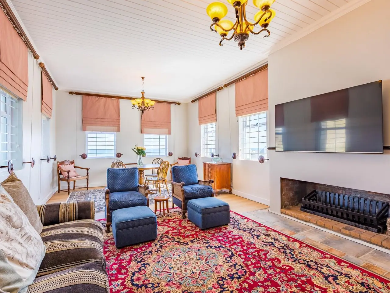 - Custom stone fireplace