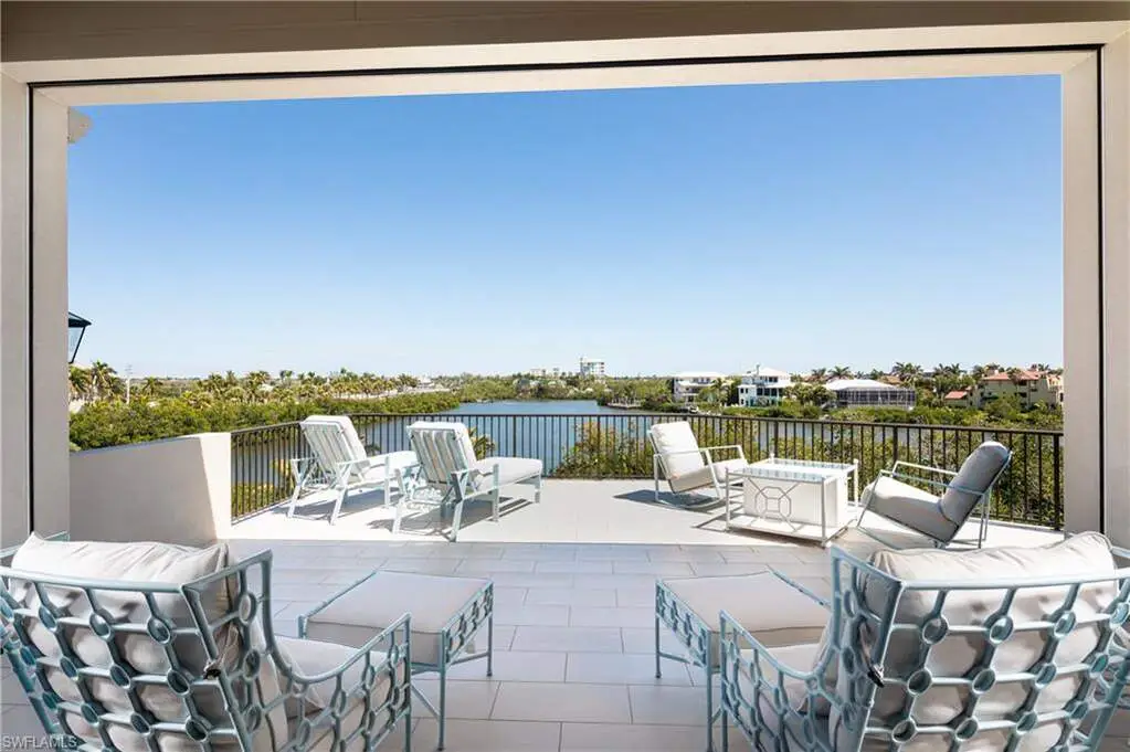 This 2019-Potter Homes built masterpiece is one of the most exceptional homes ever seen in Barefoot Beach. Positioned on one of the most coveted Bayside lots on a private peninsula in the exclusive, double-gated Southport on the Bay, this estate offers an unrivaled approximate 537* feet of wraparound water frontage, providing breathtaking Bay views on three sides and direct Gulf access. A more impressive panoramic waterfront view cannot be found. Crafted by the award-winning Potter Homes, this contemporary masterpiece is built like a fortress with all-concrete construction, hurricane impact windows and doors, and electric hurricane shutters. It is truly the ultimate retreat for beach lovers and boating enthusiasts, offering deeded beach access just a 10-minute walk away and direct Gulf access with no bridges from your 20,000 lb boat lift, along with a double jet ski platform lift. Every detail has been meticulously crafted, from the stunning oak flooring to the elegant coffered ceilings. The expansive floor plan spans 6,269 sq. ft. under air, featuring 6 bedrooms, a den, 6 full baths, 2 half baths, dual laundry rooms, a private elevator, a top-floor sundeck, a 3-car garage, and a versatile lower-level flex space. Step outside and experience one of the most extraordinary resort-style outdoor areas in the Barefoot Beach area. The outdoor space includes a large infinity-edge lap pool with a tanning shelf, water features, a swim-up bar, and a waterslide, all complemented by fire bowls and a fire pit-creating the ultimate space for entertaining. The outdoor patio features electric screens, a cozy fireplace, and a summer kitchen-perfect for al fresco dining and enjoying the serene surroundings. Inside, the chef's kitchen boasts crisp white cabinetry, quartz countertops, high-end appliances, and multiple dining areas. The primary suite offers an unmatched retreat, complete with an attached office/den, wet bar, fireplace, and a private sundeck overlooking the bay. The spa-like bathroom features dual vanities, a large shower with a rainfall showerhead, and a separate soaking tub. Ascend the spiral staircase to the top-floor observation deck, where you can savor stunning sunsets and panoramic water views. Conveniently located near fine dining, RSW Airport, Mercato, and Waterside Shops, and just 15 miles from the renowned Fifth Avenue in Naples, this home is a true gem in the heart of Southport on the Bay.