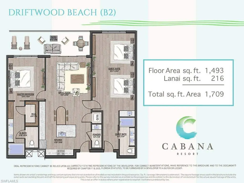 Welcome to Cabana Resort and Spa, a new Resort Destination just minutes from the Beach! Living at its finest with well appointed finishes, quality construction , amazing amenities including Shopping, multiple dining options at the Food Court, and a fantastic location with a beach shuttle running daily! The Driftwood plan offers 2 bedrooms and 2 and a half baths, an expansive lanai, gorgeous finishes including quartz countertops throughout and custom cabinetry. At Cabana Resort and Spa, spend your days floating down the lazy river, enjoy one of several resort pools, play a friendly game of Bocce, pamper yourself at the Cabana full service Spa, take Man's best friend to the on site dog park, dine at one of the many restaurant options in the expansive food court, or stroll through the Shops at Cabana. Cabana resort and Spa brings a whole new vibe to the Bonita Beach area, with a limited number of residences remaining in Building 1, call or come by today!