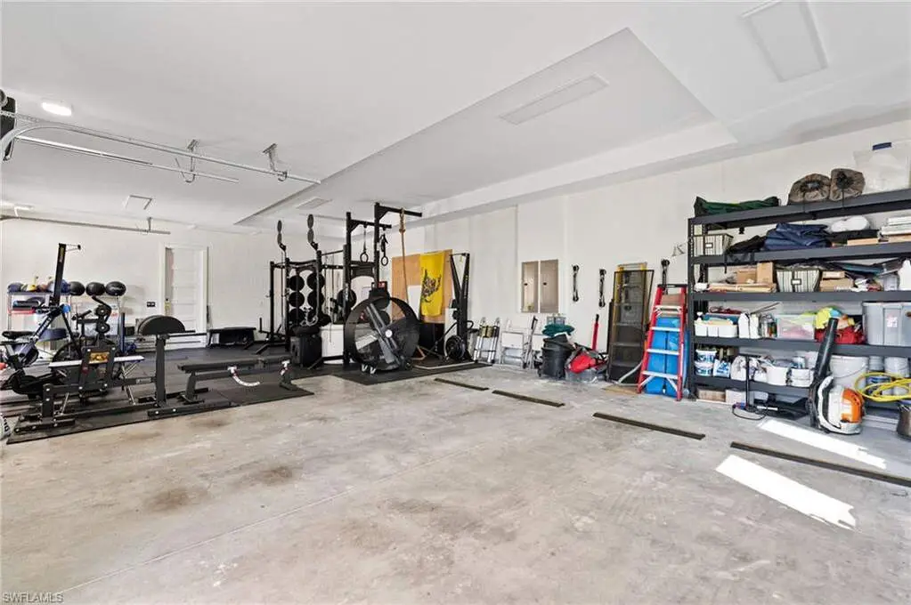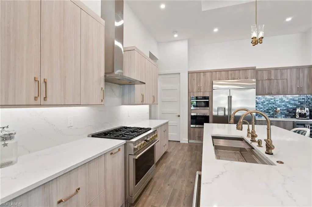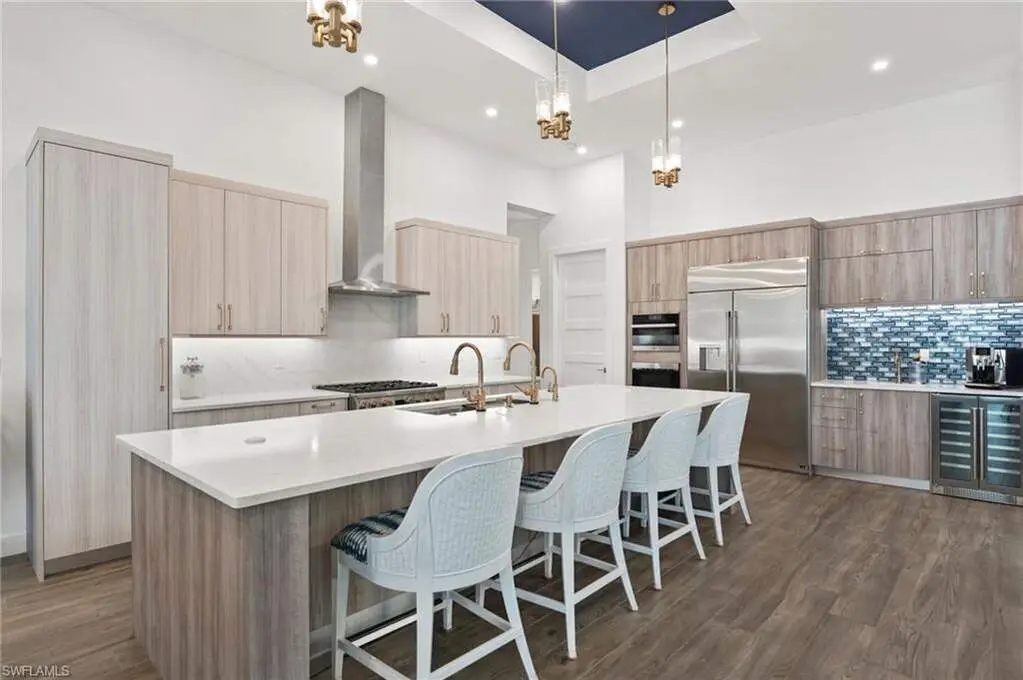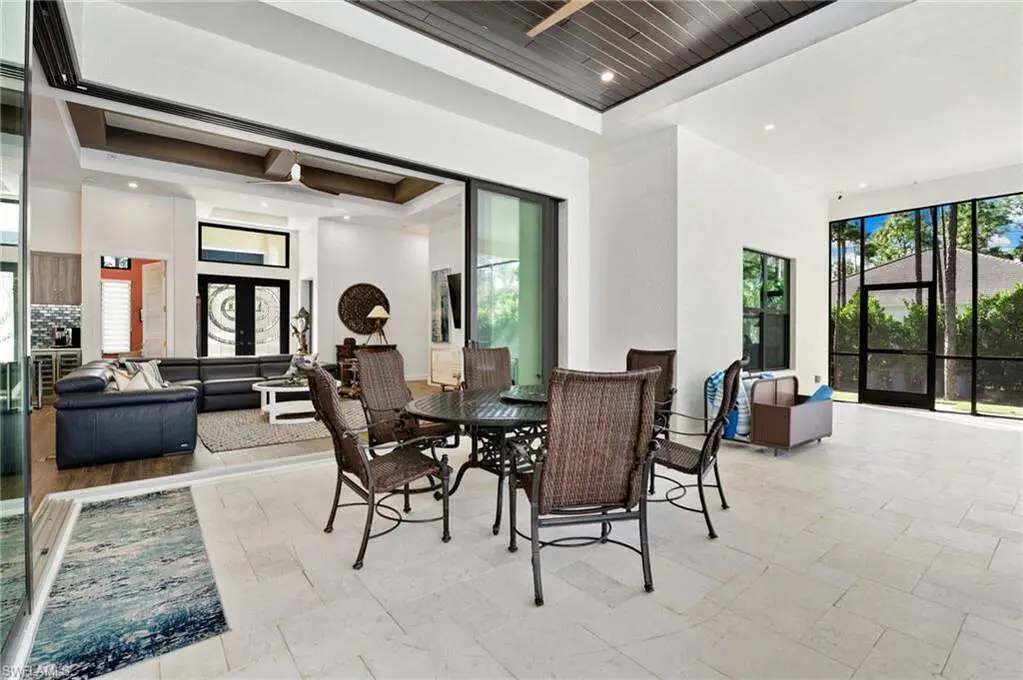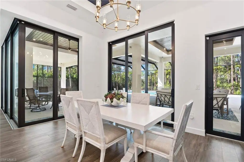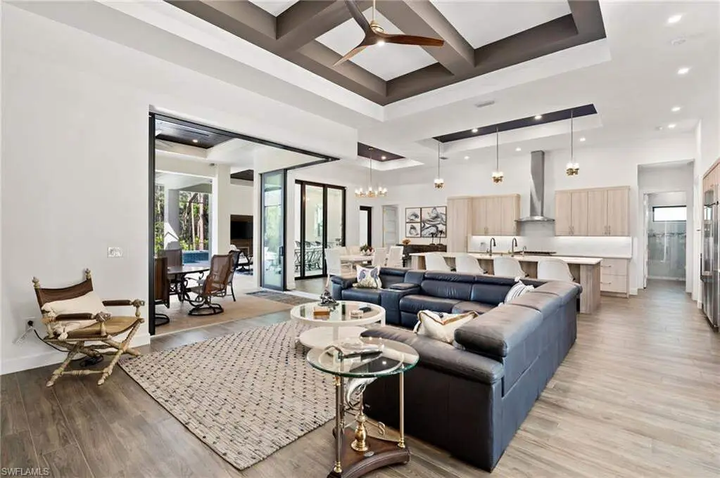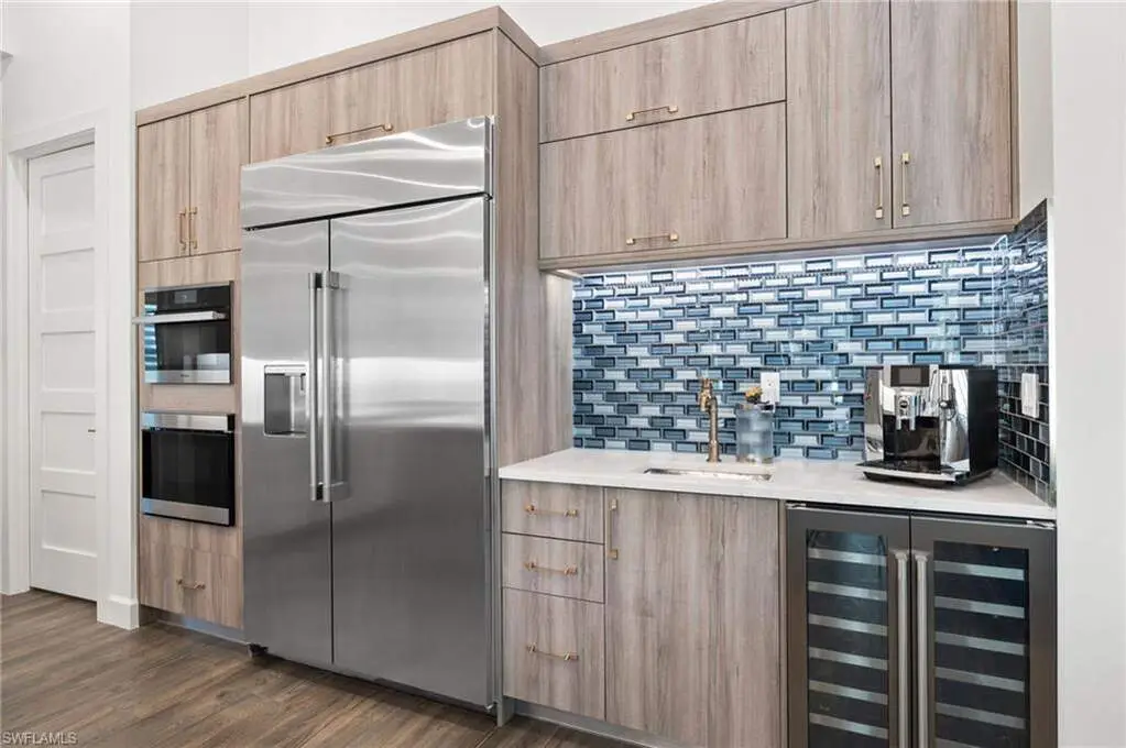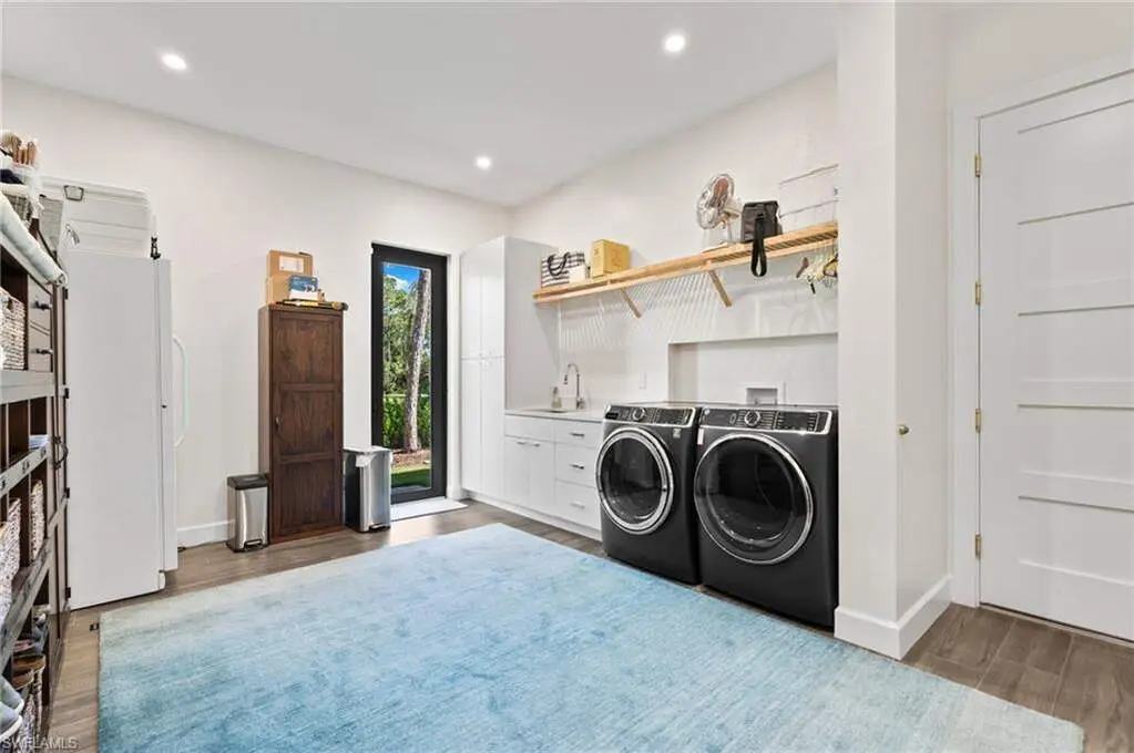 STUNNING 2023 CUSTOM-BUILT LUXURY ESTATE SITUATED ON A SPRAWLING 1.25-ACRE LOT IN BONITA SPRINGS' COVETED "SAN CARLOS ESTATES!" Enjoy serene, wooded views and prime WEST EXPOSURE for breathtaking sunsets and prime sun over the pool. This contemporary residence features an exceptional open floor plan with 2,745 sq ft under air, offering 3 bedrooms + den, an oversized laundry/mud room that could be converted into a 4th bedroom, an oversized under-air storage room (ideal as a closet for the 4th bedroom), a spacious 4-car garage with room for a home gym, hurricane impact windows & doors throughout, whole-house generator, a metal roof & 2 A/C zones for optimal comfort. Every detail was carefully designed, from the wide-plank wood-look tile floors and soaring ceilings with wood-beam accents to the custom shaker-style doors with champagne hardware and designer LED lighting. The chef's kitchen boasts a gas range, quartz countertops with a matching backsplash, an oversized eat-in island, driftwood-style cabinetry with champagne fixtures, Miele & Monogram appliances, a walk-in pantry, and an adjacent wet bar with wine fridge. The fully pocketing sliders create a seamless indoor-outdoor flow, opening to a private oasis with a resort-style 38 ft long salt water pool (complete with tanning shelf and bubbler), spa, outdoor kitchen with gas grill, griddle & wine fridge, covered seating with fireplace, and expansive pool deck-perfect for entertaining and al fresco dining. The luxurious primary suite offers a spa-like bathroom with a modern free-standing tub, oversized walk-in shower with multiple shower heads, dual vanities with custom cabinetry, and a generous walk-in closet with center storage island. Impeccably landscaped, this estate is finished with a pavered driveway and stately front exposure. Residents of San Carlos Estates enjoy unparalleled space, privacy & nature with the best dining/shopping amenities just down the street. No HOA fees or rental restrictions! Peaceful living in a central location with easy access to US-41, Imperial Pkwy & I-75. 2 mins to the Promenade shopping/dining, less than 5 mins to Coconut Point, 15 mins to world-class beaches & 20 mins to RSW International Airport.