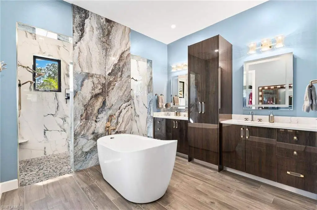 Spa-like bathroom with free-standing tub