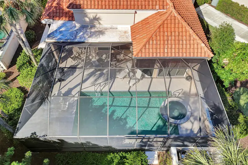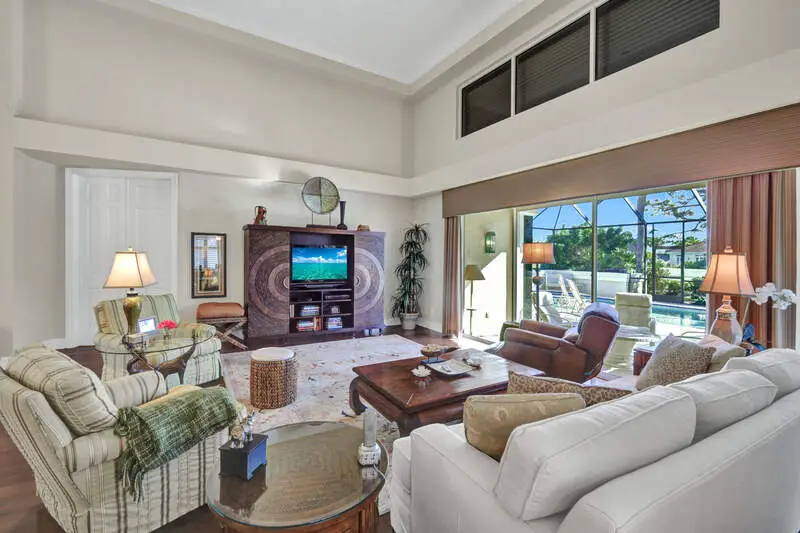 Welcome to this exquisite Golf Course Property of Bonita Bay of Bonita Springs. This 3 Bedrooms, 3 Bath Plus Den, overlooks the 11th hole on the Creekside Course harmoniously blending with the natural surrounding beauty of this community. This luxury home is situated on a quiet cul-de-sac, featuring soaring ceilings, and combines the great room, dining room and kitchen with spectacular views of pool and golf course. Beautiful Brazilian Hardwood Floors and granite counters as well as stainless appliances you will enjoy in this home. The sliding doors on the West side of the home open up with natural light to a beautiful pool, sauna and large lanai area and great for when you entertain. The separation of bedrooms provides wonderful privacy for you and your guests. The Primary Bedroom opens to the pool and has abundant closet space. The home boasts a new roof, ensuring peace of mind for years to come. Perfectly situated near shopping centers, renowned restaurants, grocery stores, and a hospital, this property presents the ultimate blend of luxury and convenience. Besides a new pool pump and pool heater in 2024, added too was remote-control hurricane shutters for your convenience. Whether it's enjoying the private membership perks, taking in the serene golf course view, or basking in the nearby pristine beaches, this home offers a truly unparalleled lifestyle. Call today for your private showing!
