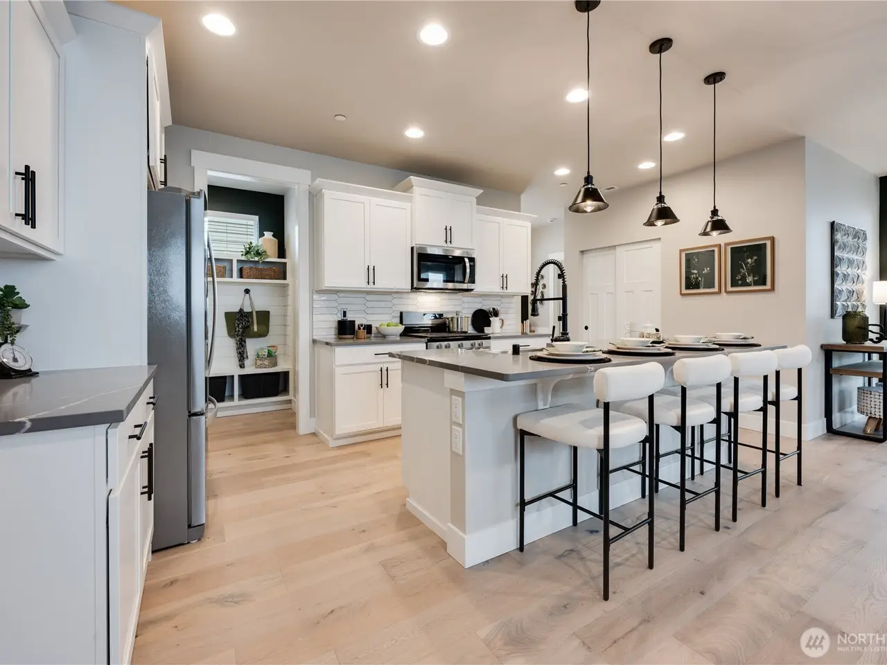 Coyote Ridge is Harbour Homes' newest community located in the North Creek area of Bothell offering 27 modern farmhouse-style homes. Served by the Edmonds School District and centrally located to Alderwood shopping & dining, Mill Creek Town Center, and easy access to both I-5 and I-405 make this location one you'll love. The 2473 Plan features 5 bedrooms, 2.75 bathrooms, bonus room, mud room & covered deck. This beautiful home is styled with quartz slab countertops & sophisticated deco tile backsplashes, durable wide plank flooring, white cabinetry, along with smart home technology like electric car charger pre-wire, heating & cooling heat pump, keyless door entry and more. Site Registration Policy. No minors in homes under construction.