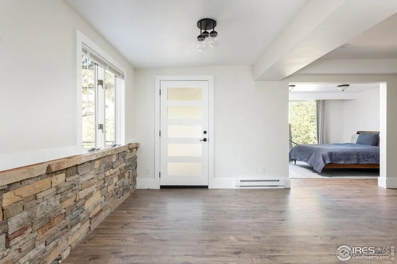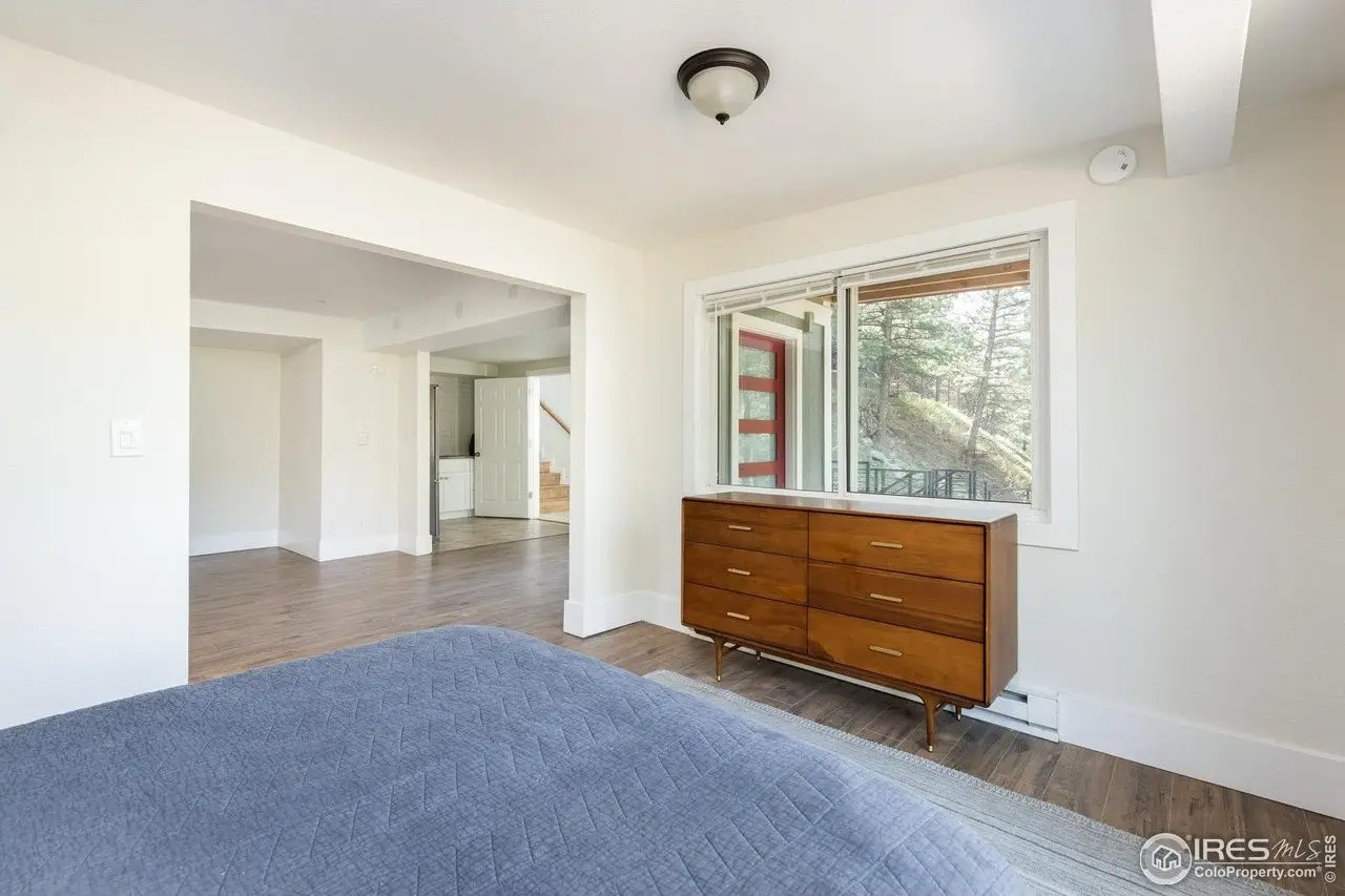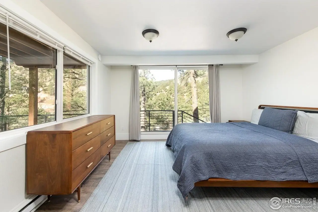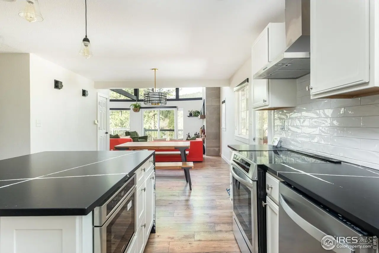 Located in the sought-after Pine Brook Hills community, this beautifully remodeled home offers the best of mountain living just 10 minutes from downtown Boulder and steps from scenic hiking trails. Soaring 20-foot ceilings brighten the living room, leading to an inviting main floor with a spacious living area, dining room, updated kitchen, bedroom, and full bath. Upstairs, the primary suite features a private patio alongside an additional bedroom and bath. The low-maintenance backyard includes crisp white rock landscaping and a flat side yard perfect for relaxing or entertaining. With thoughtful updates throughout the last two years-including solar panels, a new electrical panel, motorized blinds, a new furnace and water heater, induction stove, lower-level ADU entrance, added shelving, radon mitigation, enhanced HVAC ventilation, new ceiling fans, Ring doorbell, and updated front-yard lighting-this move-in-ready home pairs comfort and style in one of Boulder's most desirable neighborhoods.