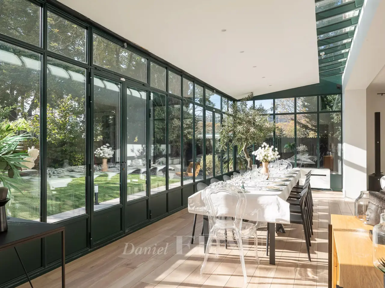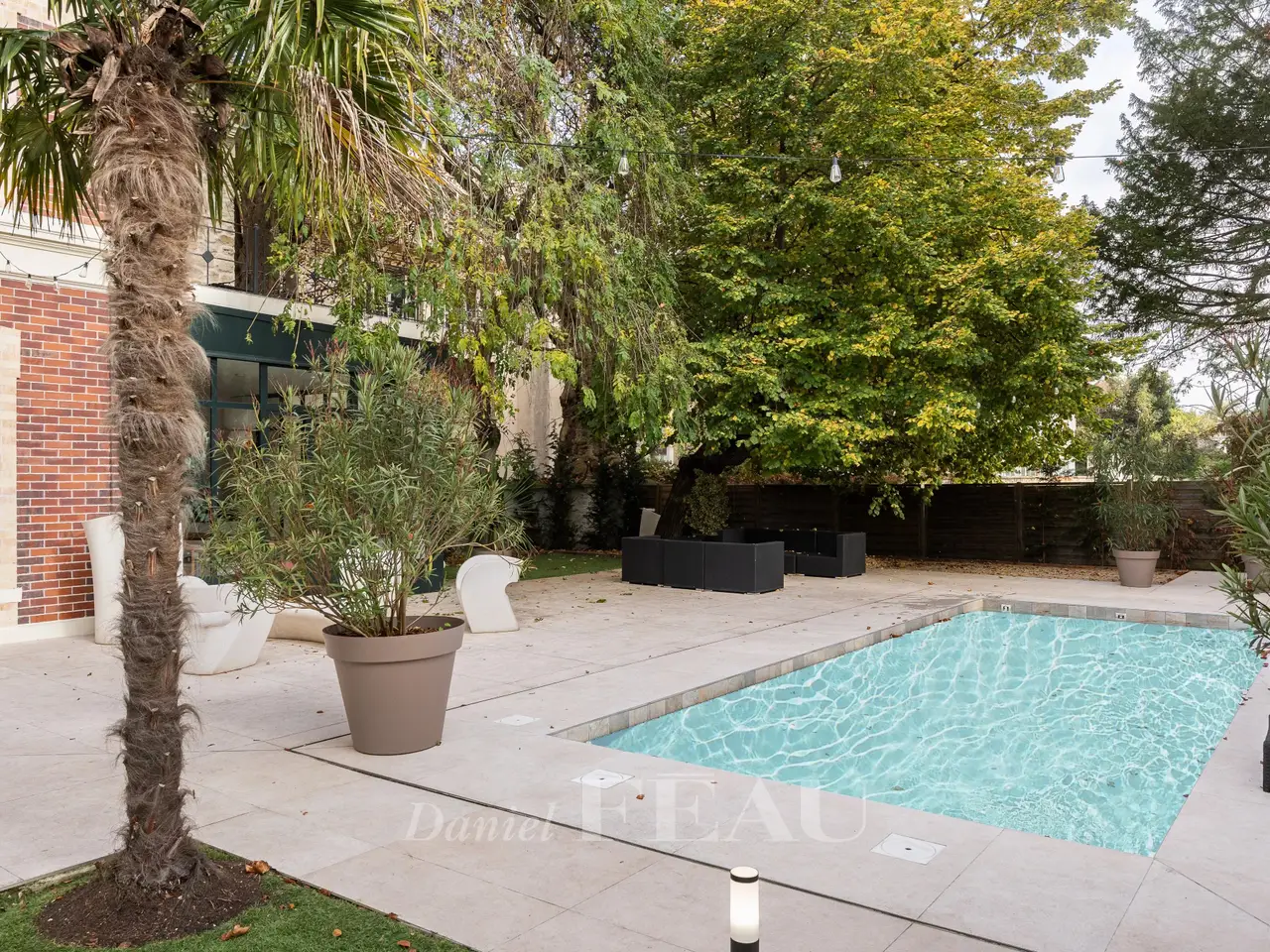 This character period property set in a near 850 sqm plot with a heated swimming pool is located near Albert Kahn Gardens. Offering 300 sqm of entirely renovated living space, it includes a spacious living/reception room with a conservatory, an equipped kitchen with dining facilities, a study, four bedrooms (one opening onto a terrace), and two bathrooms. The basement comprises a home cinema, a wine cellar, a compact studio apartment and storage rooms. With parking space for four cars.