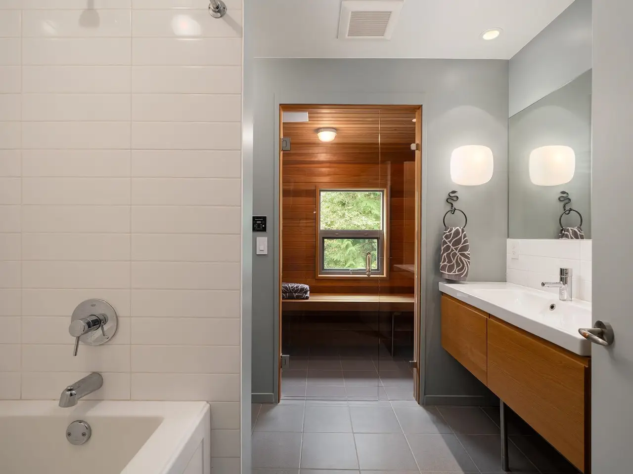 Tucked away among flourishing gardens this exquisite designer home will have you in a zen state of mind from the moment you arrive. Japanese influences are evident with the use of radiant heated stone & tile flooring, clean lines, and purposely placed windows to bring the outside in. The primary bedroom features a spa-like ensuite with limestone shower tiles & counters (with fossils!). The flexible floor plan includes rooms that can repurpose as bedrooms, art studios, or offices. Outdoor spaces include a south-facing deck plus a rear deck with access to the backyard garden where flowering trees & shrubs and a multitude of perennials fill the eye with endless beauty. Ready for a swim? King Edward Bay Beach is at the end of the street, only 60m (approx.) from the end of the driveway.
