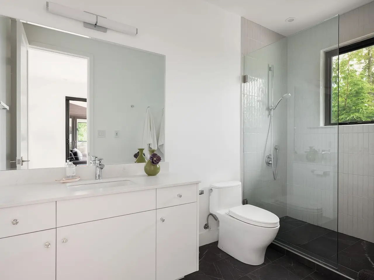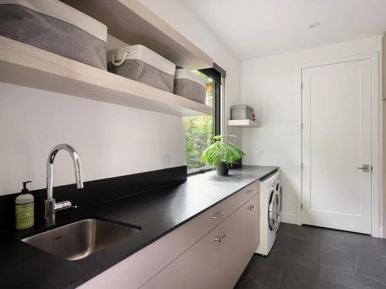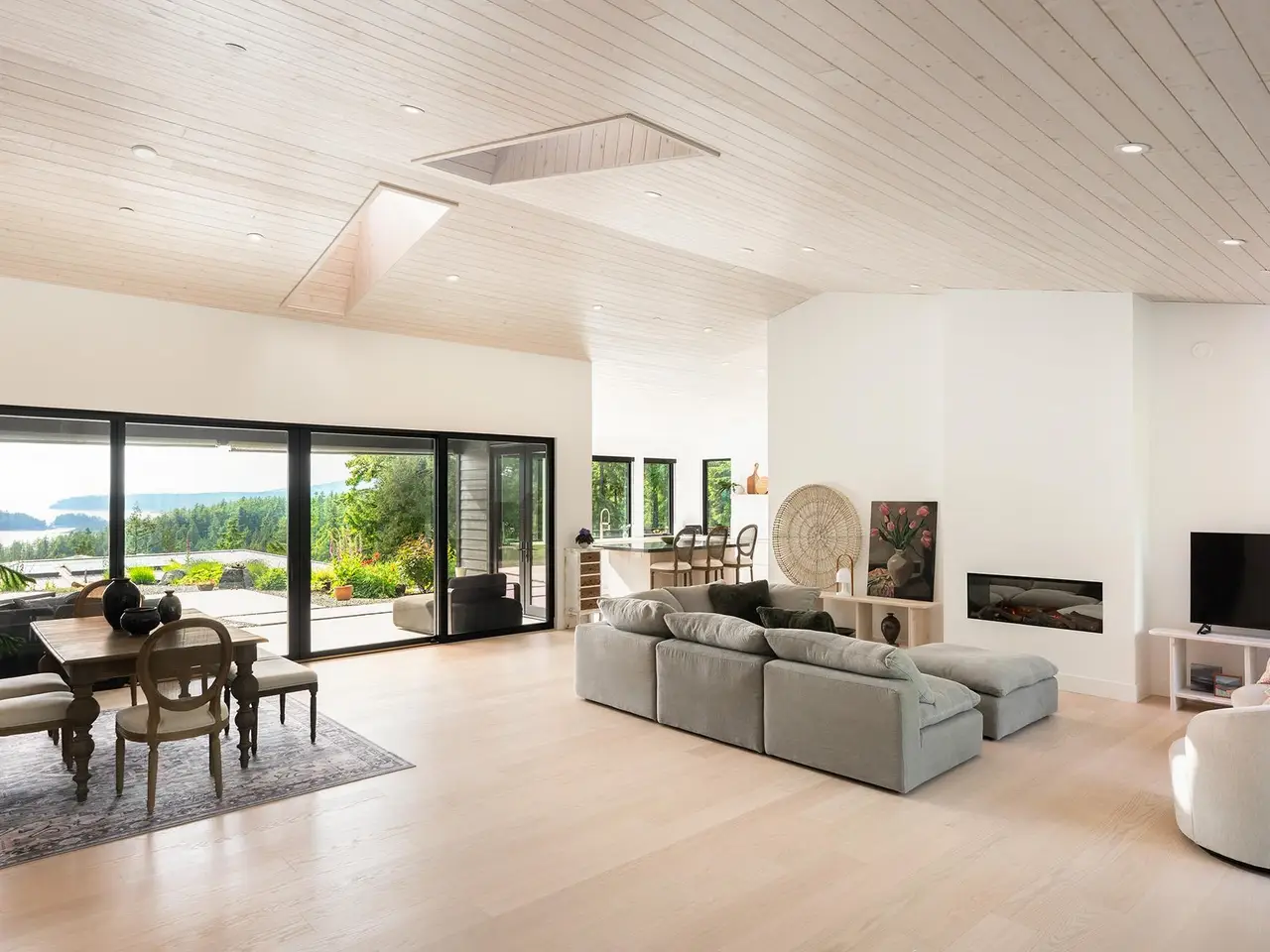 Luxury & sustainability blend elegantly here on the West side where ever-changing coastal views mesmerize. Designed to focus on healthy living with maximum natural light, there are skylights, high ceilings, and tall windows, most of which open. When it’s too hot or too cold the HRV (with HEPA filter) and radiant heated AND cooled flooring (controlled by a heat pump) keep your space just as you like it. During a power outage there is significant battery backup. Built with FireSmart principles, there is fibre cement board cladding, drought-tolerant landscaping, and a metal roof that collects rainwater into a state-of-the-art water treatment system. Surrounded by mature forest with hiking trails at your doorstep, plus those views, you will feel privileged to make your home here at Evergreen.