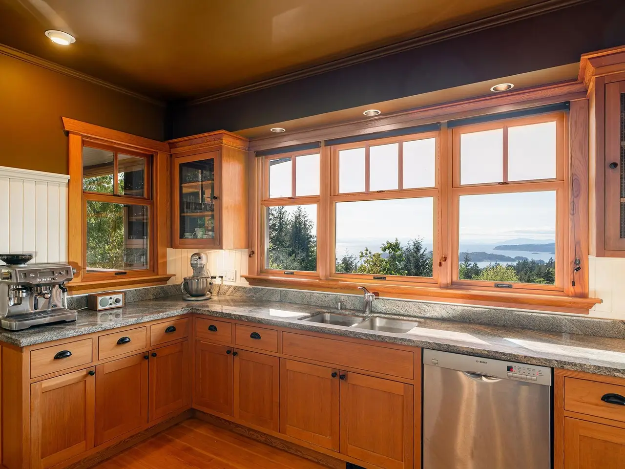 One of the most revered acreage properties on Bowen Island, priced well below assessed value. This private 5-acre elegant, rural estate features a stunning Craftsman home perched high with coastal ocean & island views from every room. The 4 luxurious bedrooms all have ensuites, and 2 bedrooms have their own entries - a perfect setup for a B&B. The kitchen is for those who entertain, with a 6-burner cooktop, double wall ovens, and a separate prep area. Craftsman homes are known for comfort, and this home is no exception with its wood-burning fireplace, warm wood paneling, coffered ceilings, and fir flooring. Outside is an established garden with apple, pear, Asian pear, quince, & cherry, plus many flowering trees & shrubs. It is an exceptional combination of nature, privacy, & luxury.