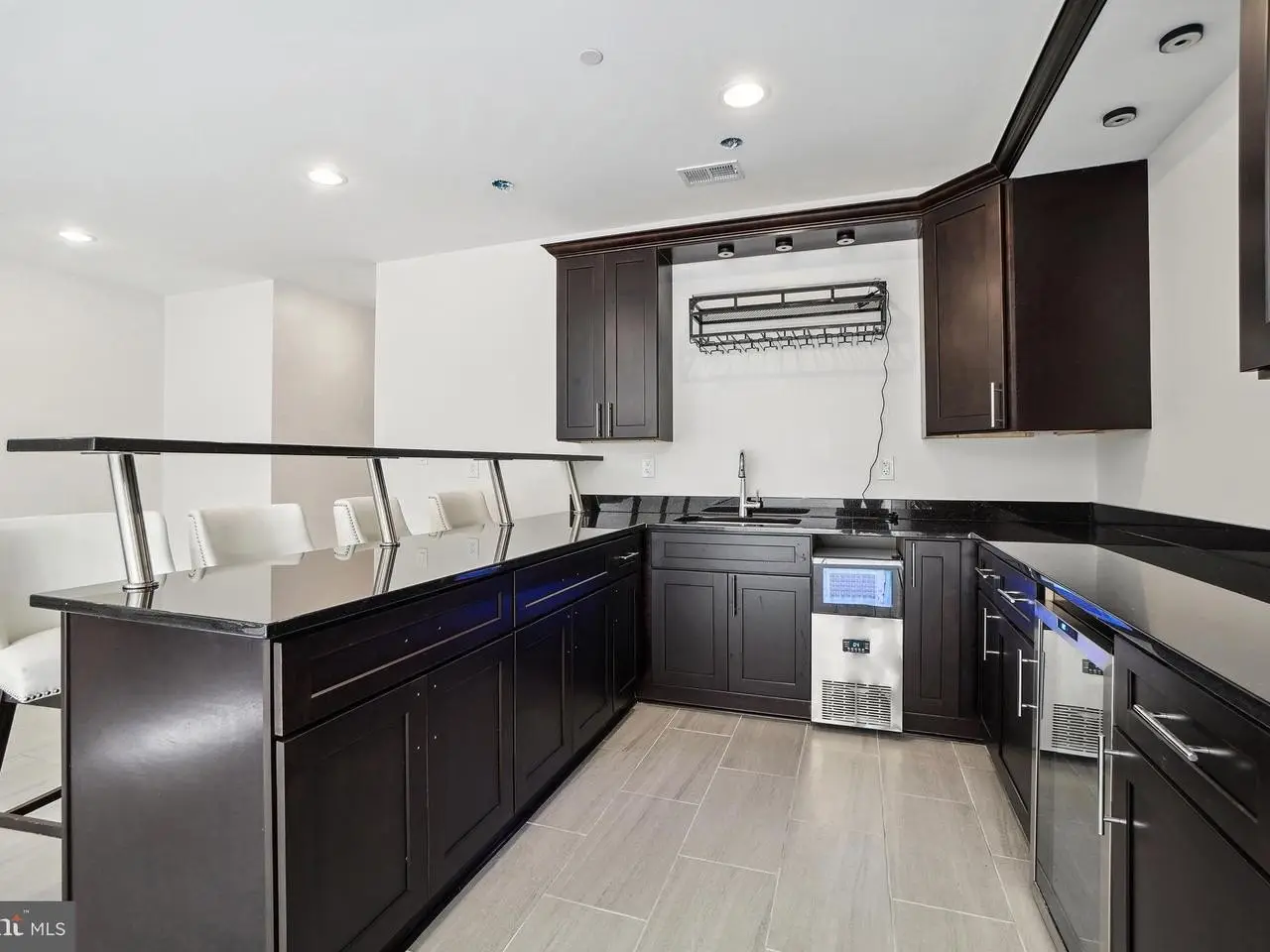 Contemporary wet bar with ice maker