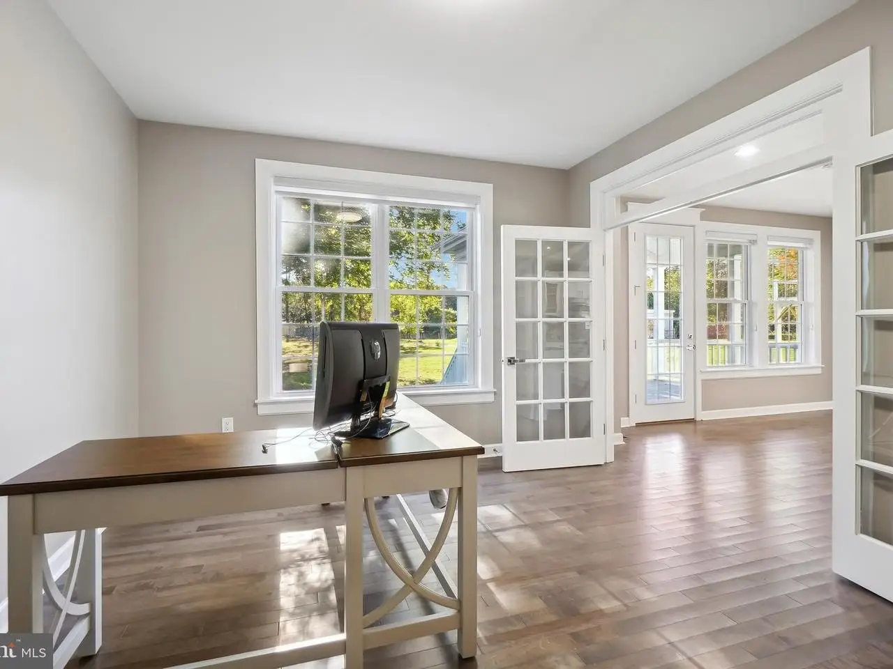 Welcome to 12605 Lanham Severn Road in Bowie, a spectacular new home construction completed in 2024. This stunning home showcases 5 bedrooms and 5 full bathrooms and three fully finished levels. At 3500sf plus a fully finished lower level, this showpiece has been beautifully built with impressive mill work, quality finishes and a versatile open concept floor plan. The lot size being just under an acre, is a perfect blend of interior living and outdoor space for the most discerning buyers. The generous and calming open floor plan is bathed in natural light through multiple large windows. The gourmet kitchen with all stainless-steel appliances, double oven, extensive granite countertop stations, custom Shaker cabinets, a huge granite countertop center island, walk-in pantry and abundant storage could make any person who likes to cook feel like a chef. The kitchen opens to a great and welcoming family room with large windows and modern glass front electric fireplace. Completing the main level is a private executive office, full bathroom and mud room with access to the 2-car garage which includes an Electric Vehicle (EV) Charger. Four bedrooms are located on the upper level to include a gorgeous owner's ensuite featuring two custom walk-in closets, a spa-like luxury ensuite bathroom with double sink vanity, free standing soaking tub, large shower and a custom linen closet. A second ensuite bedroom features an ensuite bathroom and walk-in closet, two bedrooms include a walk-in closet in each and a Jack and Jill bathroom. To complete the upper level a laundry room featuring a stand-alone washer, dryer and sink with storage. The entire lower level is suited to your lifestyle needs with a large multi-functional and multi-room space. Envision, of your choosing in the large open main room: big screen TV lounge or pool parlor or a game retreat along with the contemporary wet bar with ice maker and cooler, a workout/yoga room, a large bedroom with double door custom closet, a full bathroom with tub/shower combination, a storage and utility room. The staircase exists to the backyard which can be designed as an extension of the interior space for creating great outdoor family fun and entrainment areas. This is not just a spectacular newly constructed house; it is a lifestyle to enjoy. See yourself living a new way of life. Schedule a tour today.