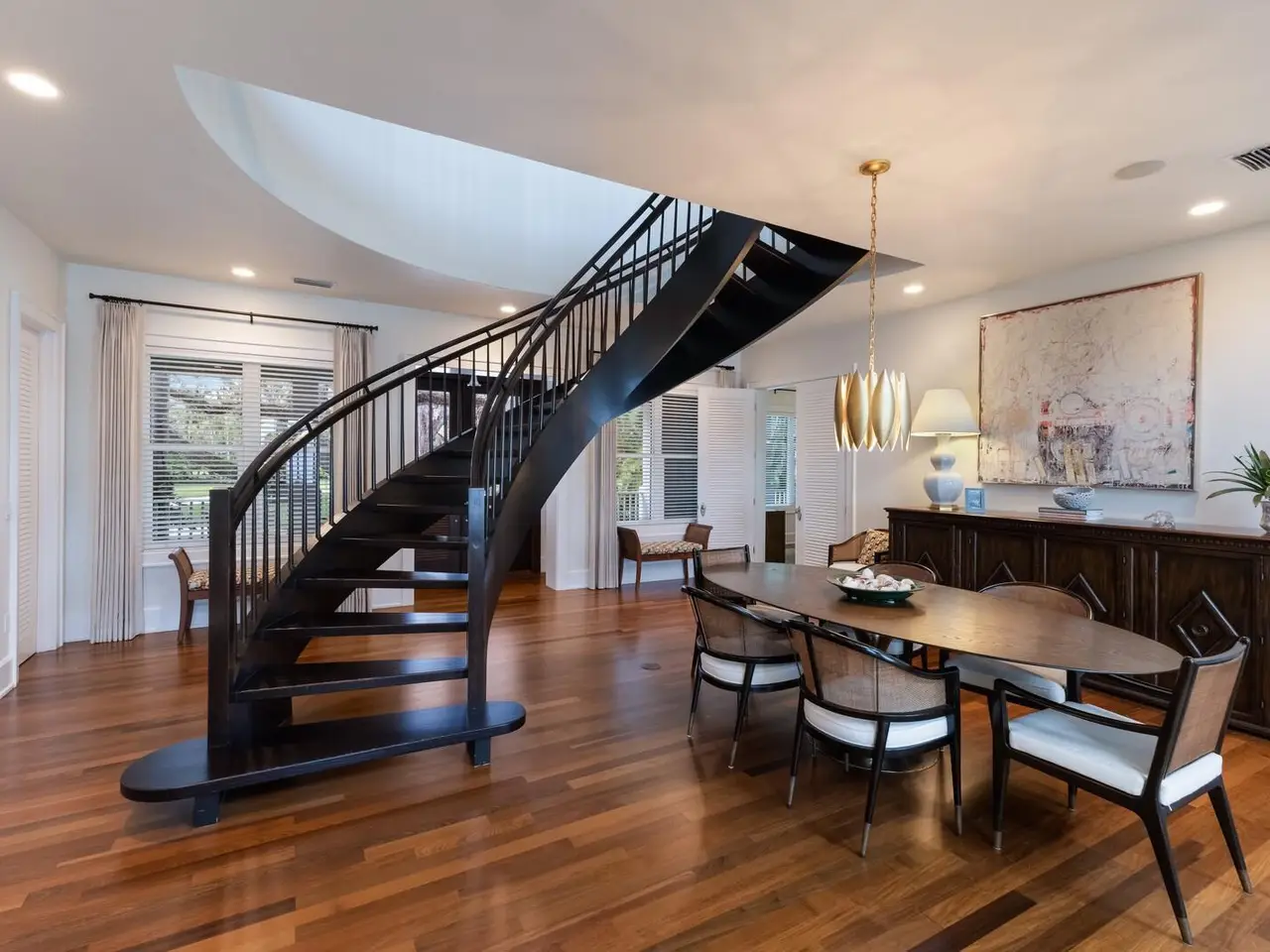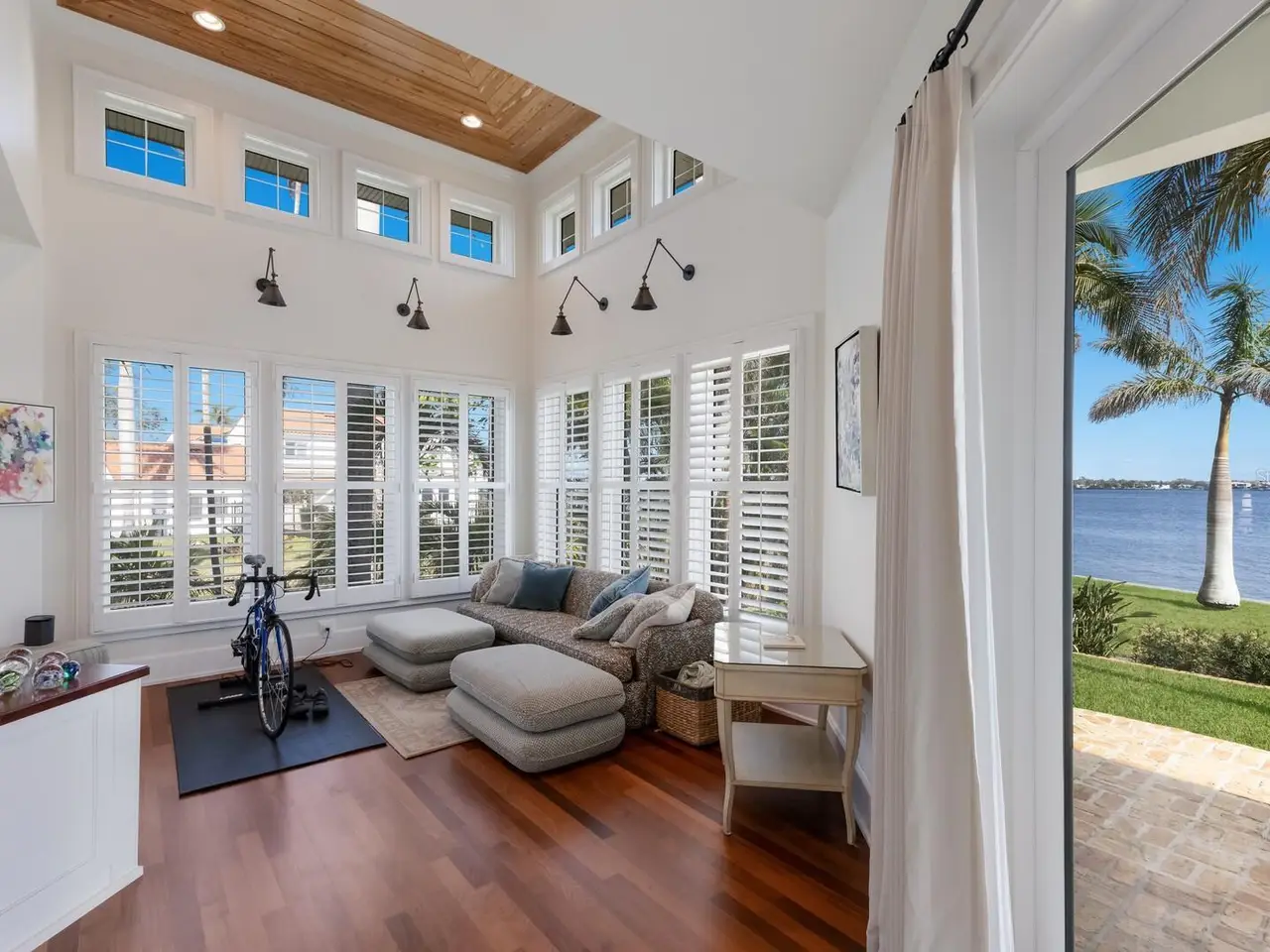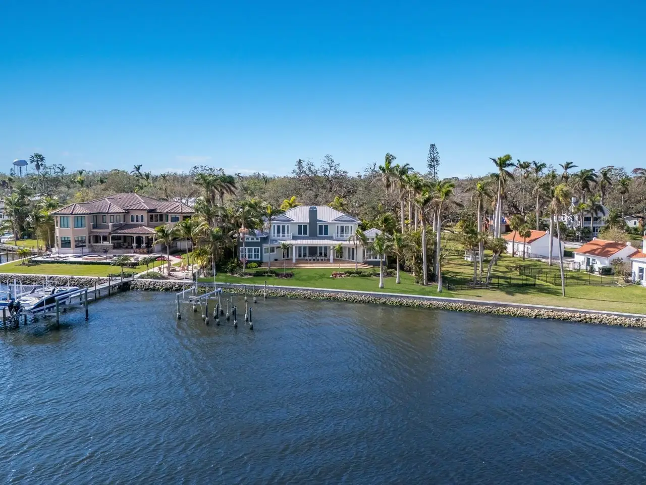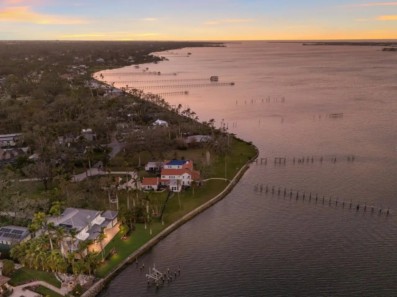 This exquisite four bedroom, 4-1/2-bath custom-built residence, designed by Mark Sultana, offers an unmatched combination of luxury and comfort. Situated along the Manatee River, this property once served as the original landing for the Fogartyville/Palmetto Ferry and provides breathtaking water views from nearly every window. The grand entrance features a stunning custom circular staircase that sets the tone for the entire home, showcasing impeccable craftsmanship and attention to detail. The expansive living areas are highlighted by a full-height travertine fireplace, creating a striking focal point and an inviting atmosphere. Throughout the home, pecky cypress ceilings add unique character and warmth, while Brazilian cherry hardwood floors provide timeless elegance. Custom lighting enhances the elegant ambiance, further elevating the home's refined interior. The thoughtfully designed layout boasts spacious bedrooms, luxurious bathrooms, and high-end finishes, ensuring both beauty and functionality in every corner. The spacious primary suite is a serene retreat with French doors leading to a private balcony with stunning river views, an oversized walk-in closet with custom built-ins to maximize storage and organization and a luxurious ensuite bathroom clad in polished travertine tiles and thoughtful high-end finishes. Guests will enjoy their own private space in the garage apartment complete with a fully appointed kitchenette, bathroom and of course, a beautiful view! All windows and doors were replaced in 2023 with PGT hurricane-impact rated panels, ensuring protection during stormy weather without sacrificing style or natural light. The property also boasts two convenient laundry rooms and solar panels for enhanced energy efficiency while lowering monthly utility bills. Best of all, the home was untouched by the recent storms that passed through the area. Outside, mature landscaping surrounds the property, providing privacy and tranquility. A circular driveway welcomes guests and the front and rear porches are adorned with the timeless charm of Chicago bricks – all adding to the home's stately presence. Whether enjoying the serene river views (you have direct access to the Gulf with no bridges) or entertaining in style, this stunning residence is a true sanctuary for those seeking an extraordinary lifestyle. Enjoy a day at the world-renowned, sugar-sand beaches of Anna Maria Island and all the local island amenities, or take in the many restaurants, shops, museums and culture of nearby Downtown Bradenton - if that isn't enough Sarasota and Tampa/St Pete are a quick trip away!