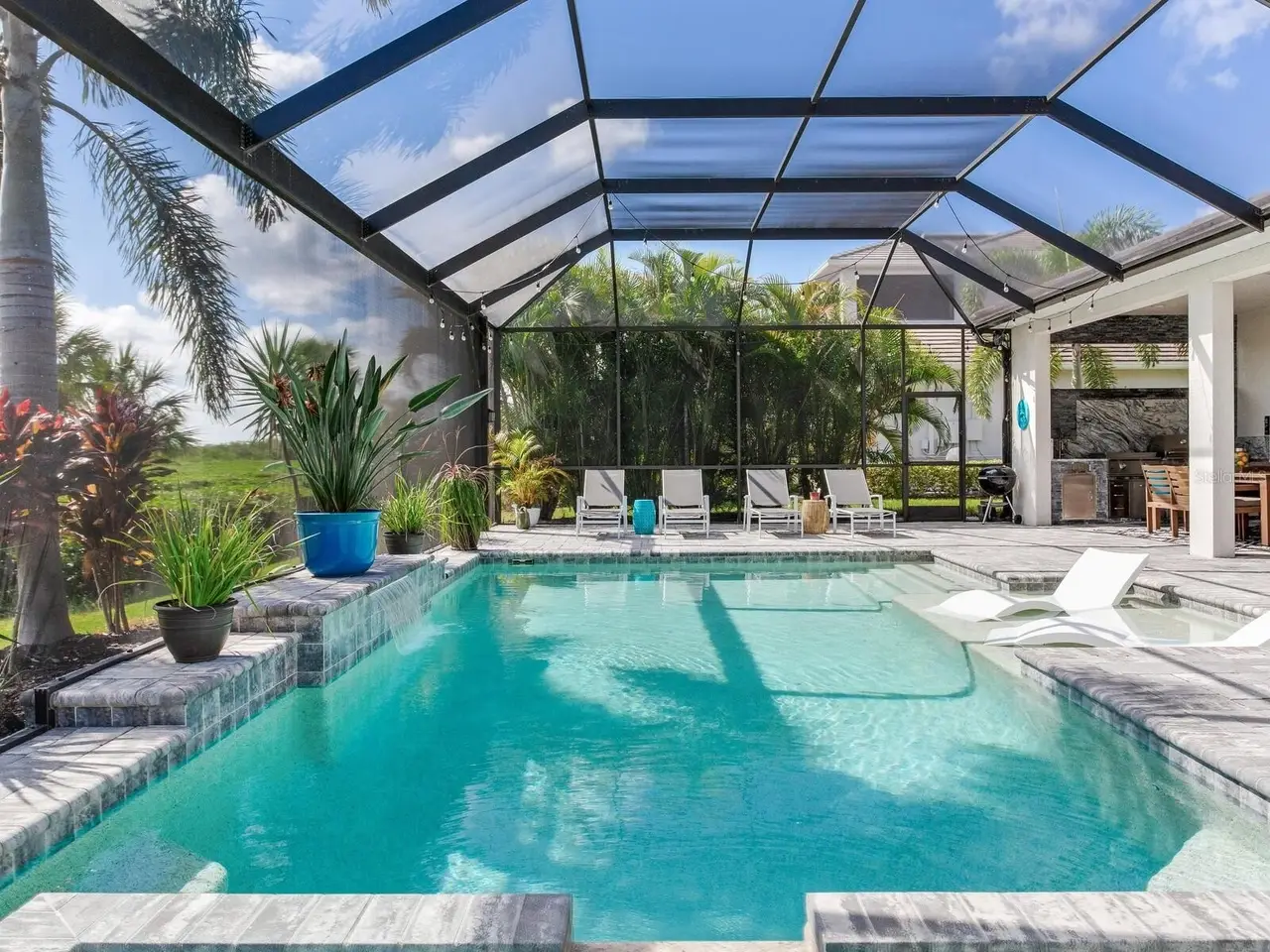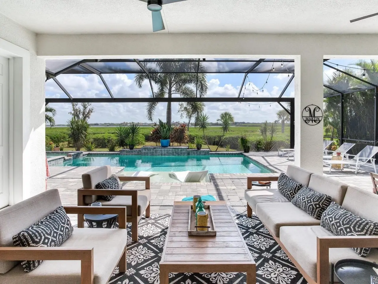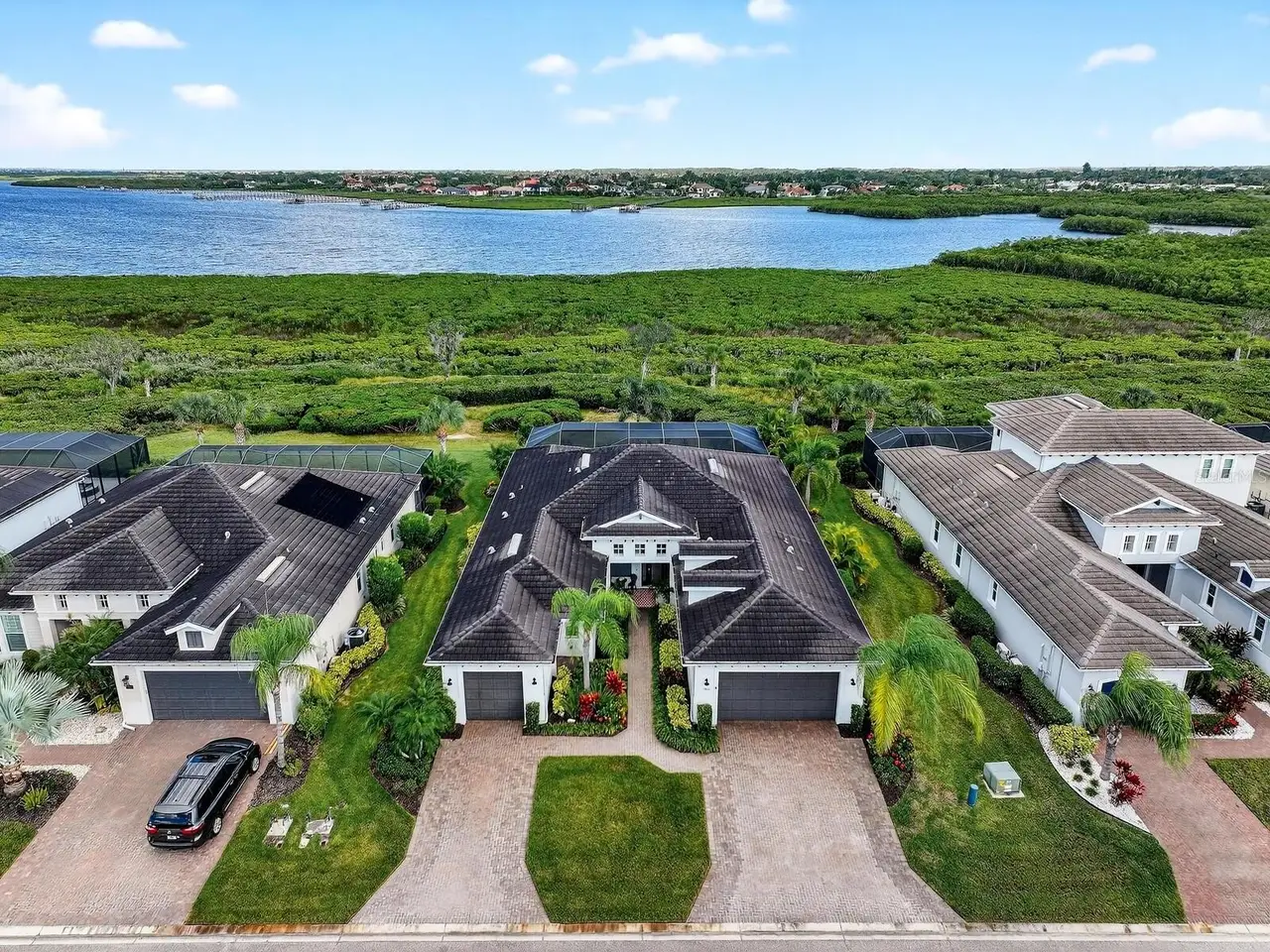 Under contract-accepting backup offers. Wake up to BREATHTAKING SUNRISES over the MANATEE RIVER in this stunning waterfront residence, where luxury and lifestyle come together in perfect harmony. Every detail of this home has been thoughtfully designed to capture the beauty of riverfront living while offering exceptional comfort, elegance, and modern convenience. This 3-bedroom, 3.5-bath home features EN-SUITE BATHROOMS for every BEDROOM, plus a dedicated OFFICE/DEN, ideal for working from home or creating a private retreat. The open-concept layout is highlighted by marble flooring throughout the main living areas and a double-thick marble kitchen island, creating a sophisticated focal point in the heart of the home. Expansive retractable glass sliders open to a covered lanai, seamlessly blending indoor and outdoor living. Enjoy a saltwater heated pool and spa, outdoor grill, and plenty of space to entertain or simply unwind while taking in peaceful water views. Additional features include a 3-car garage, widened driveway, whole-home water filtration system, and upgraded electrical system ready for generator hookup. Nestled in the highly sought-after gated community of TIDEWATER PRESERVE, residents enjoy resort-style amenities including a PRIVATE MARINA with boat slips for rent, tennis courts, a kayak and canoe launch, scenic shell trail, dog park, and a clubhouse with fitness center. Three community pools add to the coastal resort ambiance. Meticulously maintained and designed for the ultimate in waterfront living, this home offers the rare opportunity to experience luxury, tranquility, and community—all in one extraordinary property. Schedule your private tour today and discover the Tidewater Preserve lifestyle!