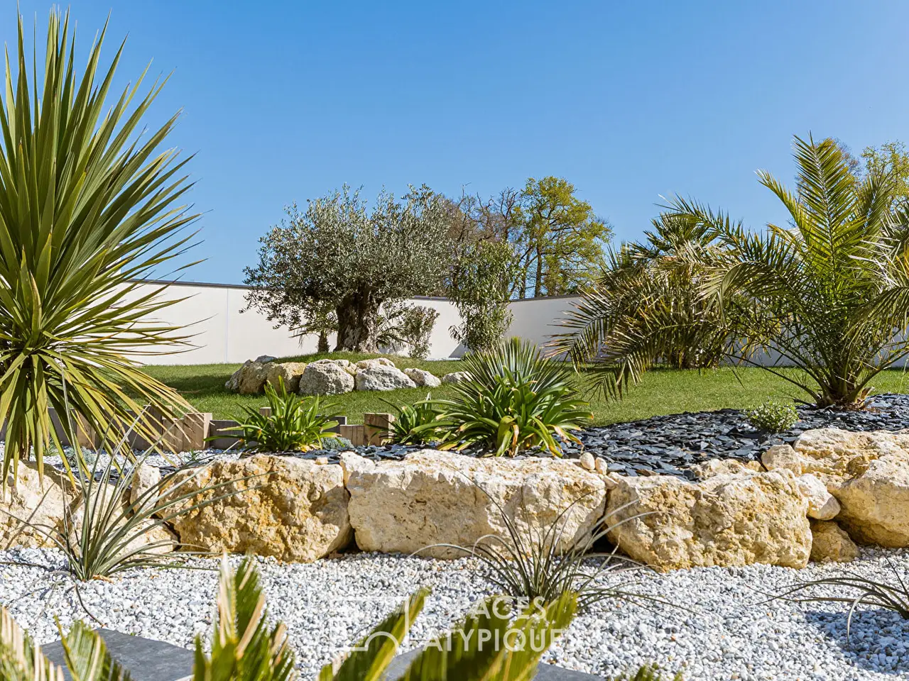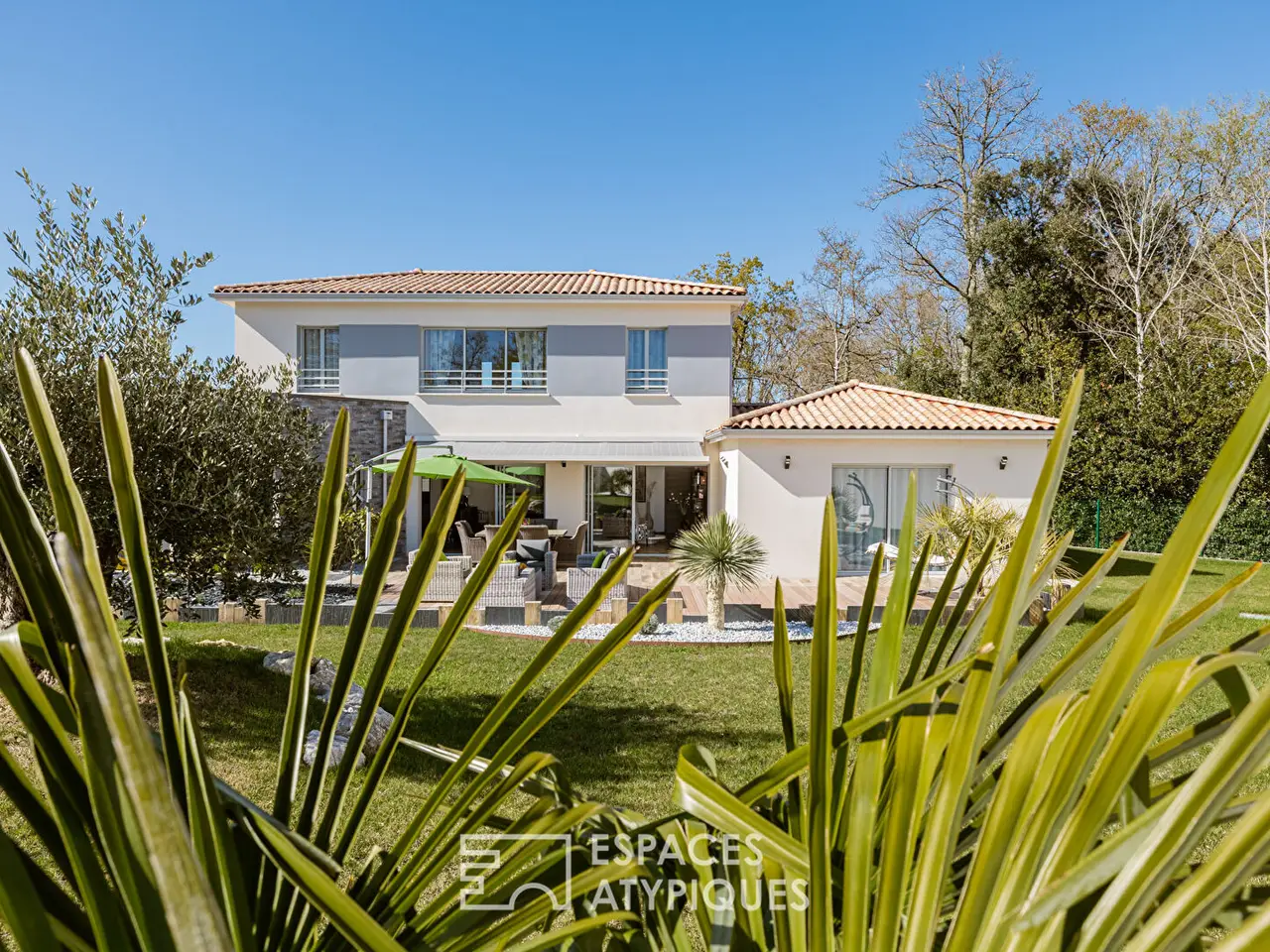 EXCLUSIVE ATYPICAL SPACESLocated in a privileged environment in Les Mathes-La Palmyre, this contemporary villa of approximately 192m2, completed at the end of 2023, is spread over a plot of more than 1000m2 within a luxury private residence comprising only seven properties. It benefits from a seaside resort open to the Atlantic, renowned for its fine sandy beaches lined with maritime pines and the 8000 hectares of the La Coubre forest, a permanent invitation to relax, swim, and escape into nature.Upon entering, a reception dressing room and guest toilet set the tone. The custom-made kitchen, designed by MOBALPA, seduces with its central island, the true heart of the home where lively conversations and culinary moments mingle. A utility room-pantry and a separate laundry room with direct access to the garage complete this functional space. The living room, with an area of approximately 64 m2, facing south-east, bathed in light thanks to its large bay windows, offers a pleasant atmosphere.Its dining area extends the indoor-outdoor atmosphere from the first rays of the sun. The master suite, facing the terrace, offers a real cocoon with its large dressing room and spacious private bathroom, complete with integrated toilet. Finally, an office, easily transformed into a bedroom, opens onto a terrace, revealing interesting development prospects. The staircase rises lightly to reveal, upstairs, a living space with a view overlooking the garden and its terrace below, converted into a lounge-library area. This sleeping area includes two comfortable bedrooms, one of which is a suite.The first has a closet-dressing room, while the second offers a real relaxation area with a living room equipped with a convertible sofa, completed by a bedroom with a dressing room.An elegantly designed shared bathroom serves these two bedrooms and is accompanied by a separate toilet for added comfort. Ideally located in the heart of a carefully landscaped setting, where plants, borders and creations skillfully blend wood and slate, it extends towards an elegant terrace ready to accommodate a jacuzzi, a spa (arrivals pending) or even a swimming pool, the plot being buildable. In fine weather, a summer lounge and a dining area are installed under the awning, offering a friendly and refined setting. Equipped with the latest technologies and a home automation system including heated floors, it offers absolute comfort.An elegant and soothing place, sheltered from the hustle and bustle, located just 1 km from La Palmyre beach and 1.5 km from the market and shops.Whether as a primary or secondary residence, this villa reveals a privileged living environment, where serenity and the sweetness of life take on their full meaning.ENERGY CLASS: A / CLIMATE CLASS: A. Estimated average amount of annual energy expenditure for standard use, established from 2021 energy prices: between EUR520 and EUR750.REF. EALR2169Additional information* 6 rooms* 4 bedrooms* 1 bathroom* 1 bathroom* 1 floor in the building* Outdoor space : 1000 SQM* Parking : 1 parking space* Property tax : 1 318 €Energy Performance CertificatePrimary energy consumptiona : 42 kWh/m2.yearHigh performance housing*42kWh/m2.year1*kg CO2/m2.yearA*B*C*D*E*F*GExtremely poor housing performance* Of which greenhouse gas emissionsa : 1 kg CO2/m2.yearLow CO2 emissions*1kg CO2/m2.yearA*B*C*D*E*F*GVery high CO2 emissionsEstimated average amount of annual energy expenditure for standard use, established from energy prices for