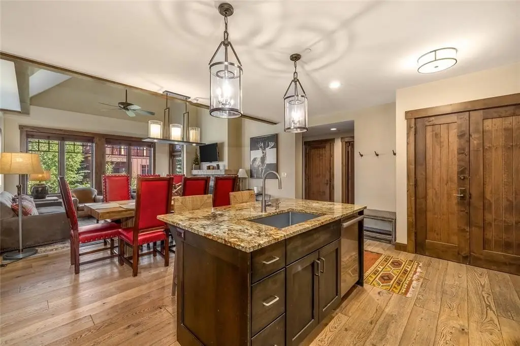 Experience the best of Breckenridge with this rare three bedroom mountain retreat in the sought-after Water House on Main. Perfectly situated in the heart of downtown, you're just steps from premier dining, shopping, and the Quicksilver Chairlift on Peak 9. Take advantage of this ideal location within the coveted resort zone, ideal for short-term rental income or unparalleled access for your alpine getaway. Vaulted ceilings and large windows frame peaceful views over the wetlands and toward Illinois Gulch. Mountain-modern furnishings and high-end finishes make this ski resort residence truly turnkey. Enjoy premium amenities including a pool, hot tubs, sauna, fitness center, ski locker and valet, and private owner’s bike storage room. An ideal blend of luxury, convenience, and rental potential in one of Breckenridge’s most desirable locations.