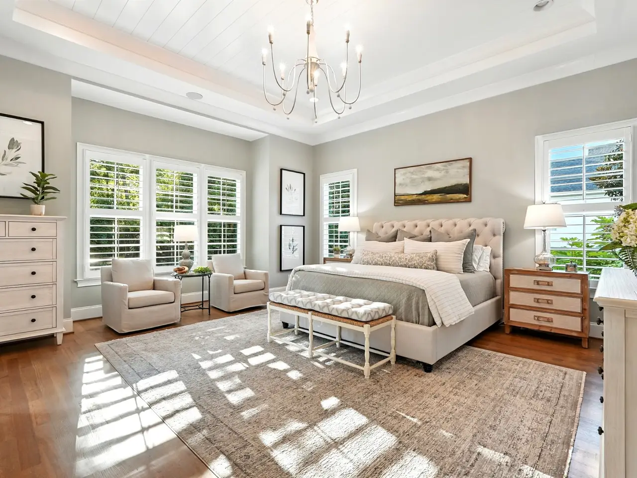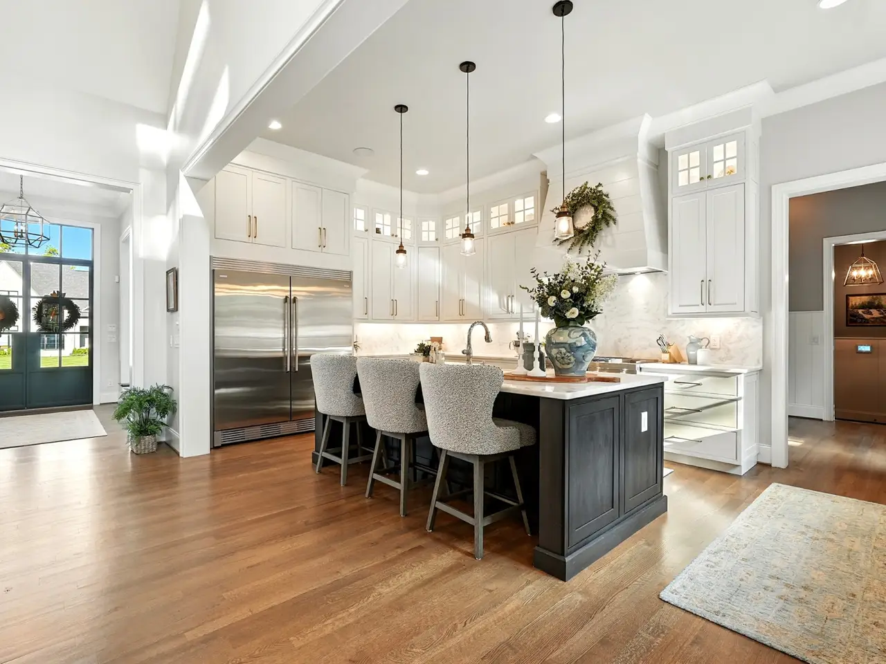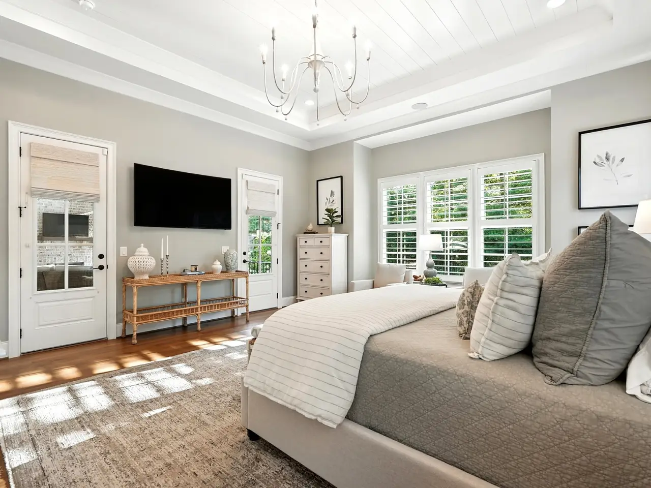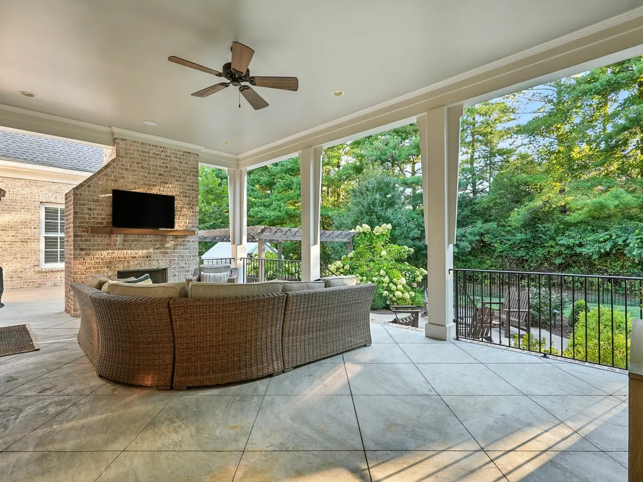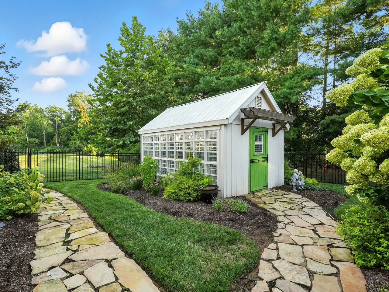 Built by Heritage Homes, this all-brick home sits on one acre with a circular driveway and oversized four-car garage. The main level features hardwood floors, 20-foot ceilings, a formal dining room, chef's kitchen with inset cabinetry, prep kitchen with a pantry and marble countertops. The living area includes a marble fireplace. The primary suite is located on the main level with a private wet bar, his-and-hers closets, and a bath with marble floors, vanities, and shower. Also on the main level is a full bedroom and bath (currently used as an office) and a hobby room converted into a spare bedroom. Upstairs offers three additional bedrooms with carpet, two full baths, and a half bath off the bonus room. A media room with theater components and a recreation room with a wet bar complete the upper level. Exterior features include a covered terrace, outdoor kitchen with gas grill, outdoor fireplace, fenced backyard with room for a pool, and a greenhouse. Updates include fresh interior paint, repainted exterior trim, and refreshed landscaping.