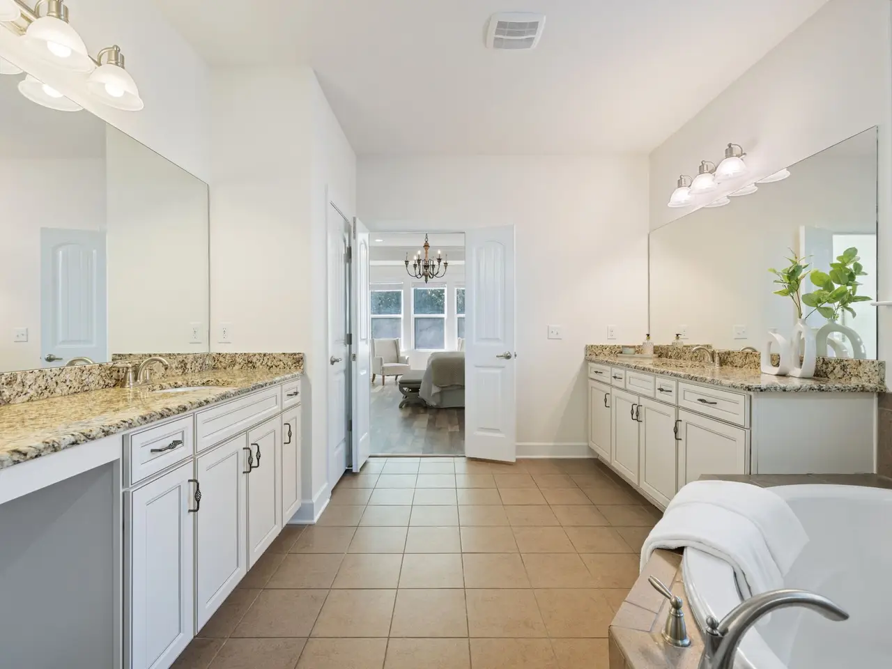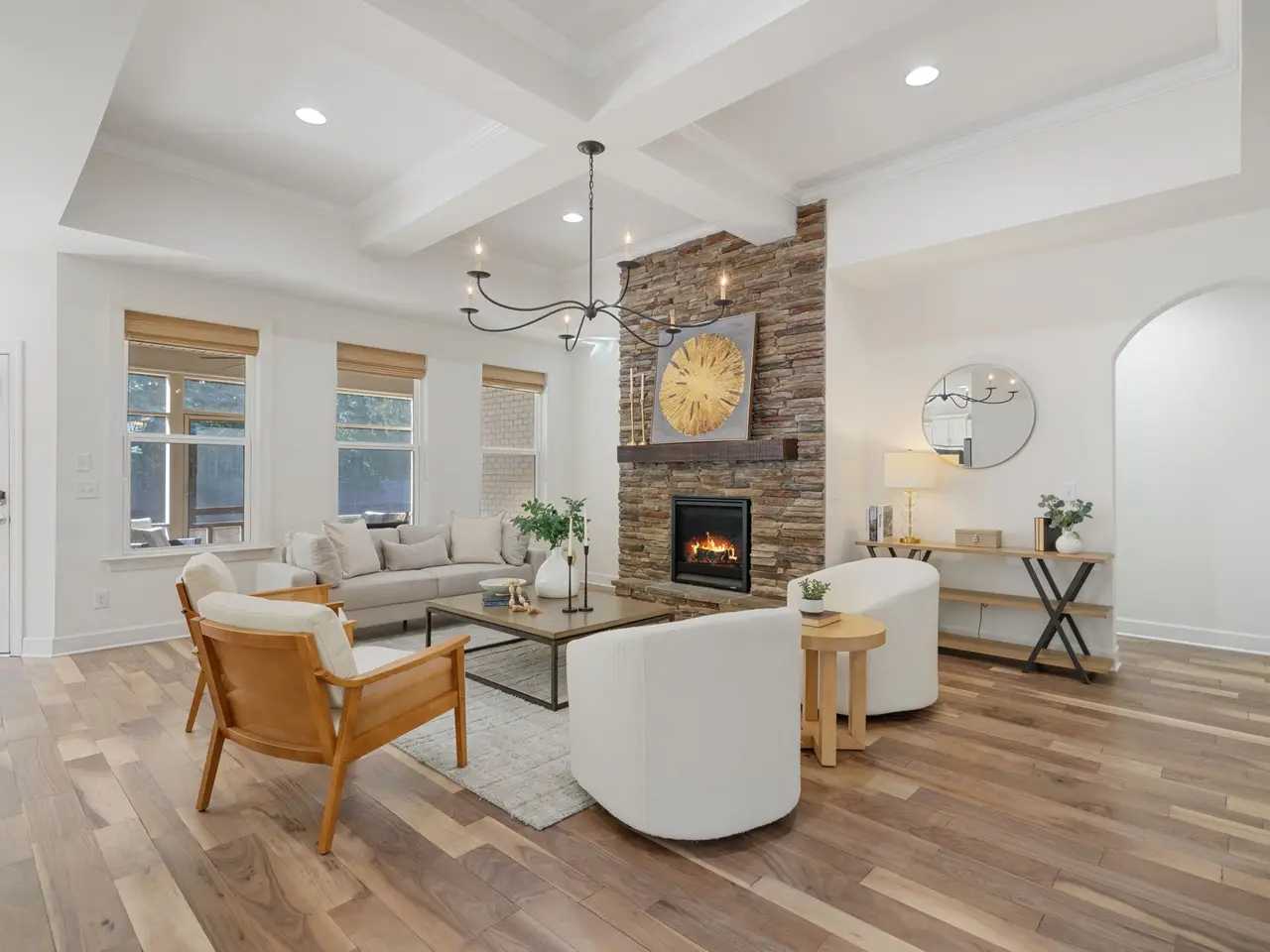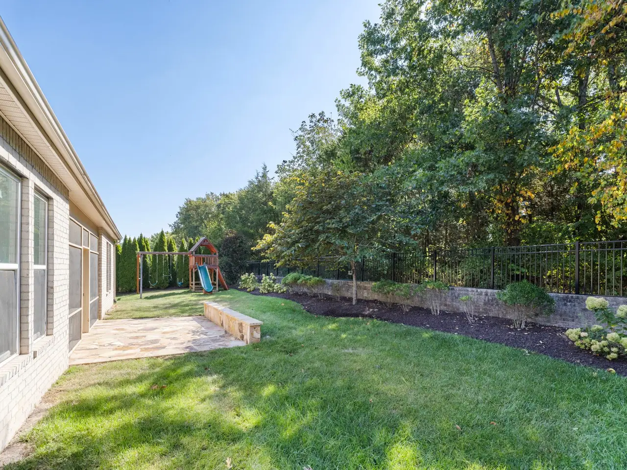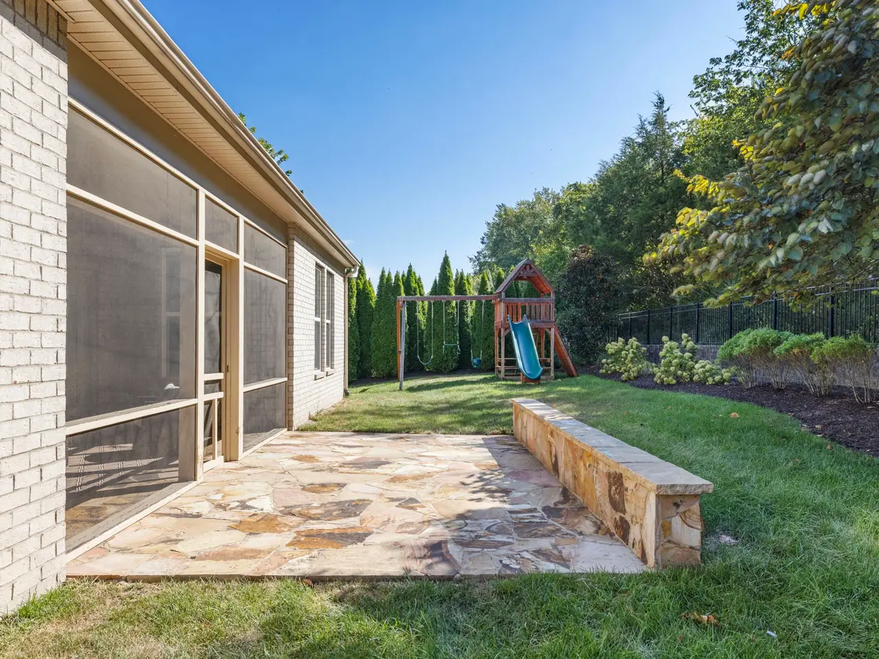 Welcome home to this stunning property with a layout that truly has it all! The gourmet kitchen is the heart of the home, featuring a large island and breakfast area that open to the great room with its cozy stone gas fireplace and beautiful coffered ceiling. Just off the foyer, the formal dining room shines with arched doorways and a wood accent wall that adds warmth and charm. The main level offers a relaxing primary suite with double closets plus a private guest ensuite--perfect for visitors. Upstairs, you'll find plenty of space with an oversized bonus room, a media room for movie nights, and two additional bedrooms, along with extra storage. Fresh white paint throughout makes every room feel bright and welcoming. Enjoy the outdoors year-round with a screened flagstone porch, a patio for grilling, and a level fenced backyard with irrigation--ideal for play, pets, and entertaining. A 3-car garage tops it all off.