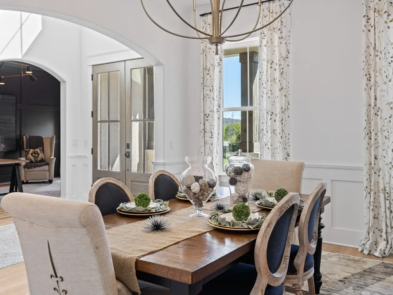 WOW! Luxury Living Awaits in Calistoga - Turnberry Homes' Newest Estate Neighborhood. Welcome to award-winning craftsmanship meeting the perfect blend of elegance and comfort. Nestled in a picturesque setting of rolling terrain and mature trees, this exclusive community offers a rare opportunity to own in one of the most coveted locations. The Nottingham Floor Plan (A Elevation) is designed for those who appreciate spacious, light-filled living. The vaulted family room with custom built-ins creates a grand yet inviting atmosphere, while the vaulted office provides the perfect space for work or quiet retreat. Enjoy the convenience of main-level living, featuring both the primary suite and a private guest suite on the first floor. Step outside to the covered back porch, where you can relax and take in the beauty of your surroundings. Upstairs, a spacious bonus room and walk-in storage offer endless possibilities for recreation and organization. A three-car garage completes this exceptional home. With premium homesites, full sod and irrigation, and incredible included features, this is an opportunity you won't want to miss.