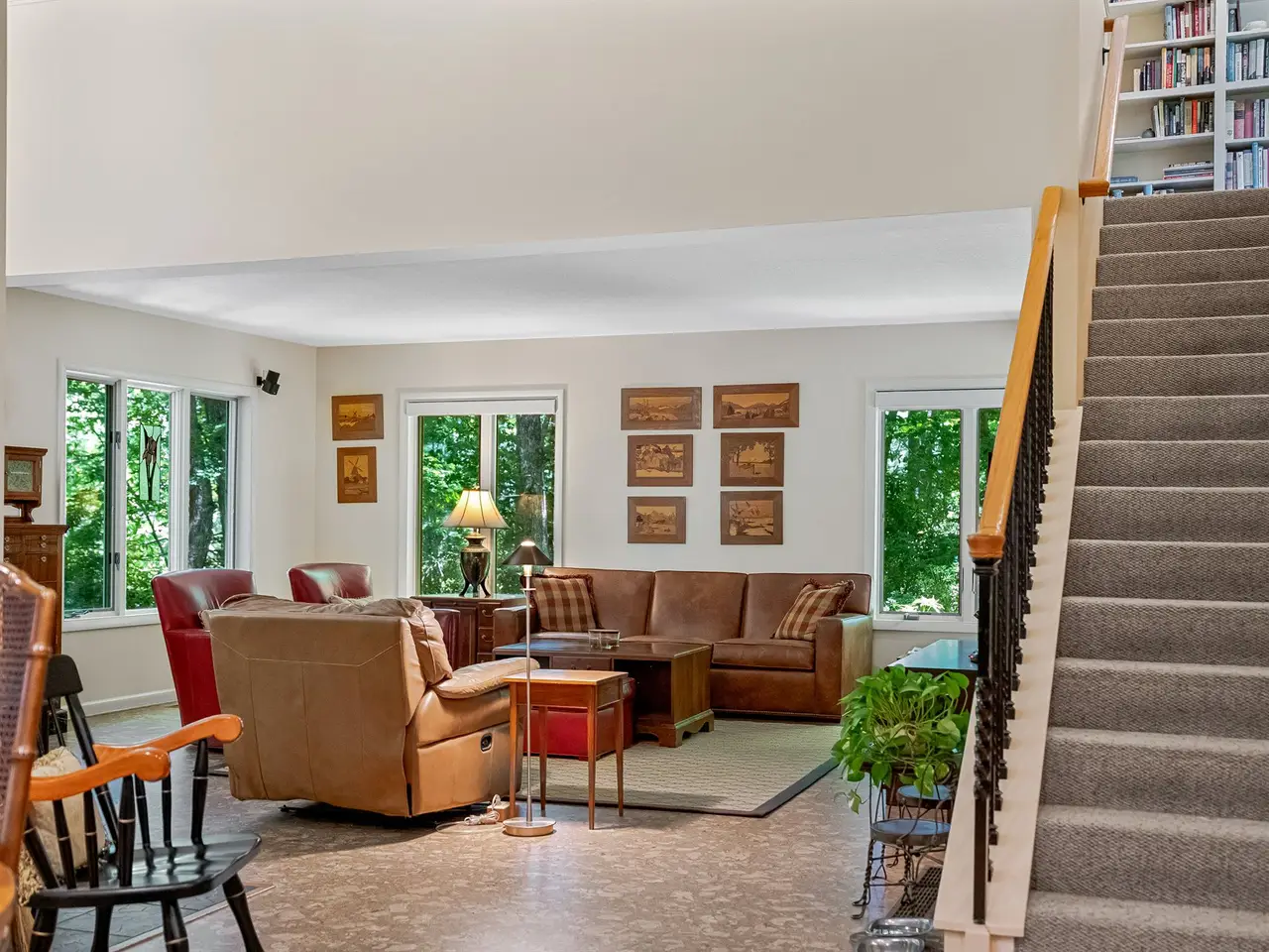 Sherwood Forest Lakefront. Spacious, stylish home that enjoys a natural setting. Architect designed addition and renovations made this home a treasure that matches all your dreams. A welcoming foyer with cherry built-ins opens to generous main level spaces. Great room with fireplace, family room has new cork floors and a kitchen with warm cherry cabinets and a servery pantry. Stainless appliances including gas cooktop and electric warming drawer. Primary bedroom with en-suite European style bath, 2 walk-in closets and a small outdoor patio. Laundry, guest room and bath complete the main level. Perched above the family room is a loft, great for office or bunks. Lower level has a craft room with a murphy bed and full bath. The prize of this home is the outdoor living space. A large screen porch with tiled floor and an expansive open deck let you enjoy the peace of the forest. Easy walk to the lakefront where your dock is the perfect place for kayak or canoe. Whole house generator. https://youriguide.com/140_grouse_ln_brevard_nc