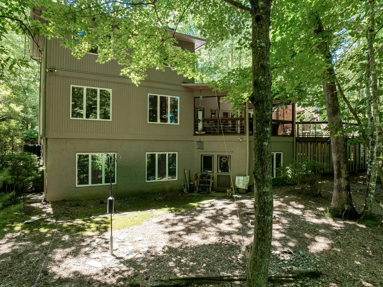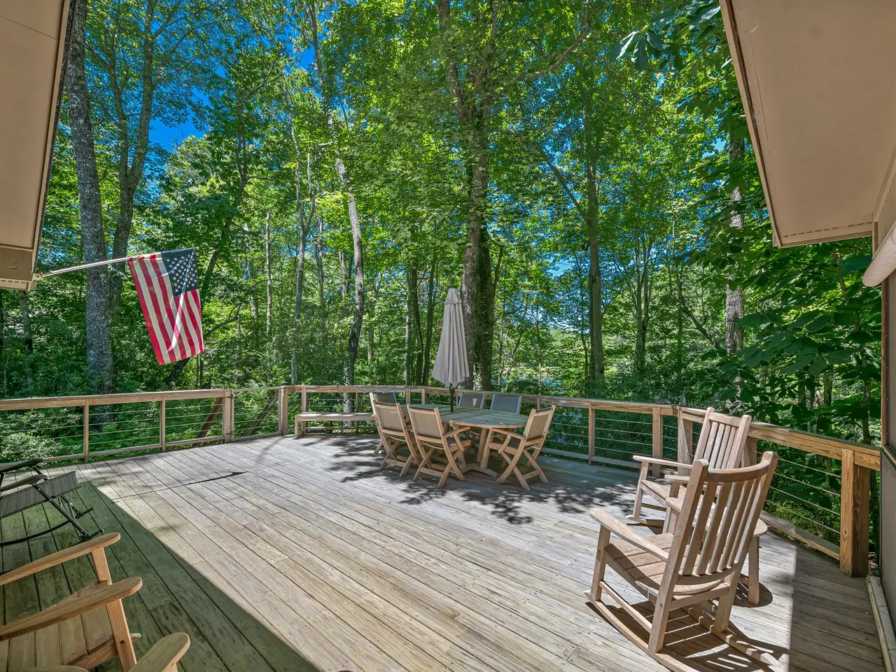 • Outdoor deck with forest views
