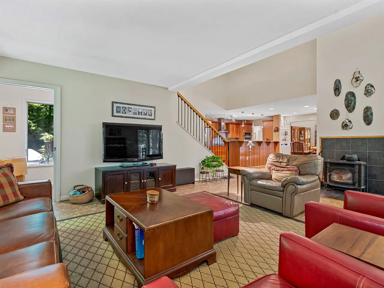 • Fireplace with natural stone surround