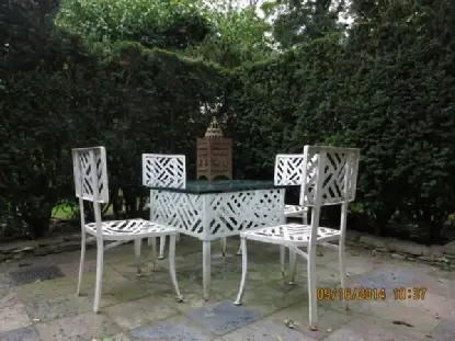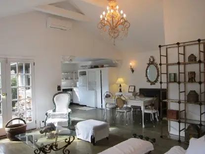 RP#: 160508 This charming, bright and open furnished cottage features a newly-vaulted ceiling in the living room with a Great Shell chandelier, fireplace, dining area, kitchen with new white stone counter, two bedrooms and a bath with wainscot walls and new glass and tiled walk-in shower and fixtures. A new stone private patio with elegant English metal tables and chairs are surrounded by mature Yew hedges.