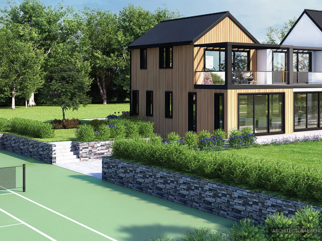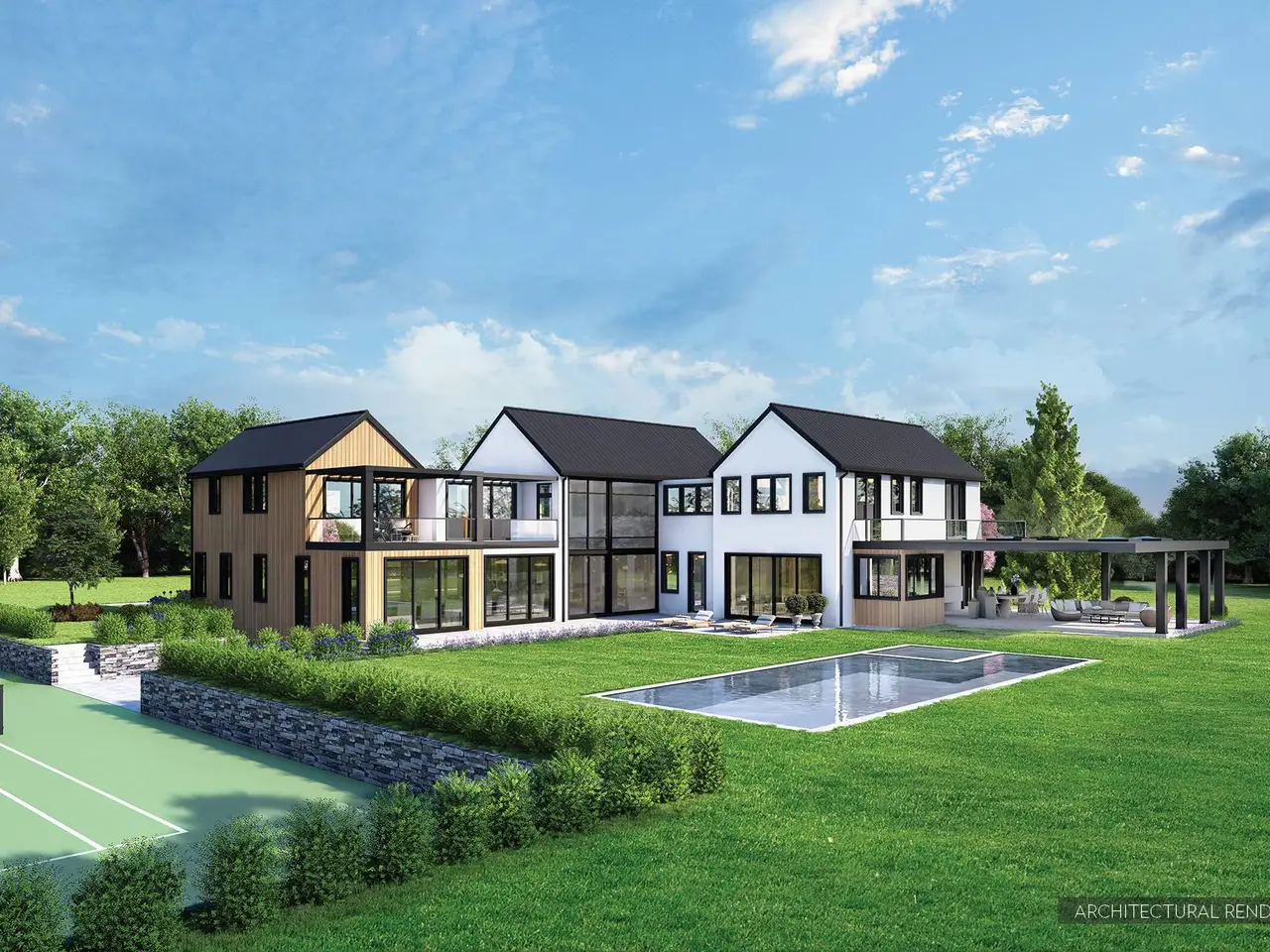 Exceptional, newly constructed and state of the art. A gorgeous new home in an equally stunning setting. Located within the private, 23+/- acre community of Windy Hill Farm in Bridgehampton the property is a sprawling 1.6+/- acre parcel, with pool and tennis, at the end of a cul-de-sac and overlooking open fields. The residence will be built to the highest standards of design and feature 9 bedrooms, 8 full bathrooms and one half bath across 6,875+/- sf of living space as well as a host of amenities including a rock climbing wall and sauna on the lower level, Tesla charging station, hydronic radiant floor heat in the garage and basement, a solar energy system and smart home tech. Finest materials and exquisite craftsmanship melding with architectural details including high ceilings, walls of glass, indoor and outdoor fireplaces, and a standing seam metal roof. The foyer opens into a perfectly designed floor plan. The east wing of the home features a living room, beautiful office, and 2 bedrooms suites. The west side offers a professional chef's kitchen, open to the family room, with large butler's pantry and breakfast area. An expansive covered porch, right off the kitchen and family room is stylish place to lounge in the glow of the outdoor fireplace. State of the art tech can be found throughout, adding to a sense of comfort and convenience. The entire home is prewired for Sonos. The bedrooms are elegant, nearly all with en suite baths. Both the primary and junior primary suites offer luxurious accommodation to relax and unwind. The walk-out lower level features a glassed gym area with access to the lower court and and Tennis beyond, sauna, game room wine closet, ample storage, and 2 bedrooms sharing a bath. Outside, the lush, well-manicured grounds will surround a gunite infinity swimming pool, tennis court, and offer pasture views. Option may be available during the pre-construction period to custom build a pool house or accessory structure for up to 3 horses with cost depending on the buyer's final choices of amenities. 13+ acres of the Windy Hill Farm community will be preserved as common open space for the exclusive use of the homeowners inclusive of a 100-year-old apple orchard and a planned horse pasture. A homeowner association will manage the usage of the space to insure it preserves the bucolic nature of the community. Located in Bridgehampton, NY, a hamlet long renowned for idyllic estates, historic horse farms and exceptional equestrian events.