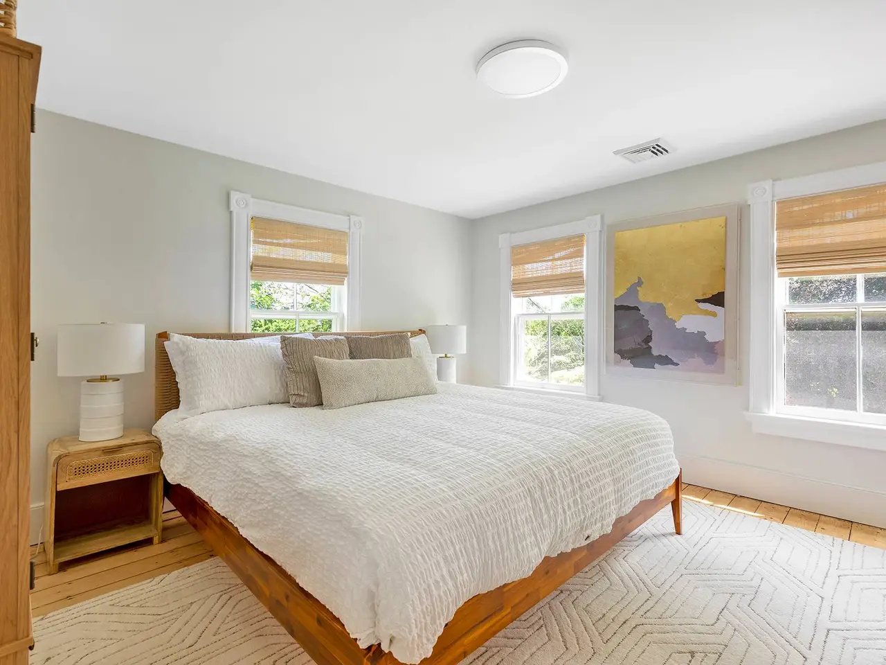 Rental Reg. # RA240753. New owners on this turn of century farmhouse in Bridgehampton North. Surrounded by pastures and tree nurseries, this shy acre property is ready to be enjoyed for summer 2024! Enter the fully fenced yard and pass koi ponds and flower beds to the screened-in back porch and covered front porch. The first floor offers a bright Living room, Dining room, separate kitchen, sunny master bedroom with king-size bed, a full bath, laundry room and office. The second floor has another Master Bedroom with King bed and en suite bath, and three additional bedrooms (one king, one full and one with two sets of bunks) as well as another full bath. A huge flat yard surrounds the decked pool area.