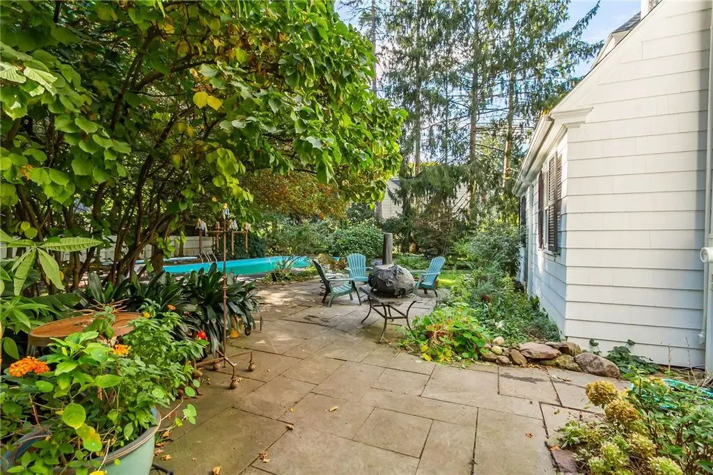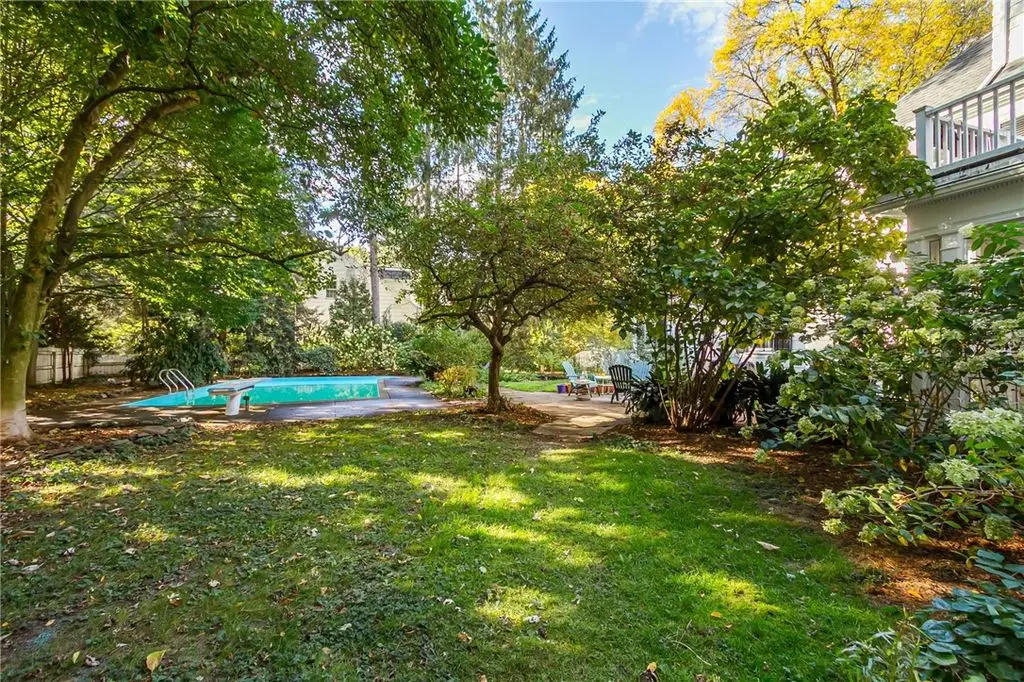 Absolute charmer on beautiful Allens Creek Road! Conveniently located near everything you could ever want or need-just minutes from three golf courses and the expressway, in an award-winning school district. Offering over 3,300 square feet of character blended perfectly with the modern conveniences of today. This gracious home features 5 bedrooms, 3 full baths, generously sized rooms, built-ins, and magazine-worthy trim details. The primary suite opens with a Dutch door to a rooftop balcony overlooking the patio, gardens, and Gunite pool perfect for enjoying your morning coffee. There are two wood-burning fireplaces and round-pegged hardwood floors throughout the first floor. Enjoy entertaining in the spacious dining room adorned with mirrored sconces, brass and glass doorknobs, and charming architectural touches. Storage abounds with a surprising number of closets-including a card table closet in the living room, ironing board closets, and even a whimsical "Harry Potter" closet under the stairs. The third floor offers a perfect private suite for guests, while the screened porch off the dining room is sure to become your favorite afternoon retreat. The lower level includes an entertainment room, fruit room, laundry area, and beautiful beadboard detailing. This home has been meticulously cared for and thoughtfully updated. Recent updates include: exterior painting by Tim McGrath (brush-painted, not sprayed) in 2024, new architectural 50-year shingle tear-off roof and gutter system, new pool pump and high-efficiency pool heater (2021-2022), concrete driveway (2021), high-efficiency smart furnace and A/C (2020), refinished hardwood floors (2019), and a refreshed kitchen with quartz countertops, subway tile backsplash, new sink, faucet, and flooring (2017). Town sq ft is incorrect... Sq ft of 3305 was measured by the last appraiser. Come see this rarely available piece of history for yourself!