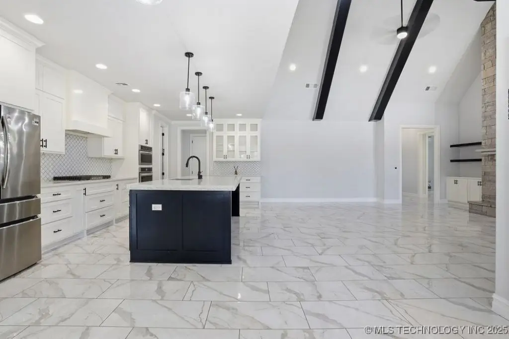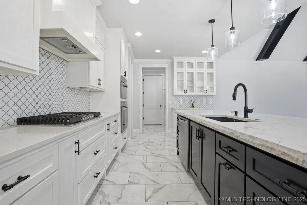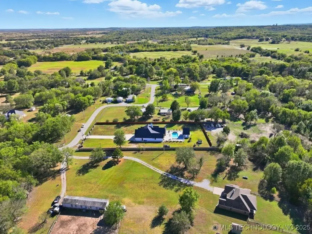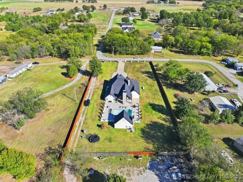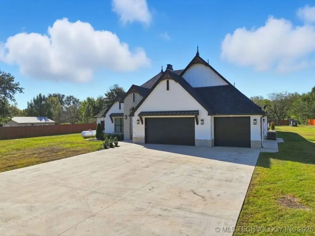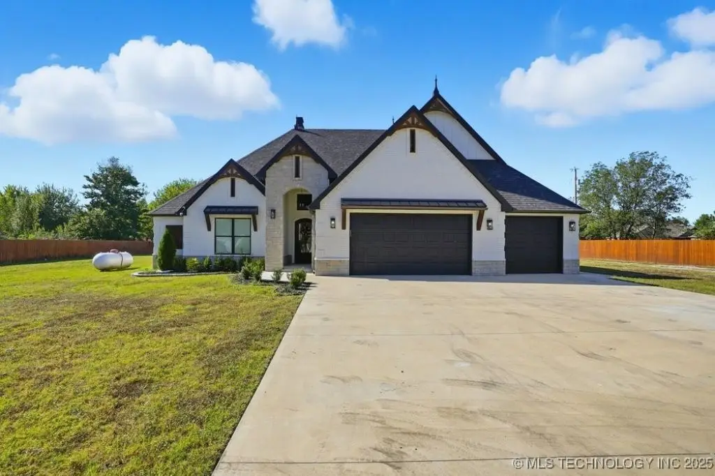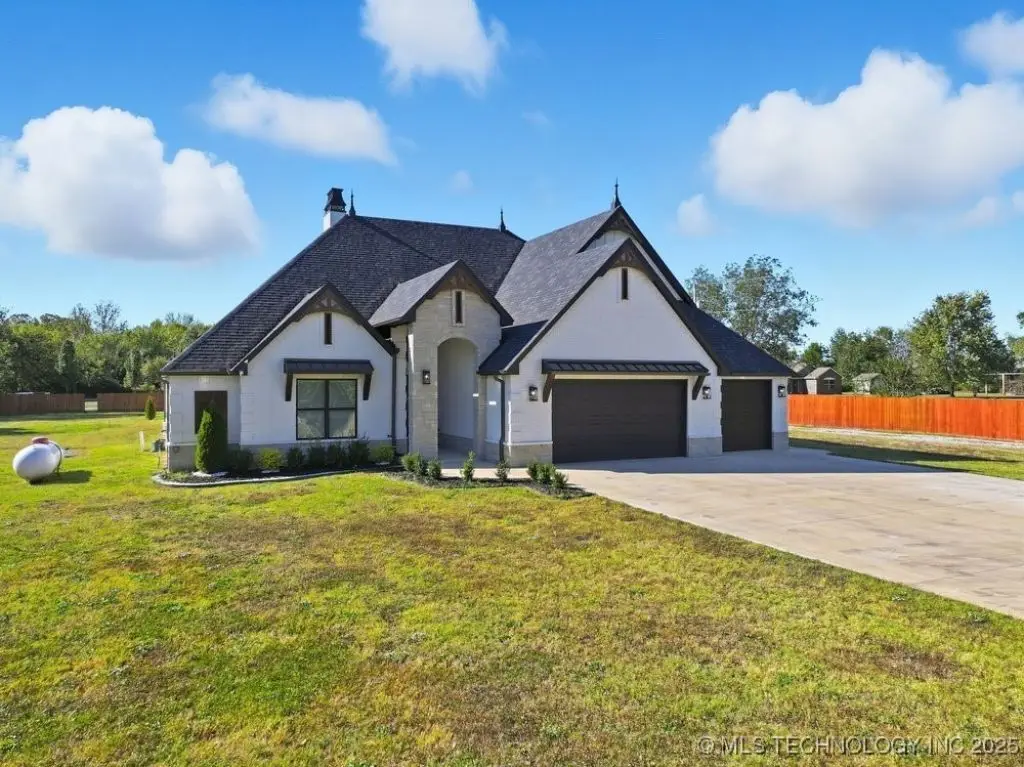 Welcome to this stunning 2022 customer-built home on 2.5 acres +/- gated, fully fenced acres in Broken Arrow. This 4-bedroom, 3.5-bath home features a 3-car garage with epoxy floors, high ceilings, and luxury finishes throughout. Enjoy a spacious kitchen with a large island, quartz countertops, gas cooktop, and oversized pantry. The primary suite offers a fireplace, walk-in shower, and custom box ceiling. Entry showcases a butterfly ceiling, and fireplace provide warmth and charm. Custom lighting, large living spaces, and tall ceilings elevate the feel. Step outside to a true backyard retreat with an outdoor kitchen, grill, bar, firepit, inground pool, hot tub, and fountain. Perfect for entertaining or peaceful evenings. Plenty of room to live, play, and relax with style and privacy.