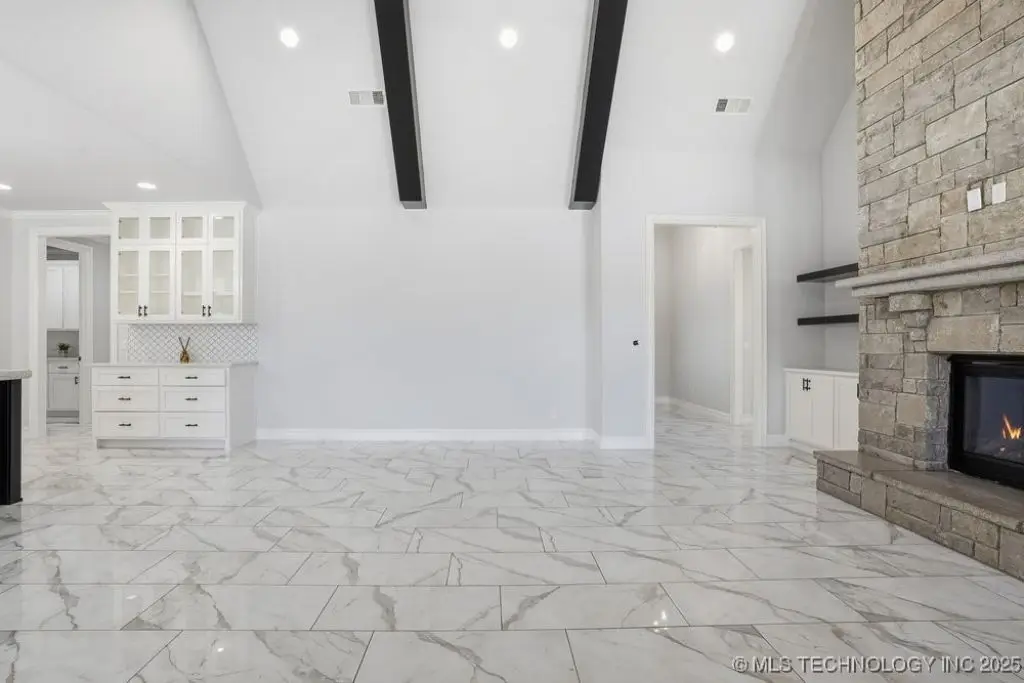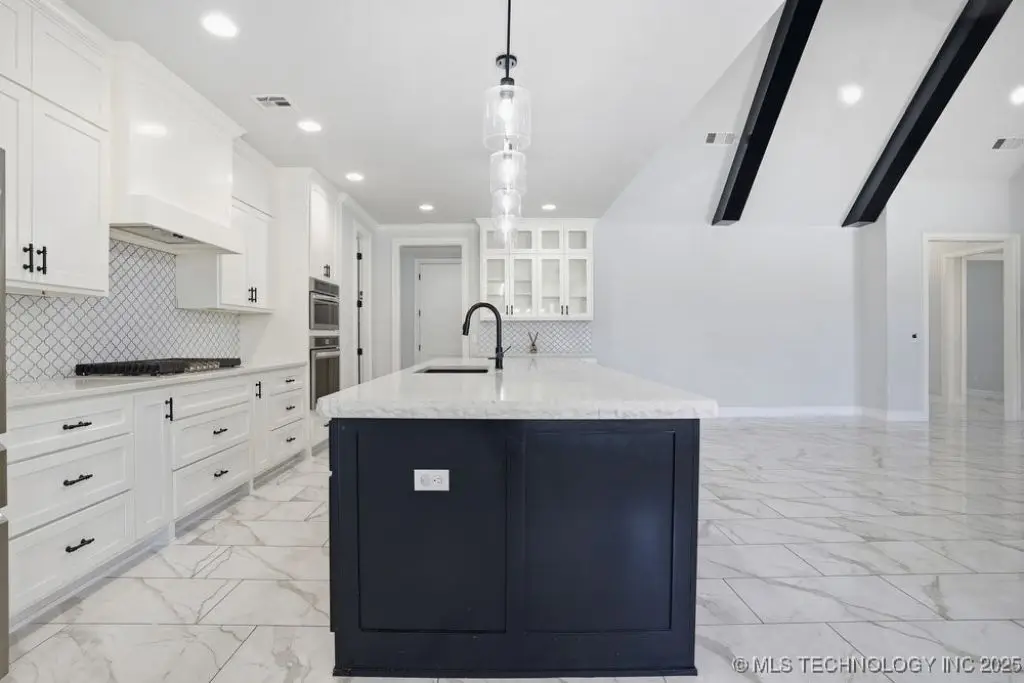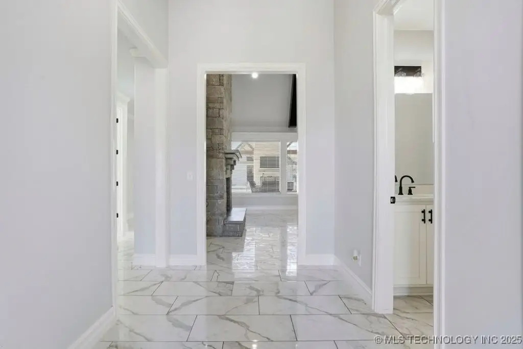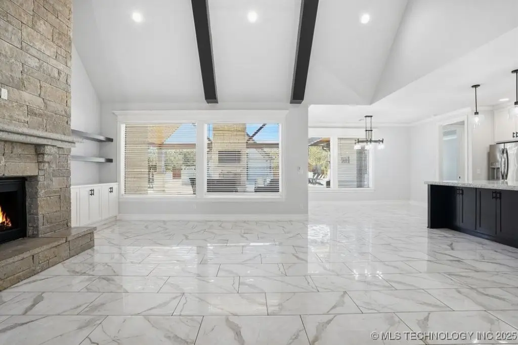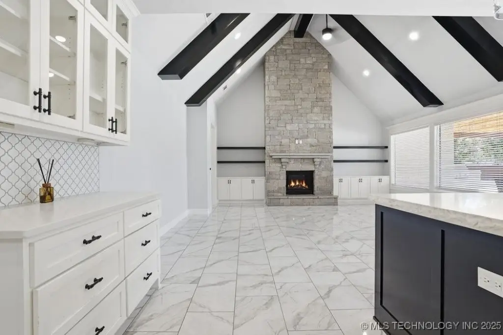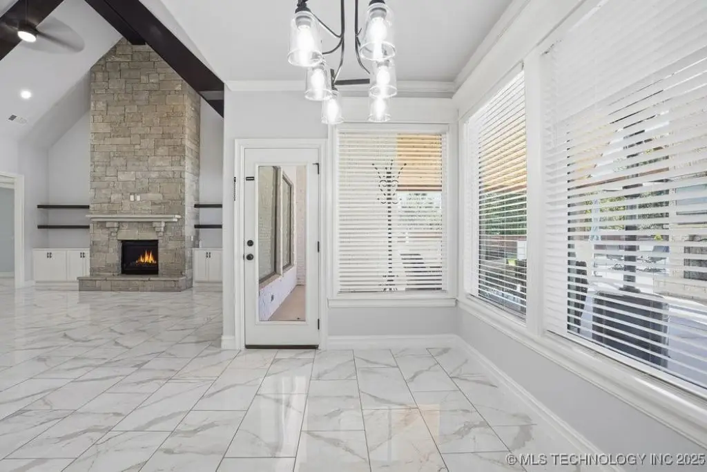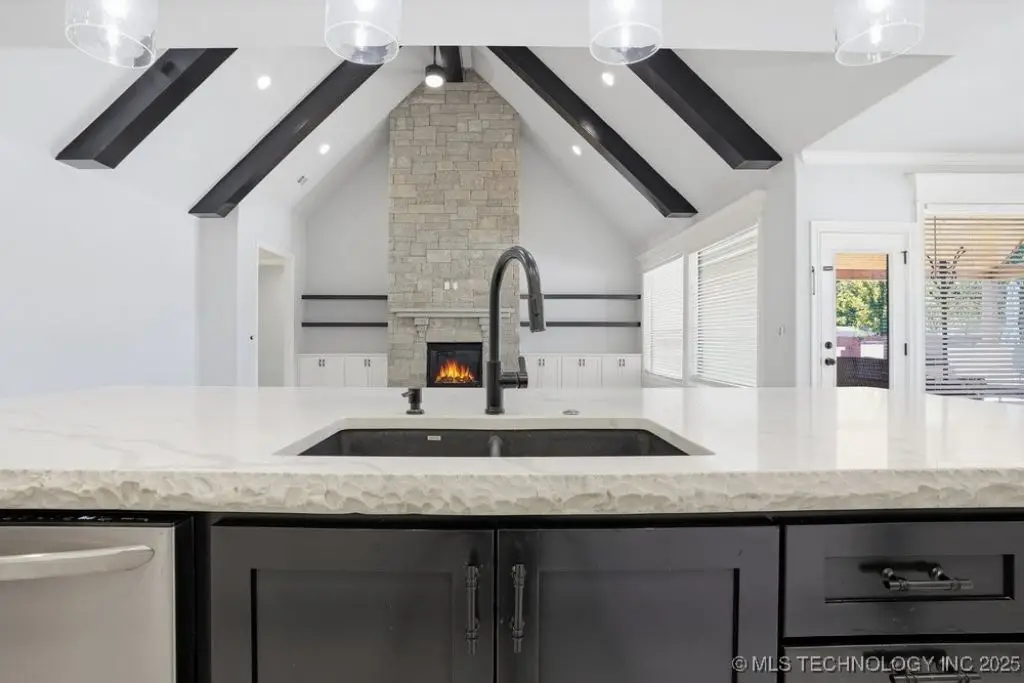 Welcome to this stunning 2022 customer-built home on 2.5 acres +/- gated, fully fenced acres in Broken Arrow. This 4-bedroom, 3.5-bath home features a 3-car garage with epoxy floors, high ceilings, and luxury finishes throughout. Enjoy a spacious kitchen with a large island, quartz countertops, gas cooktop, and oversized pantry. The primary suite offers a fireplace, walk-in shower, and custom box ceiling. Entry showcases a butterfly ceiling, and fireplace provide warmth and charm. Custom lighting, large living spaces, and tall ceilings elevate the feel. Step outside to a true backyard retreat with an outdoor kitchen, grill, bar, firepit, inground pool, hot tub, and fountain. Perfect for entertaining or peaceful evenings. Plenty of room to live, play, and relax with style and privacy.