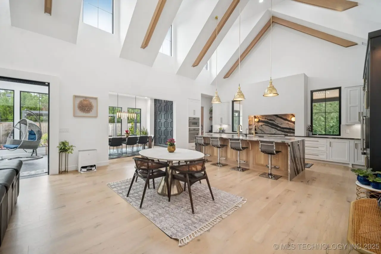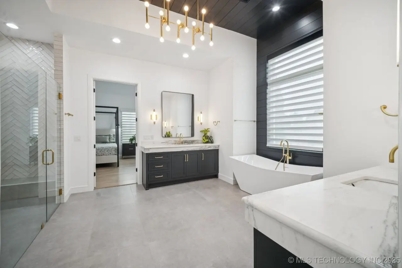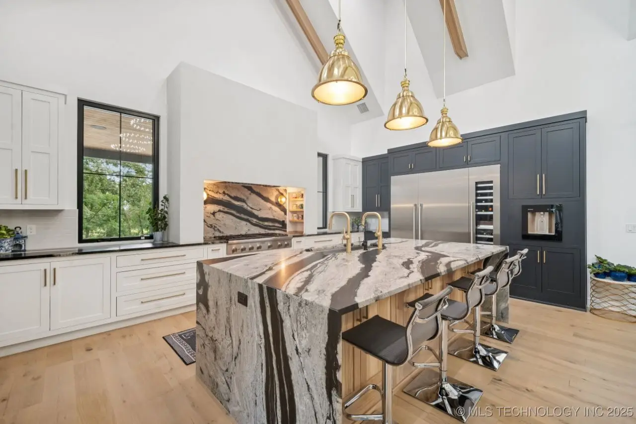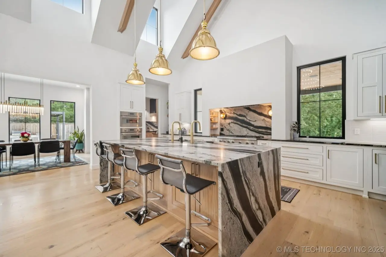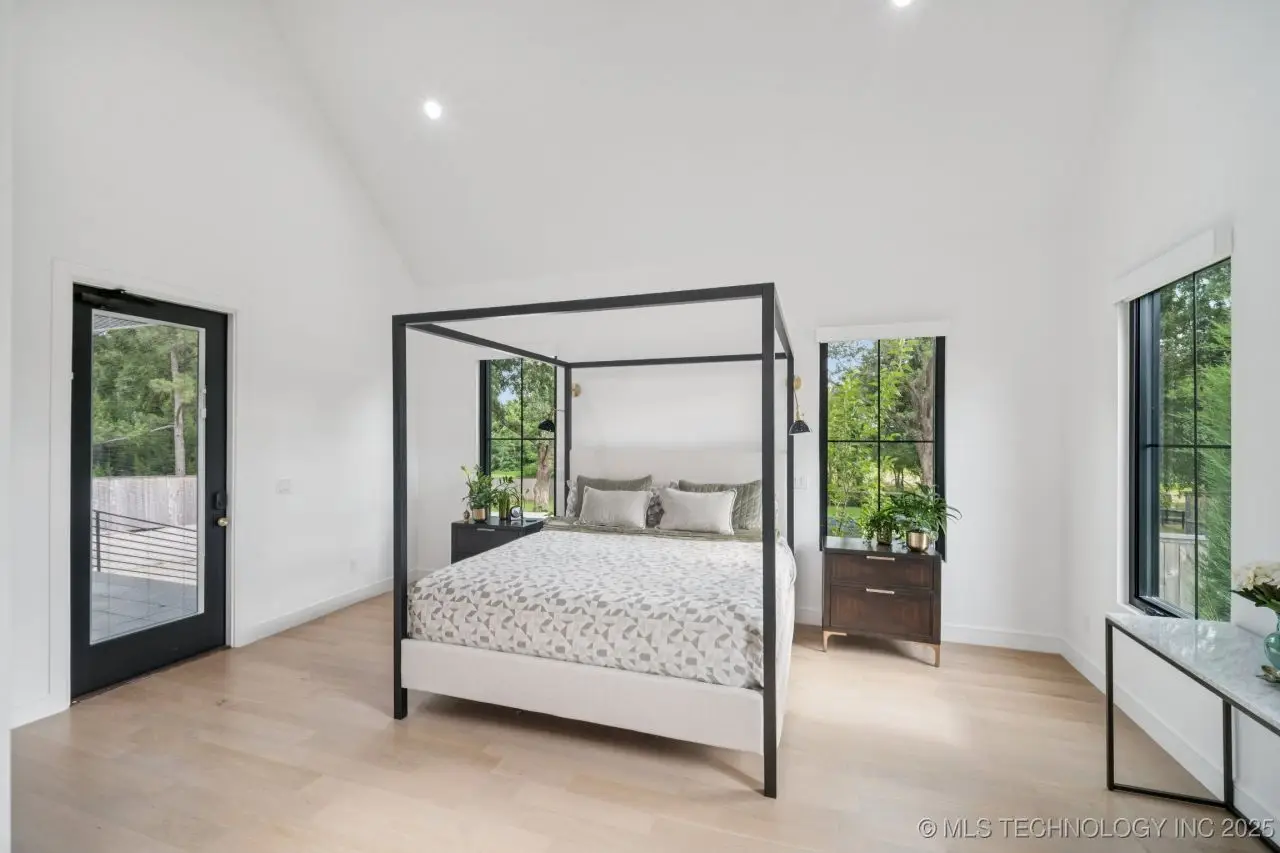 Modern Eco-Luxury Smart Home with Solar, Tesla Powerwall, Pool & Resort-Style Outdoor Living Completed in 2023, this modern estate combines contemporary elegance, energy efficiency, and future-ready technology. A striking exterior and lush evergreen landscaping welcome you inside, where soaring ceilings and floor-to-ceiling windows fill the home with light. The main level offers a designer kitchen with Thermador appliances, reverse osmosis system and a Scullery-style prep kitchen - a fully equipped second kitchen tucked away for cooking perfect for both everyday living and entertaining. Flexible living spaces include 5 bedrooms (all with ensuite baths + walk-in closets), 6 bathrooms, office, gym, an all-season enclosed sunroom designed to enjoy the changing scenery year-round, theater with wet bar, game room, hobby room, and dual laundries. A future elevator shaft and storm shelter add comfort and peace of mind. Step outdoors to a private resort retreat: sleek pool with spa, shaded pergolas, outdoor kitchen, covered patios (including a private patio off the primary suite), mature oak trees, raised garden beds, fruit trees, and drip irrigation. Smart features include rooftop solar panels, Tesla Powerwall, whole-home audio, integrated security with surveillance, motorized shades, wall iPorts, and EV-ready outlets in the oversized epoxy-finished 4-car garage. Located in the award-winning Bixby School District, this property blends sustainability, innovation, and luxury into one lifestyle. Special Features: Solar Panels Tesla Powerwall EV Charging / 4 car Smart Home Whole-Home Audio Motorized Shades Chef's Kitchen + Full Prep Kitchen / Pantry Theater Gym Sleek Pool & Spa Outdoor Kitchen Pergolas Seamless Indoor / Outdoor living Storm Shelter Future Elevator Shaft Dual Laundry Irrigated Raised Gardens Private Primary Patio. Be sure to view the video (https://iframe.videodelivery.net/5d62837dbdb4c3eabbff880f08a89753)