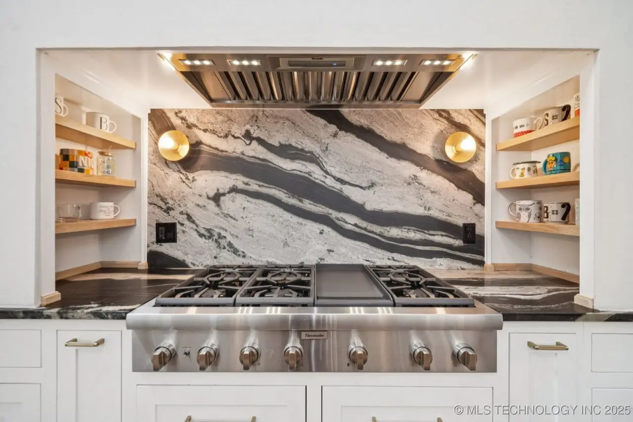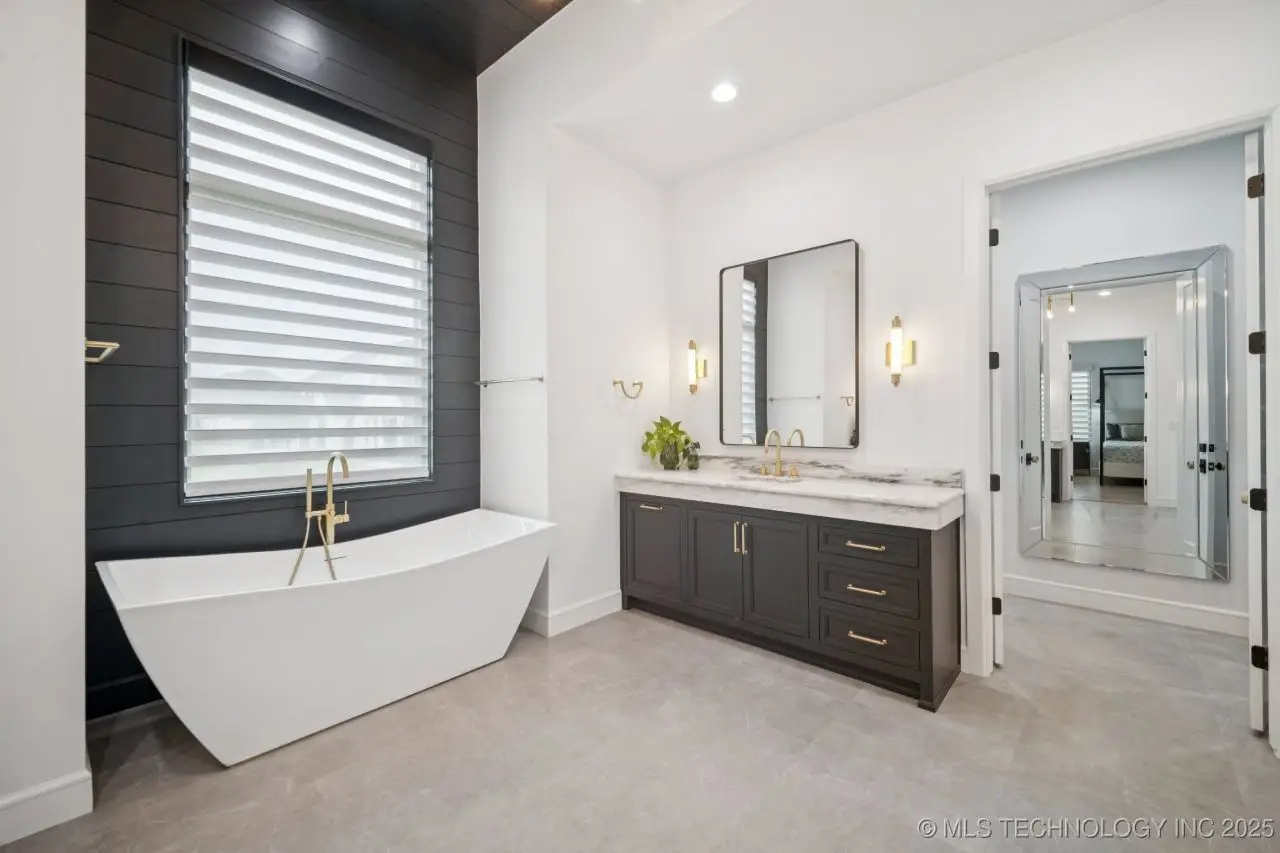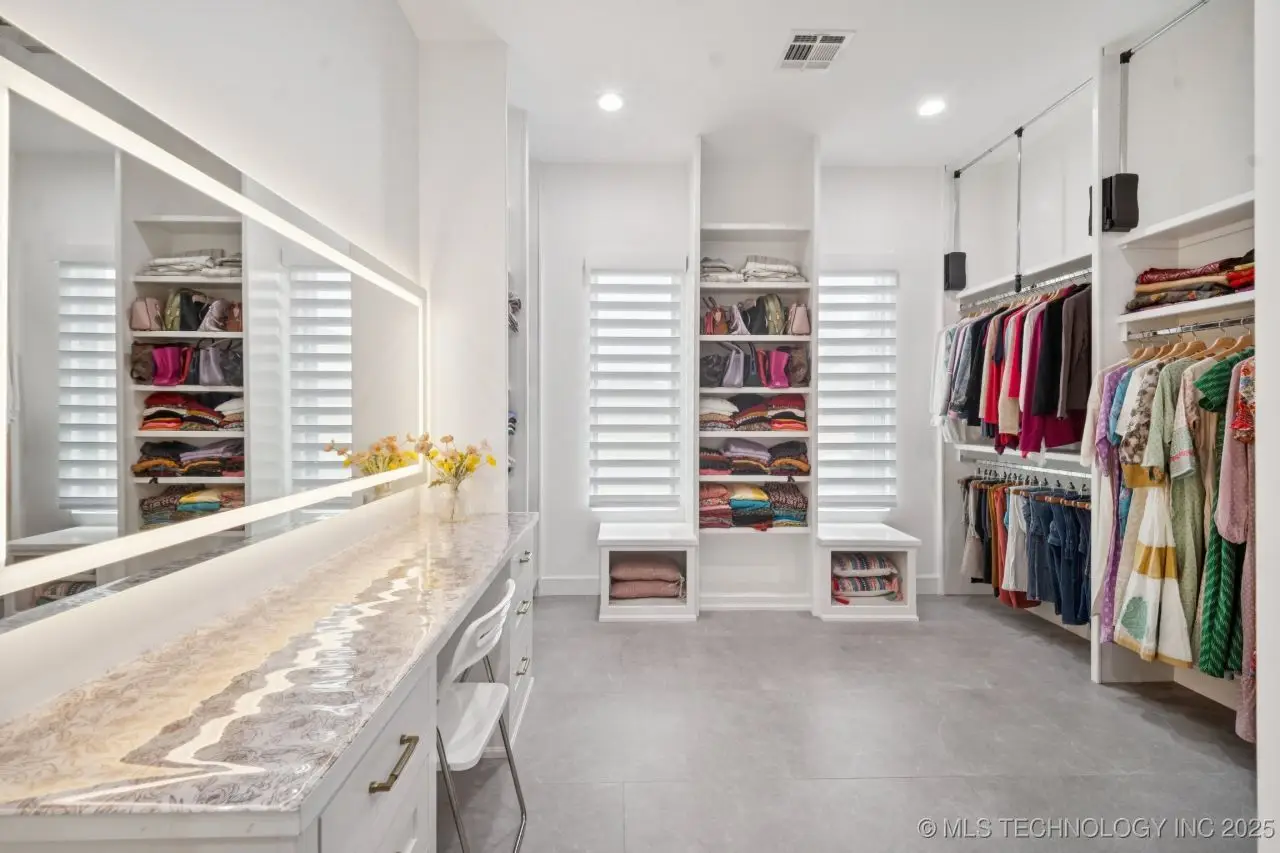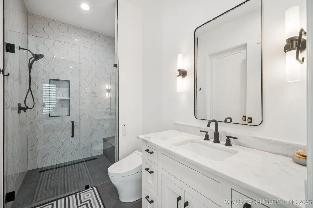 Modern Eco-Luxury Smart Home with Solar, Tesla Powerwall, Pool & Resort-Style Outdoor Living Completed in 2023, this modern estate combines contemporary elegance, energy efficiency, and future-ready technology. A striking exterior and lush evergreen landscaping welcome you inside, where soaring ceilings and floor-to-ceiling windows fill the home with light. The main level offers a designer kitchen with Thermador appliances, reverse osmosis system and a Scullery-style prep kitchen - a fully equipped second kitchen tucked away for cooking perfect for both everyday living and entertaining. Flexible living spaces include 5 bedrooms (all with ensuite baths + walk-in closets), 6 bathrooms, office, gym, an all-season enclosed sunroom designed to enjoy the changing scenery year-round, theater with wet bar, game room, hobby room, and dual laundries. A future elevator shaft and storm shelter add comfort and peace of mind. Step outdoors to a private resort retreat: sleek pool with spa, shaded pergolas, outdoor kitchen, covered patios (including a private patio off the primary suite), mature oak trees, raised garden beds, fruit trees, and drip irrigation. Smart features include rooftop solar panels, Tesla Powerwall, whole-home audio, integrated security with surveillance, motorized shades, wall iPorts, and EV-ready outlets in the oversized epoxy-finished 4-car garage. Located in the award-winning Bixby School District, this property blends sustainability, innovation, and luxury into one lifestyle. Special Features: Solar Panels Tesla Powerwall EV Charging / 4 car Smart Home Whole-Home Audio Motorized Shades Chef's Kitchen + Full Prep Kitchen / Pantry Theater Gym Sleek Pool & Spa Outdoor Kitchen Pergolas Seamless Indoor / Outdoor living Storm Shelter Future Elevator Shaft Dual Laundry Irrigated Raised Gardens Private Primary Patio. Be sure to view the video (https://iframe.videodelivery.net/5d62837dbdb4c3eabbff880f08a89753)