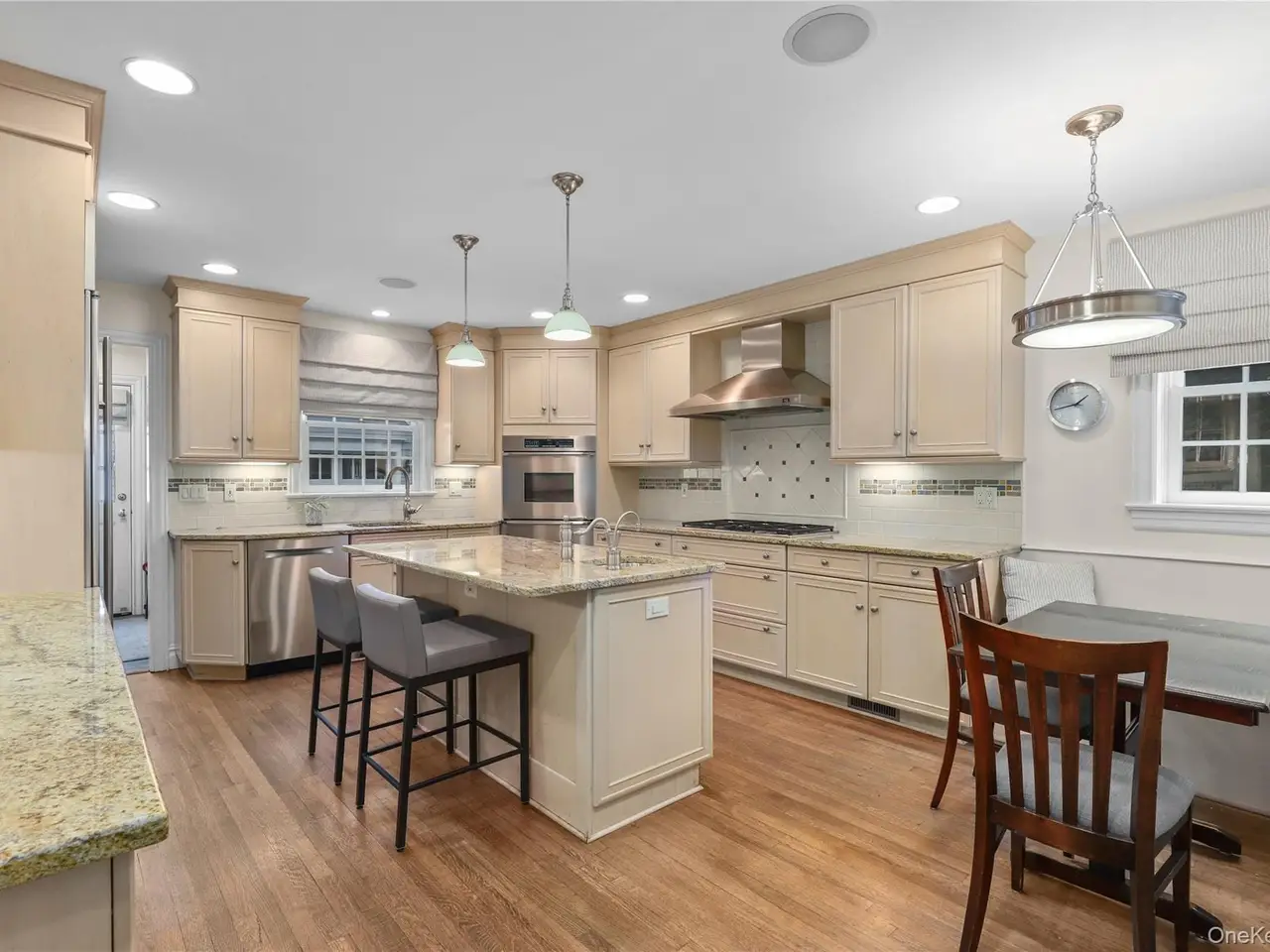 Beautifully maintained Colonial in one of Bronxvilles most sought-after neighborhoods. This charming home offers a generous and thoughtfully designed floor plan ideal for todays lifestyle. The welcoming formal entry opens to a light-filled family room with views of the backyard. The formal living room features a gas fireplace, French doors to the patio, and an adjoining sunroomperfect as a home office or spacious sitting room. A formal dining room and large family room with surround sound and French doors overlooking the backyard provide seamless spaces for both relaxation and entertaining. The eat-in chefs kitchen is equipped with stainless steel appliances, a center island, and abundant cabinetry. Upstairs, the expansive primary suite includes a luxurious bath with soaking tub and a large walk-in closet. Three additional bedrooms and a renovated full hall bath complete the second floor. The third level offers another bedroom plus two flexible roomseach perfect for a second home office, playroom, or guest suitealong with generous storage. The finished lower level with an additional 1,297 sq ft, features a gas fireplace, recreation room, 200+ bottle cedar wine closet with WhisperKOOL 1600 system, gym area, laundry room, and mechanicals. Outside, the backyard provides a flat, private landscape with a generous patio ideal for dining, relaxing, and play. Just a short stroll to Bronxville Village shops, restaurants, and train, this home perfectly blends comfort, convenience, and timeless charm.