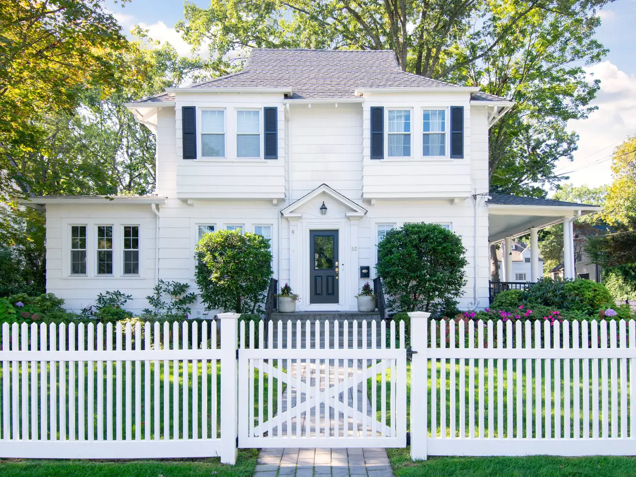 Stunning White Colonial Sits on Beautiful Corner Lot