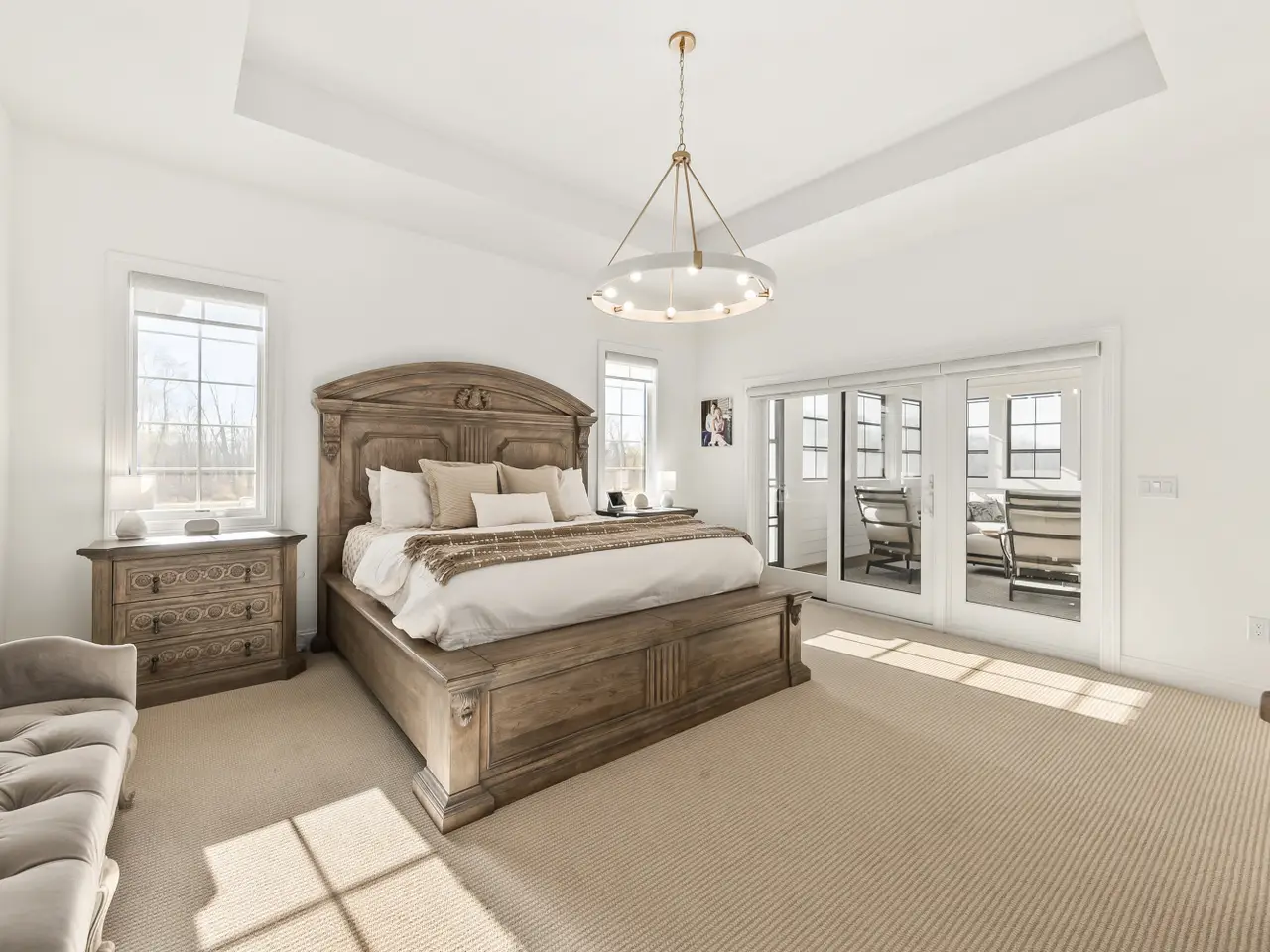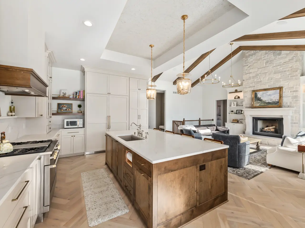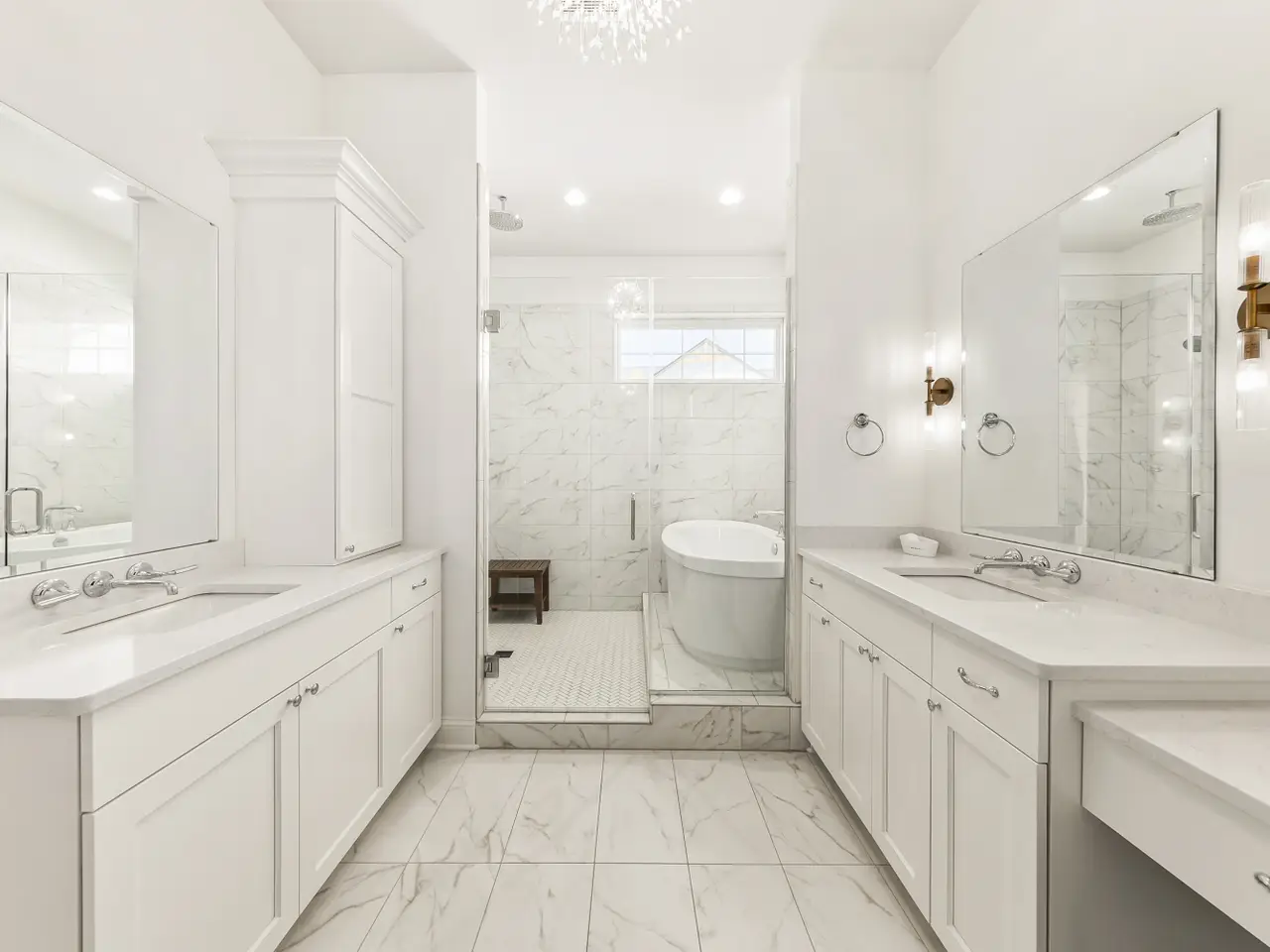 Welcome to this 2024 custom masterpiece in the Elmbrook School District, where no detail was overlooked. A double-arched front entry framed by stone courtyard walls sets the tone for the craftsmanship inside. Anderson 400 Series casement windows fill the home with light, showcasing quartz surfaces and custom millwork throughout. The mudroom features custom lockers and a tiled dog shower, while a bonus office above the garage offers built-ins with leather pulls and a hidden entry to a private golf simulator. The primary suite opens to a serene screened-in porch. The finished lower level includes custom built-ins, a snack bar, guest suite, full bath with sauna across from the gym, a built-in playhouse, bonus playroom, and a sunken theater area. Every inch of this home blends thoughtful design with luxury and comfort.