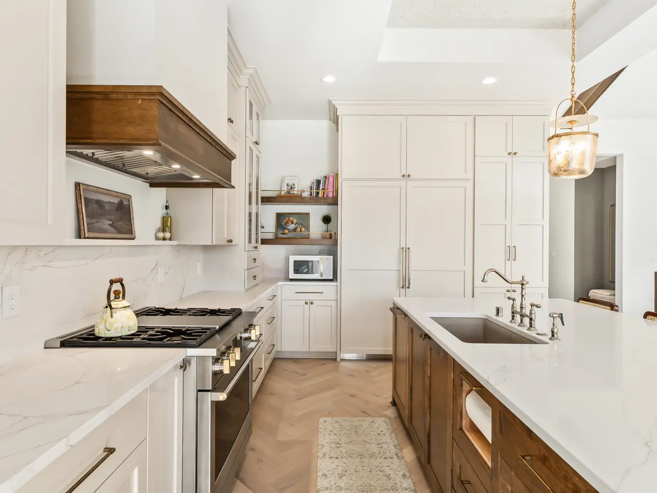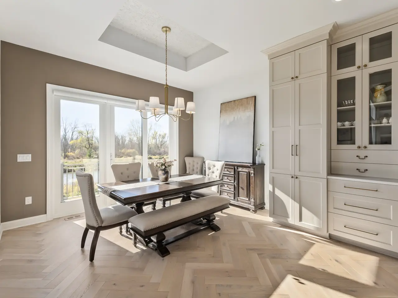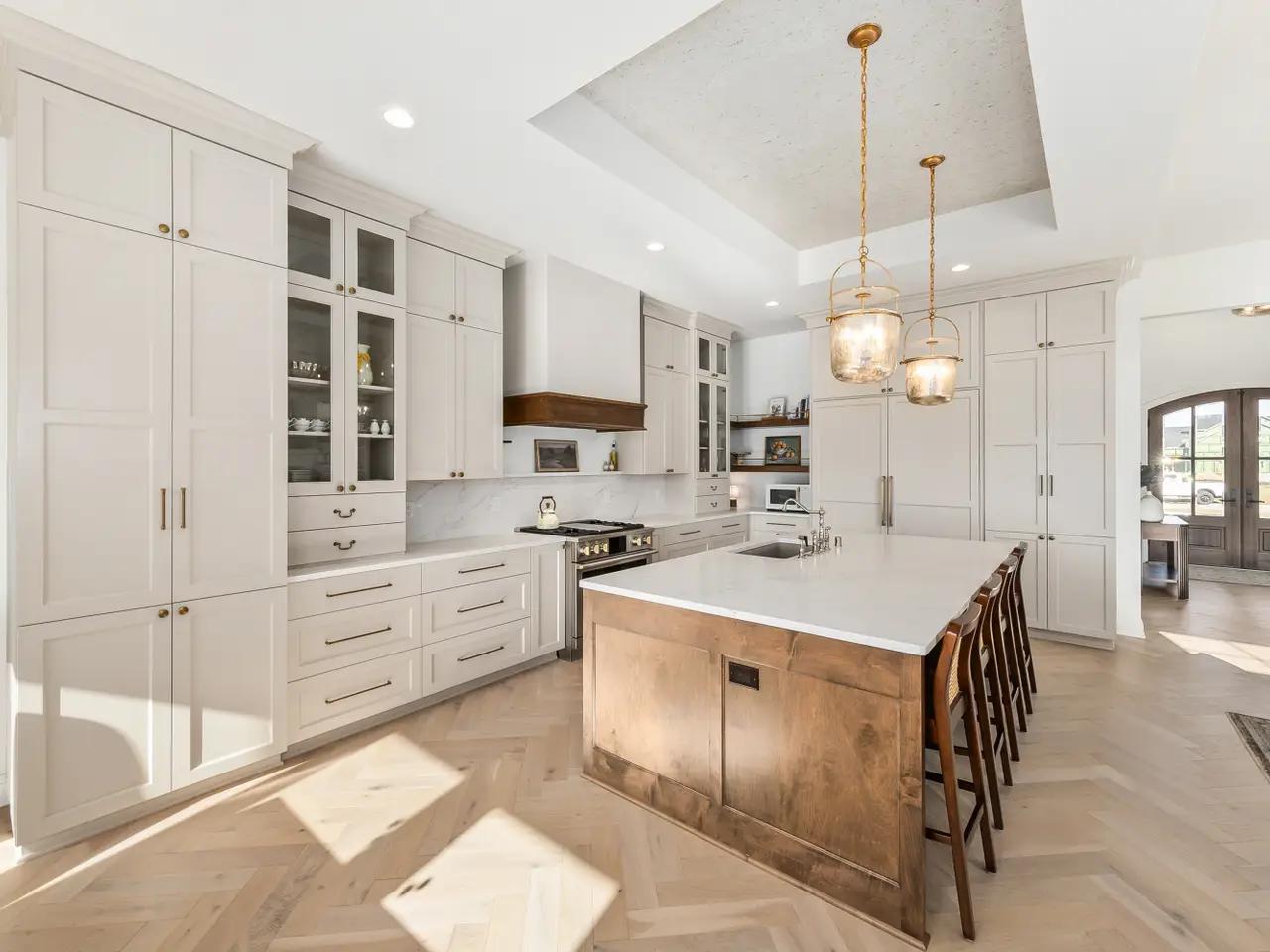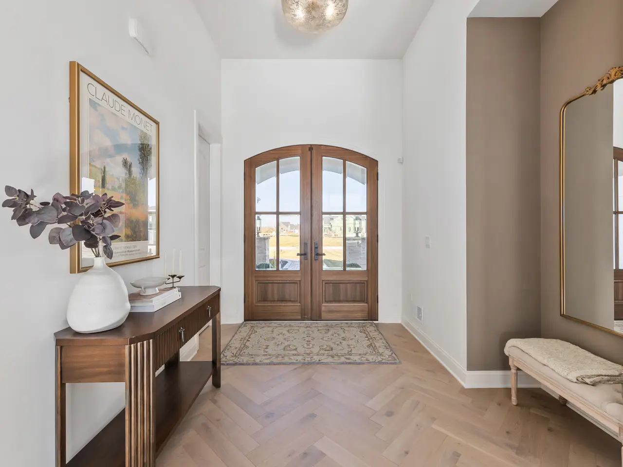 Welcome to this 2024 custom masterpiece in the Elmbrook School District, where no detail was overlooked. A double-arched front entry framed by stone courtyard walls sets the tone for the craftsmanship inside. Anderson 400 Series casement windows fill the home with light, showcasing quartz surfaces and custom millwork throughout. The mudroom features custom lockers and a tiled dog shower, while a bonus office above the garage offers built-ins with leather pulls and a hidden entry to a private golf simulator. The primary suite opens to a serene screened-in porch. The finished lower level includes custom built-ins, a snack bar, guest suite, full bath with sauna across from the gym, a built-in playhouse, bonus playroom, and a sunken theater area. Every inch of this home blends thoughtful design with luxury and comfort.