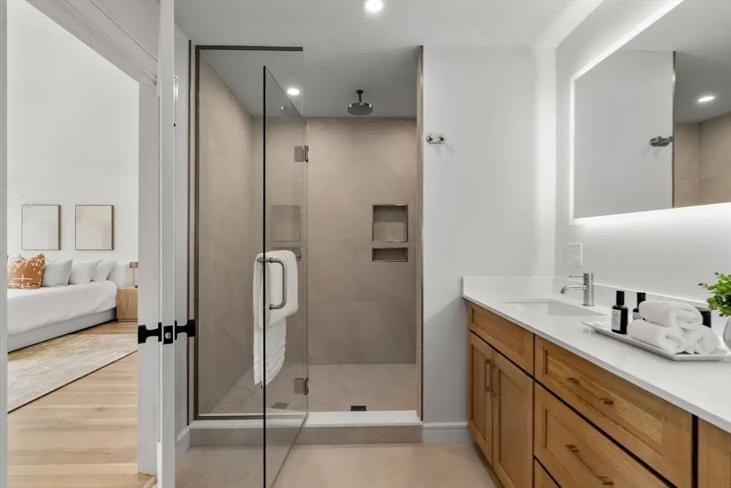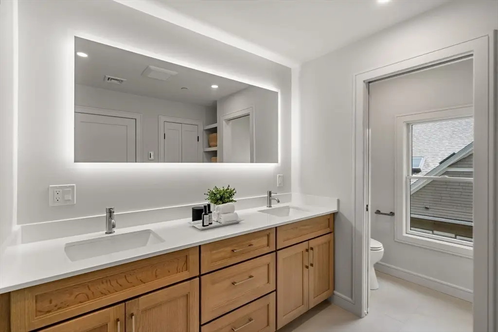 Exceptional. Refined. Yours. This luxury 5 bed, 4.5 bath tri-level residence with nearly 4,000sf, private outdoor space and 3-car parking (EV) offers the feel of a SF home - right in the heart of Washington Square. More than a renovation, a complete reimagining of a Brookline classic blending Victorian era detail with high-end construction & luxury finishes. Soaring 9-10' ceilings, a wide-open floor plan, and captivating chefÆs kitchen set a welcoming tone for entertaining and daily living. And design allows for a main-level guest suite, media room or play place. Upstairs are a luxurious primary suite offering a serene retreat with vaulted ceilings, dual walk-in closets and lovely bath plus three family ensuite BRs and a loft study. Construction is optimized for energy efficiency, quiet and light, and the land for spacious exclusive-use yard, patio and outdoor storage. Walk to the MBTA, Driscoll, shops, restaurants, Whole Foods and easy access to Longwood Medical, Boston & Cambridge.