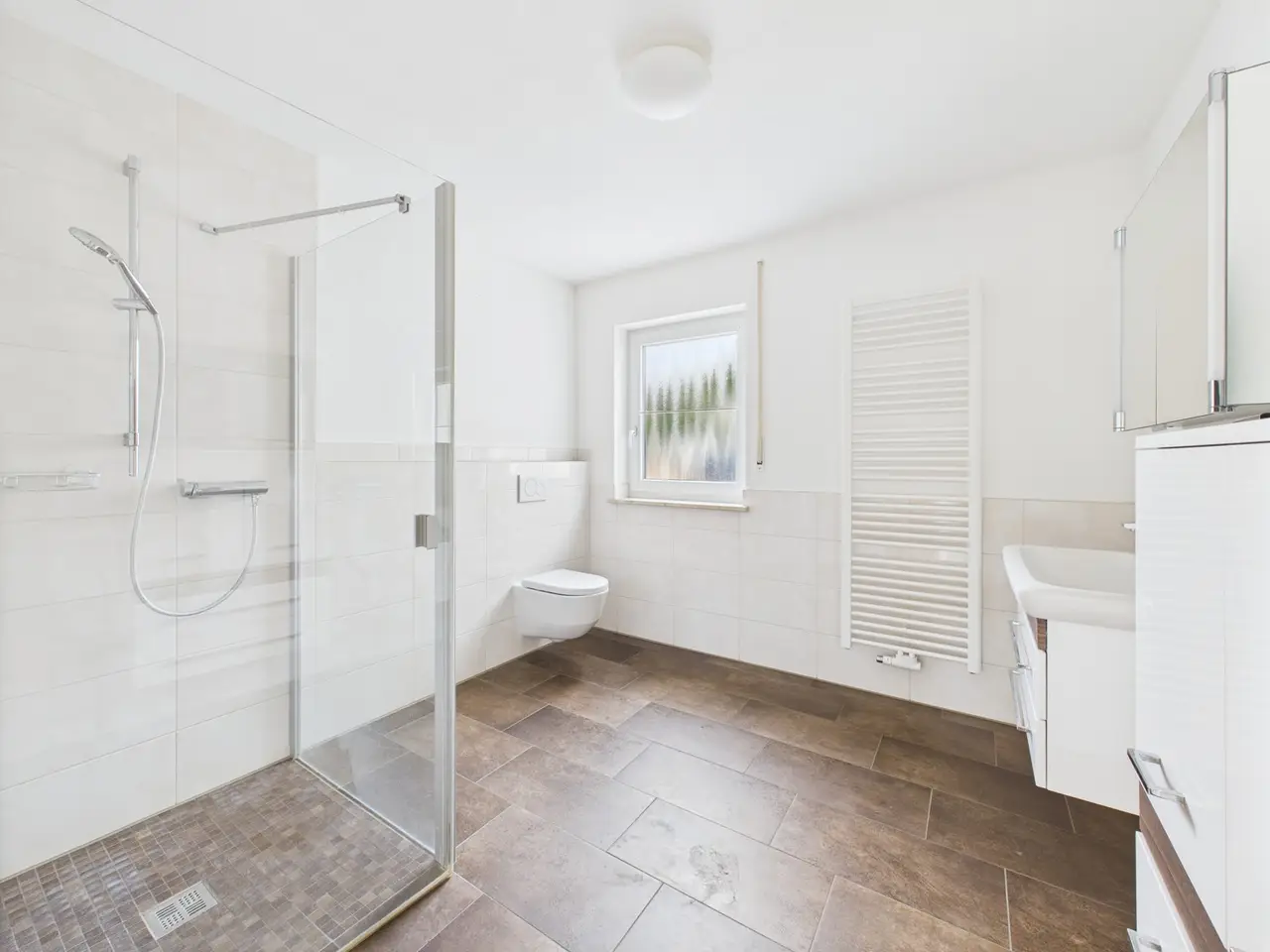 Spacious two-family house with granny apartment and modern living ambience in Bruckberg-Gündelkofen This attractive two-family house impresses with a successful combination of contemporary comfort, generous space and flexible usage options. Originally built in 1982, the building was extensively renovated and almost completely rebuilt in 2014. The total living space of approx. 260 m² includes the large terraces on a pro rata basis. The total living space is therefore around 230 m². The upper floor offers a modern living ambience with high ceilings, a spacious living and dining area, separate kitchen and a stylish panoramic fireplace, which gives the room a special atmosphere. A contemporary bathroom rounds off the attractive overall picture. The lower residential unit still retains its original character in some areas and is ideal for individual design ideas. Both apartments have a well thought-out room layout and offer plenty of space for several generations to live together comfortably or for a combination of owner-occupation and rental. Features include a high-quality fitted kitchen, parquet and tiled floors, guest WC, fireplace and modern building services with air/water heat pump. The house comprises a total of 7 rooms and 3 bathrooms. Two large terraces and a low-maintenance garden create ideal retreats for relaxing hours outdoors. There is also approx. 100 m² of additional usable space, 3 outdoor parking spaces and 2 garage parking spaces. Thanks to the modern technical equipment and the extremely well-kept condition, you will enjoy a high level of living comfort and energy efficiency (efficiency class A). A versatile house with many possibilities - for sophisticated living, cross-generational use or as a stable investment. You can call up the 360-degree digital tour under this link: https://tour.giraffe360.com/ff1323a9ac704e6986c75516be466c85/
