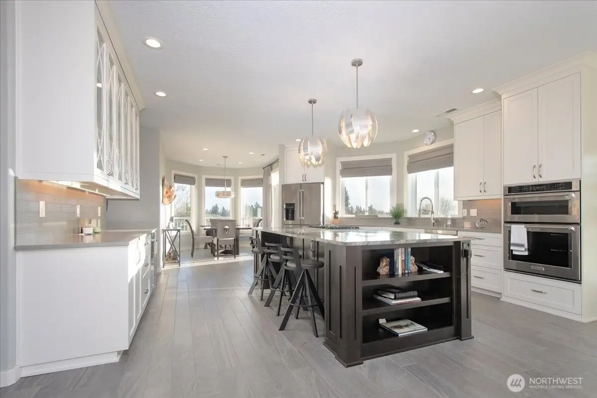 Nestled on 8 acres, this magnificent equestrian property is just 20 mins from PDX Int Airport. No expense spared during the design/remodel (by Lakeshore Design Studio) w/ the highest quality materials & the area's finest craftsmen. The remodel reflects the owner's desire to own the home forever & the quality is evident. High-end custom window treatments, main-floor heated ceramic tile, full security + home entertainment by Electronic Essentials. Every aspect of this home was executed w/style/function in mind. Contemporary kitchen includes 10'x5' Quartzite island w/5-burnerpropane range & eat bar. Pristine white cabinets, custom tile backsplash, sleek pendant lights, high-end stainless steel give the kitchen a modern yet functional appeal.