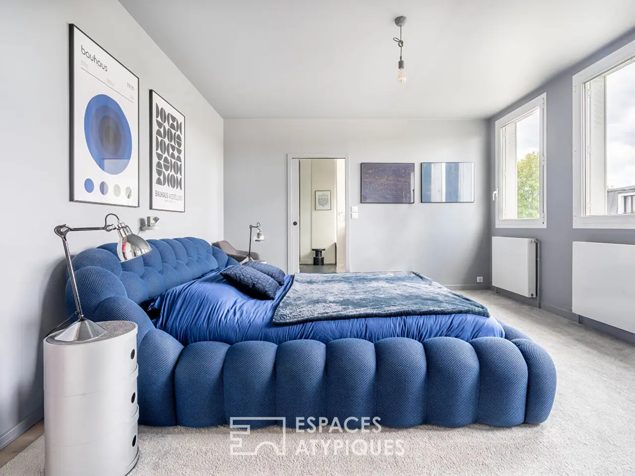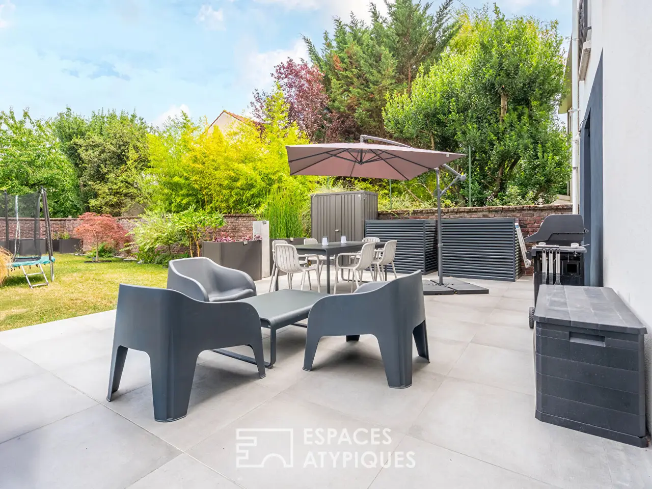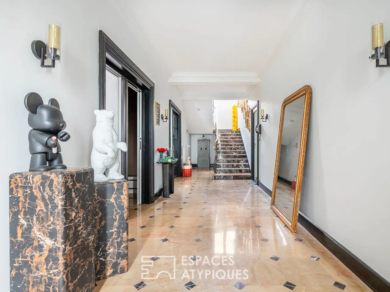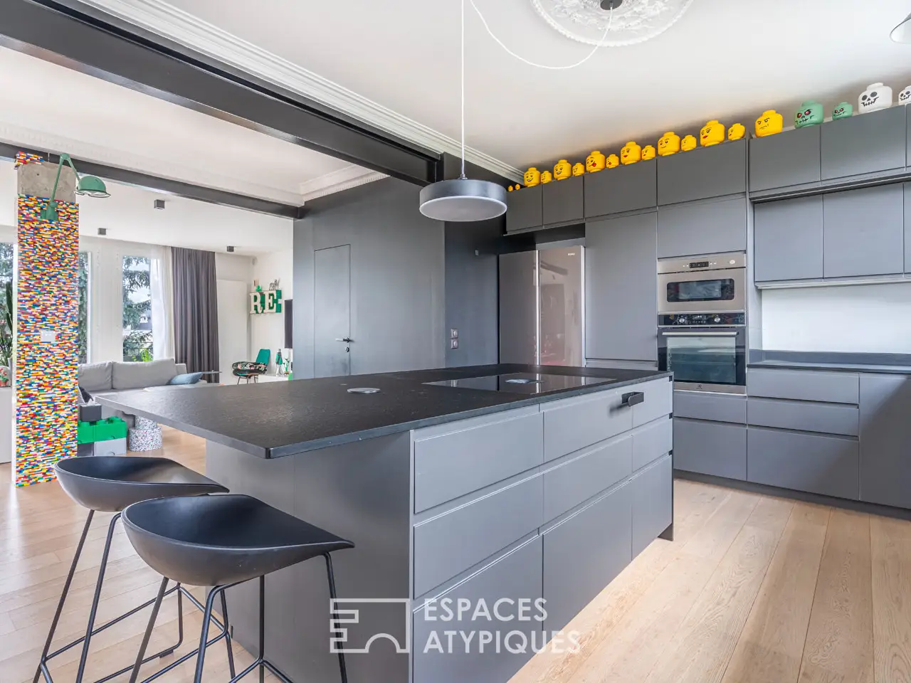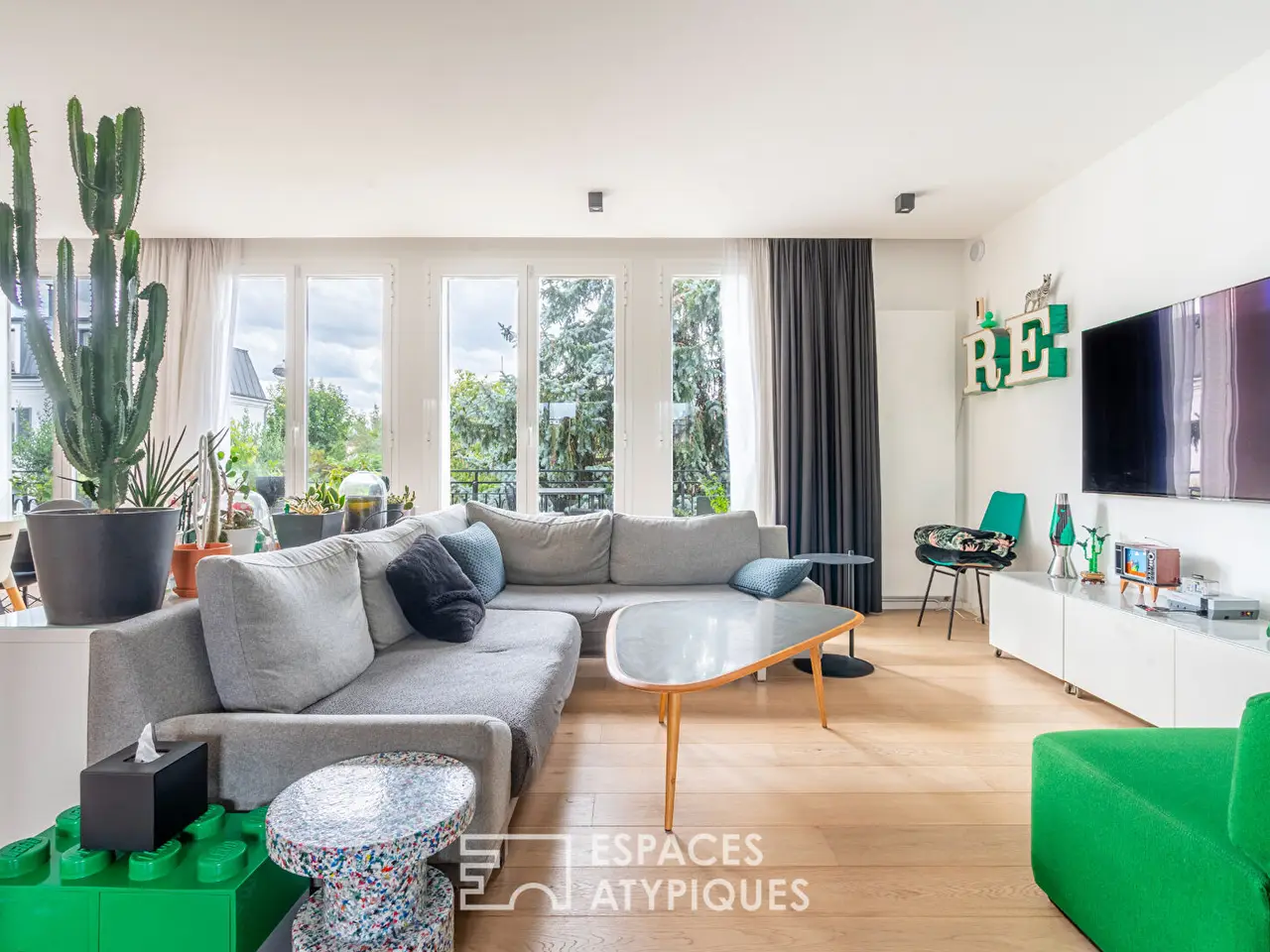 Located in the sought-after Pepiniere district, a stone's throw from the banks of the Marne, this house, built in 1969 and completely renovated in 2021, offers 305 sqm of living space on a 480 sqm plot. The heart of the house, the first floor captivates with a spectacular 75 sqm living room. Bathed in light thanks to its large bay windows, it is organized around a convivial kitchen, a dining room, and two living rooms, one of which features a gas fireplace. The whole opens onto a 20 sqm south-facing balcony, which further extends the already remarkable volumes. The ground floor sets the tone from the entrance, with a majestic hall of nearly 30 sqm, clad in marble and leading to an iron staircase adorned with gilding. This level opens first onto an office and then a dressing room, immediately revealing the generosity and multiplicity of spaces. A room currently converted into a games room with a toilet can easily be transformed into a bedroom opening directly onto the terrace. Finally, a summer kitchen used as a laundry room, also open to the exterior, completes this floor. An 18 sqm garage, suitable for a family vehicle and complemented by numerous storage spaces, completes this level. On the second floor, two bedrooms each have their own bathroom. A master suite, equipped with a dressing room and a bathroom with a bathtub and shower, offers an intimate and refined space. A separate toilet completes this level, while an attic of approximately 80 sqm offers additional development potential. The interior design, resolutely modern, gives each space a unique identity, the result of a renovation carried out with taste and rigor. Outside, a 400 sqm garden provides an ideal green setting for family life, just a few steps from the iconic promenades along the banks of the Marne. This house with its rare volumes, combining modern comfort, brightness and strong character, is an exceptional family home in one of the most sought-after areas of Bry-sur-Marne. Banks of the Marne: 2 minutes on foot School: 5 minutes on foot RER A Bry-sur-Marne: 15 minutes on foot REF. 12491 Additional information * 9 rooms * 4 bedrooms * 3 bathrooms * Outdoor space : 480 SQM * Parking : 2 parking spaces * Property tax : 4 406 € Energy Performance Certificate Primary energy consumption b : 98 kWh/m2.year High performance housing