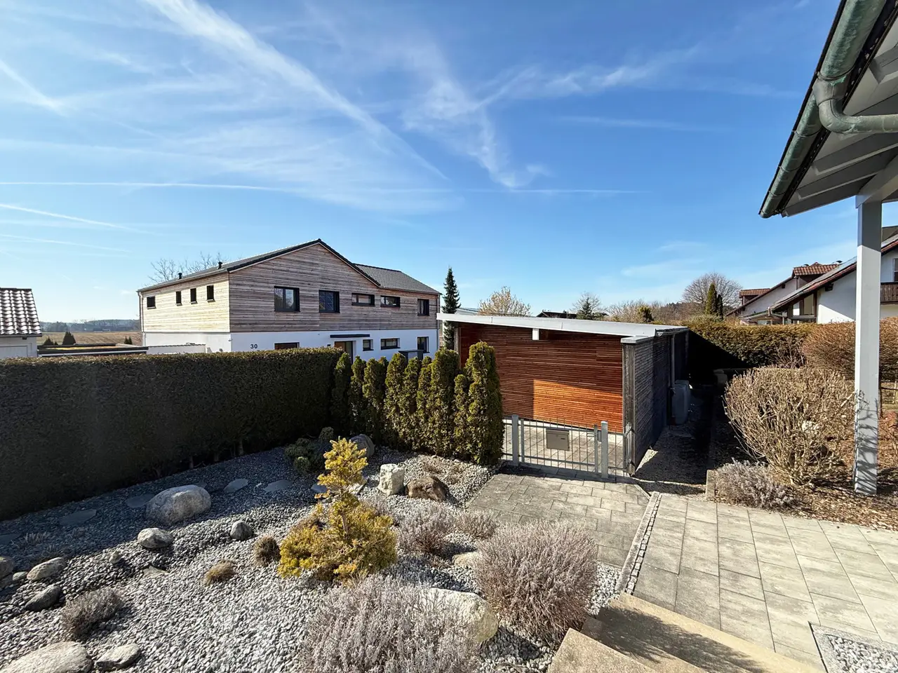 This impressive, extremely spacious detached house with separate granny apartment offers a wide range of possible uses - whether as a multi-generational home, for combining living and working or simply for spacious living with plenty of room for individual design. With a living space of approx. 368 m² on a plot of 1,408 m², nothing is left to be desired here. The house was built in 1978 in solid solid construction and was renovated and modernized to a high standard in 2013. The well thought-out architecture with up to three possible residential units creates maximum flexibility. Spacious living areas, light-flooded rooms and a converted attic ensure a pleasant living atmosphere with modern comfort. The tasteful combination of high-quality materials, the modern furnishings and the stylish design of the outdoor areas are particularly noteworthy. The lovingly landscaped rock garden gives the property an exclusive touch. Several terrace areas invite you to linger, while the modern carport with adjoining garden area offers ample parking space. This house combines luxurious living with well thought-out functionality and offers a rare opportunity for anyone looking for a spacious, comfortable home with versatile usage options. Come and view this property and be inspired by its many highlights.