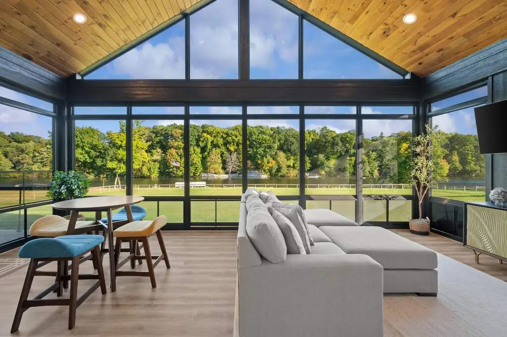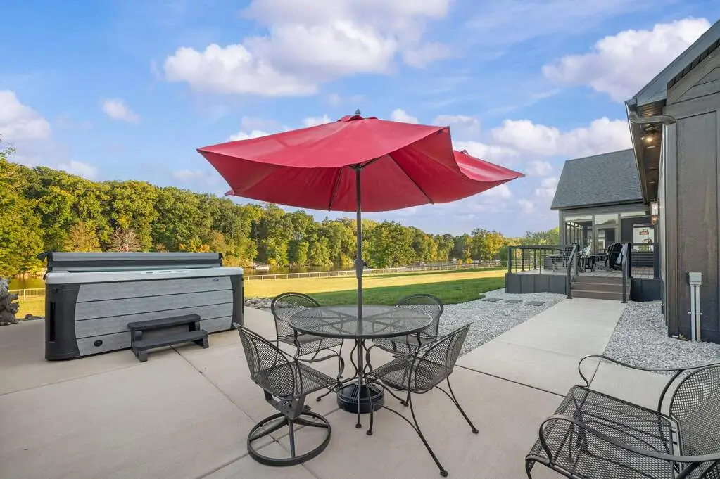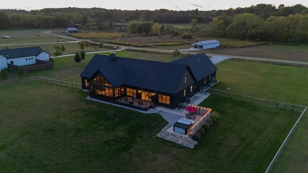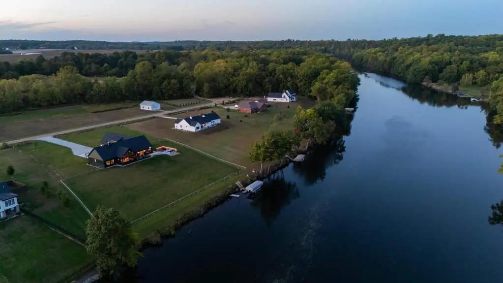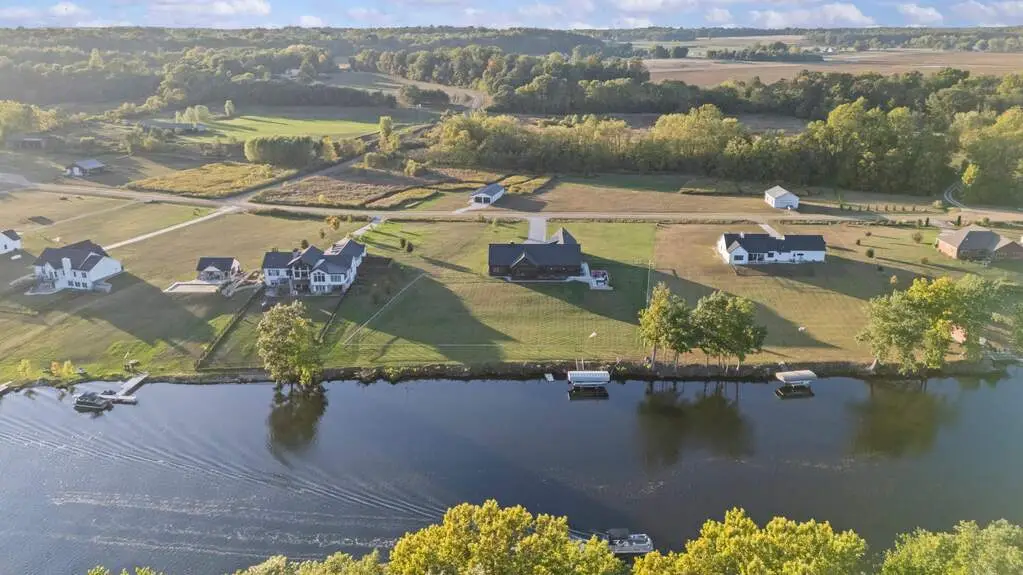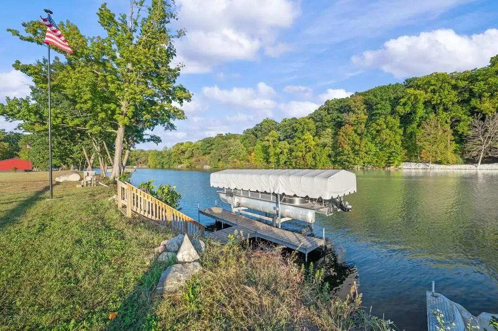 Country living on the St. Joseph River meets spacious custom construction at 14211 Deer Path. Set on 3.67 acres with quiet, peaceful 210 feet of river frontage and a private dock, this is a property made for every season. Arrive on a limestone driveway with extensive outdoor lighting that highlights the home and grounds. Morning coffee in the 3 season room. Afternoons boating or kayaking. Evenings in the hot tub under the stars with unobstructed views of the water. Step inside to a light-filled, open plan where the dining area, vaulted great room with fireplace, and chef's kitchen with Wolf appliances all center on wide river views. Enjoy primarily main level living, with 4,866 total sq ft of well appointed living space on two floors. The kitchen is designed for real life and real entertaining with a pot filler, steam oven, ice machine, generous prep space, a large butlers pantry, and clear sightlines to the great room, deck, 3 season room, dining room, and waterfront. The main-level river-view primary suite is a calm retreat with a gracious bath and large walk-in closet. One additional main-level bedroom and a full bath serve family and guests, while a separate family or game room, and two laundry rooms keep the household running smoothly. Upstairs, an expansive office or den with wine fridge pairs with a 3rd bedroom, a full bath, and a huge walk-in storage room, giving you flexible space for work, hobbies, or multigenerational living. There is also approximately 3,500 sq ft of storage space below the house for seasonal items, gear, and equipment. The Indoor/Outdoor living is dialed in. A beautiful 300 sq ft 3 season room and a large composite deck capture the views, and the concrete patio with private dining area and hot tub sits above the riverbank. 1 acre fully fenced backyard. The property's irrigation system pulls from the river to keep roughly two acres green without added water bills, with 15 zones and extensive coverage. A 40 by 40 concrete sport court with basketball pole offers everyday play and can host portable pickleball. The finished 4 car garage spans approximately 1,572 square feet with four individual 8 foot doors, a high tech open and close system, and depth and height to accommodate 4 full-size SUVs or trucks, or a boat/jet skis, plus a built-in dog wash and an extra storage closet. A buried propane tank is thoughtfully sited for clean curb appeal. Construction details include 2X6 wall and roof construction and 12 inch on center floor joists for strength and longevity. Approximately 400 feet of buried drainage handles gutter and site runoff for clean, dry walkways and landscaping. High quality construction materials include fiber cement style siding, supported by dual HVAC systems and dual water softeners for comfort and efficiency. A one-acre parcel across the street is included and is well suited for a future pole barn. The all sport St. Joseph River merges into Lake Chapin with approximately 600 acres of water, both are known for big and smallmouth bass, walleye, northern pike, and even sturgeon. Wildlife and birdlife are everyday neighbors here. Broad water recreation options right at your dock. Location matters. This quiet enclave off Red Bud Trail in Turkey River Run is just north of Buchanan, close to local wineries, farm-to-table restaurants, exclusive estates and stunning waterfront properties as well as top-tier golf. Lake Michigan beaches are within easy reach, with Warren Dunes State Park about 25 minutes away. Commuting or weekend trips are simple. Approximately 1.5 hours to Chicago, 30 minutes to South Bend and Notre Dame, and about 20 minutes to South Bend International Airport. Reader's Digest has recognized Buchanan among the ten best places to live in America, underscoring the lifestyle on offer here.