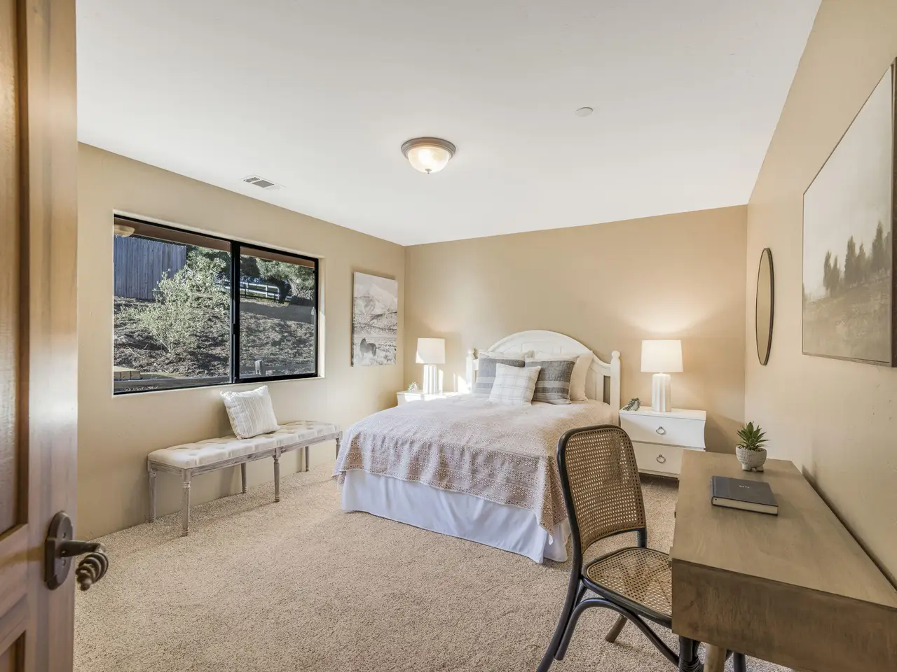 Exquisite craftsmanship and versatility define this custom Spanish ranch-style home on 5.78 tranquil acres in the gated Jonata Springs Ranch. Designed for those who love to entertain or dream of a small farm, horses, or multi-generational living, this property offers incredible indoor-outdoor flow and endless possibilities. The Arizona flagstone patio sets the stage for unforgettable gatherings, featuring a fully equipped outdoor kitchen, fireplace, and Bullfrog Jacuzzi overlooking peaceful hillsides--ideal for relaxing after a ride or a day in the garden. Inside, unique details abound: 100-year-old front doors, a one-of-a-kind signed entry light, and a stunning three-sided fireplace that warms the living area and great room. High beamed ceilings, Saltillo tile, and wood floors complement the open layout with dining area, wet bar, and spacious office. The home is wired for seamless work-from-home capability with Cat5e cabling and Ubiquiti Access Points. The chef's kitchen features knotty alder cabinetry, a stainless farmhouse sink, bar seating, and premium appliances all opening to the family room and patio. The primary suite offers a custom fireplace, spa-like bath, and direct access to the hot tub and outdoor shower, while two guest bedrooms provide comfortable accommodations for family or visitors. Even your fur babies are pampered with a dedicated climate-controlled dog room featuring automatic watering and direct yard access. A fully permitted 900+- sq ft workshop adds flexible options for hobbies, a studio, or future guest space. Residents of Jonata Springs Ranch enjoy 10+ miles of meticulously groomed, deeded equestrian trails and one of the valley's most reliable private water associations. Whether your dream is entertaining under the stars, keeping animals, or building a family retreat, this exceptional property offers the space, beauty, and freedom to make it yours. For additional Jonata Springs Ranch information visit jonatasprings.org