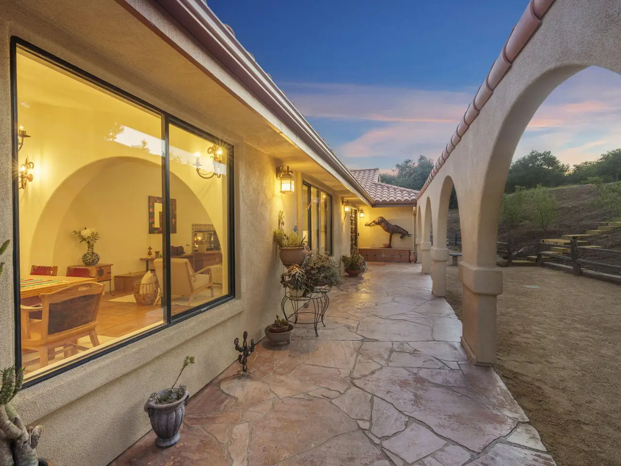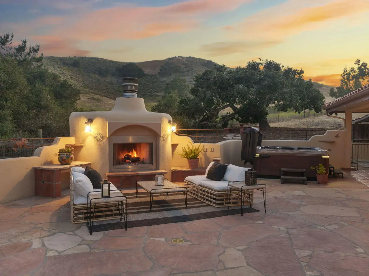 Exquisite craftsmanship and versatility define this custom Spanish ranch-style home on 5.78 tranquil acres in the gated Jonata Springs Ranch. Designed for those who love to entertain or dream of a small farm, horses, or multi-generational living, this property offers incredible indoor-outdoor flow and endless possibilities. The Arizona flagstone patio sets the stage for unforgettable gatherings, featuring a fully equipped outdoor kitchen, fireplace, and Bullfrog Jacuzzi overlooking peaceful hillsides--ideal for relaxing after a ride or a day in the garden. Inside, unique details abound: 100-year-old front doors, a one-of-a-kind signed entry light, and a stunning three-sided fireplace that warms the living area and great room. High beamed ceilings, Saltillo tile, and wood floors complement the open layout with dining area, wet bar, and spacious office. The home is wired for seamless work-from-home capability with Cat5e cabling and Ubiquiti Access Points. The chef's kitchen features knotty alder cabinetry, a stainless farmhouse sink, bar seating, and premium appliances all opening to the family room and patio. The primary suite offers a custom fireplace, spa-like bath, and direct access to the hot tub and outdoor shower, while two guest bedrooms provide comfortable accommodations for family or visitors. Even your fur babies are pampered with a dedicated climate-controlled dog room featuring automatic watering and direct yard access. A fully permitted 900+- sq ft workshop adds flexible options for hobbies, a studio, or future guest space. Residents of Jonata Springs Ranch enjoy 10+ miles of meticulously groomed, deeded equestrian trails and one of the valley's most reliable private water associations. Whether your dream is entertaining under the stars, keeping animals, or building a family retreat, this exceptional property offers the space, beauty, and freedom to make it yours. For additional Jonata Springs Ranch information visit jonatasprings.org
