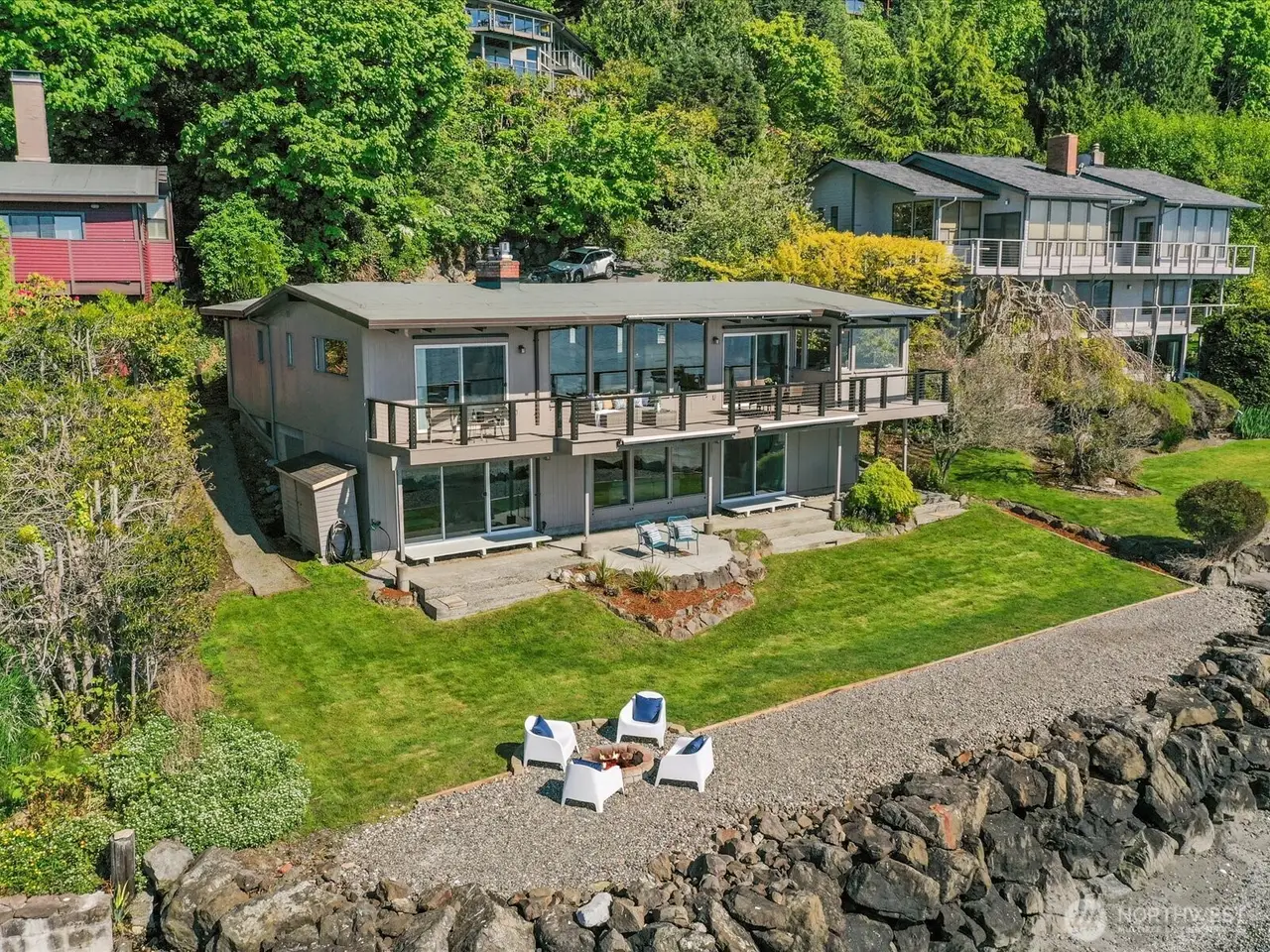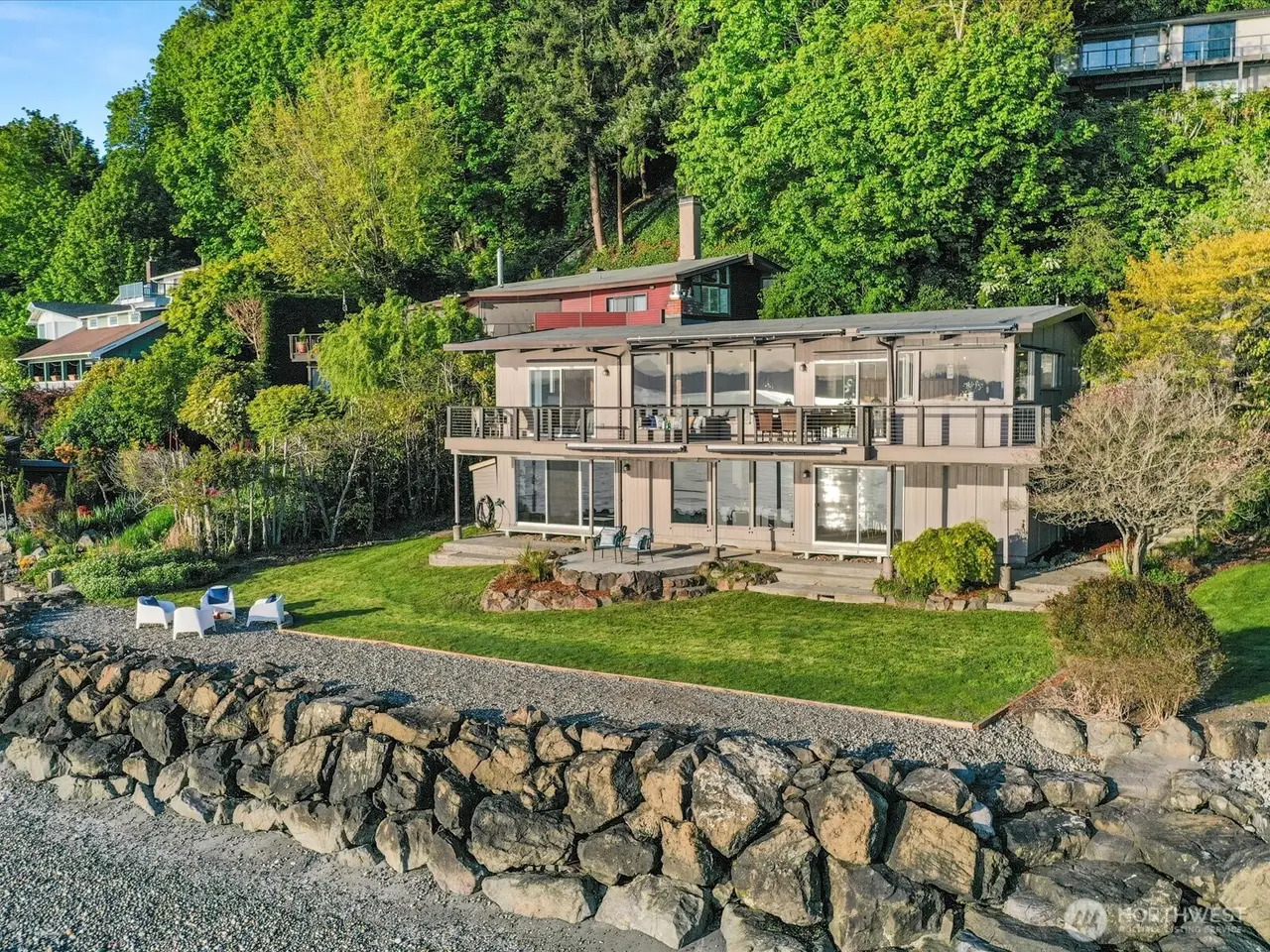 Tucked away in Seahurst, this waterfront haven offers over 180 of sweeping Puget Sound views and rare privacy on a coveted point. Unlike many homes in this area, you can drive up to your front door - no tram required. The beautifully updated kitchen features high-end appliances--double ovens, gas stove, built-in microwave--and cozy in-kitchen seating to enjoy sunrise with your coffee. Upstairs glows with refinished Red Oak floors and fresh paint, while the primary bath includes a heated mirror in the shower. Entertain on the main-level deck with front-row seats to orcas and seals. There's room for up to five vehicles, plus generator wiring and an outdoor shower--pure Northwest coastal luxury. 4th bedroom downstairs is non-conforming.