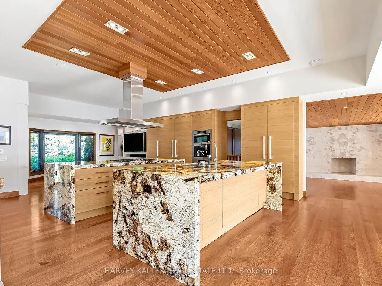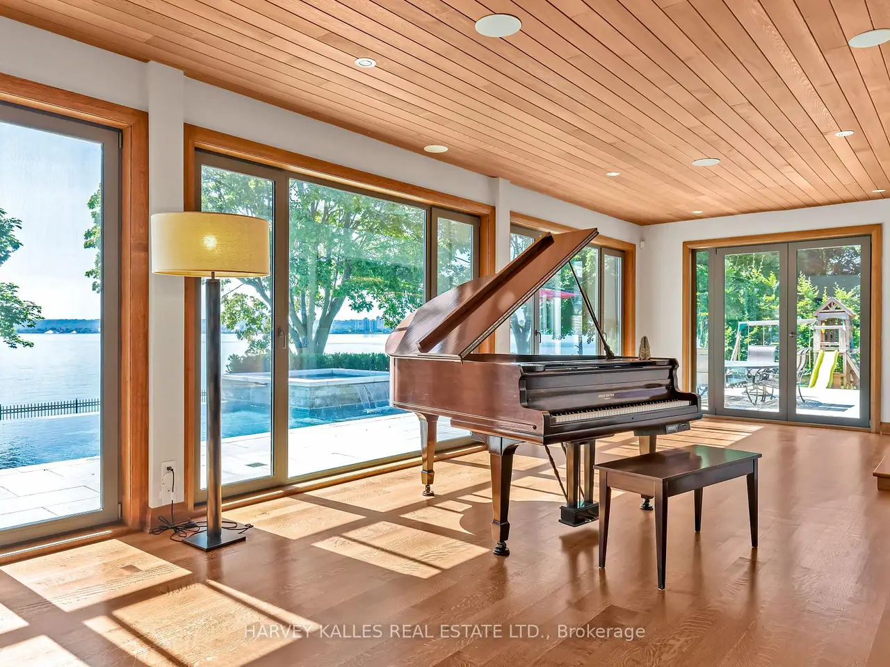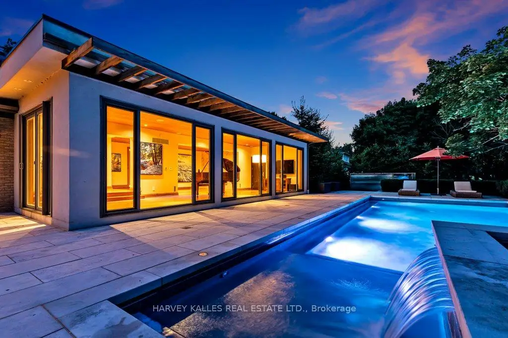 Exclusive and ultra-private, this street is home to many of Canada's most prominent families. Located on the shores of Lake Ontario, it has almost an acre, with Burlington and Oakville minutes away. The multi-million renovation on this bungalow has transformed it into an open concept West Coast modern aesthetic using natural materials of wood, marble, stone and granite. The architecture embraces the natural setting, offering multiple glass walk-outs to the water and views from all the principal rooms. The hot tub, pool with infinity edge overlooking the Bay is irresistible! One a few properties that are allows for a dock. Imagine this: after work, you pop into your boat or kayak for a quick workout before slipping into the hot tub. The Great Room has a book-matched marble floor-to-ceiling marble fireplace that is calling for a roaring fire on a winter’s night. The Observatory Room is special place, whether it is evening drinks or morning cappuccino you will find yourself drawn to sit and watch the lake. EXTRAS: Air exchanger, alarm system. Separate heating controls, hot water tank and irrigation system.