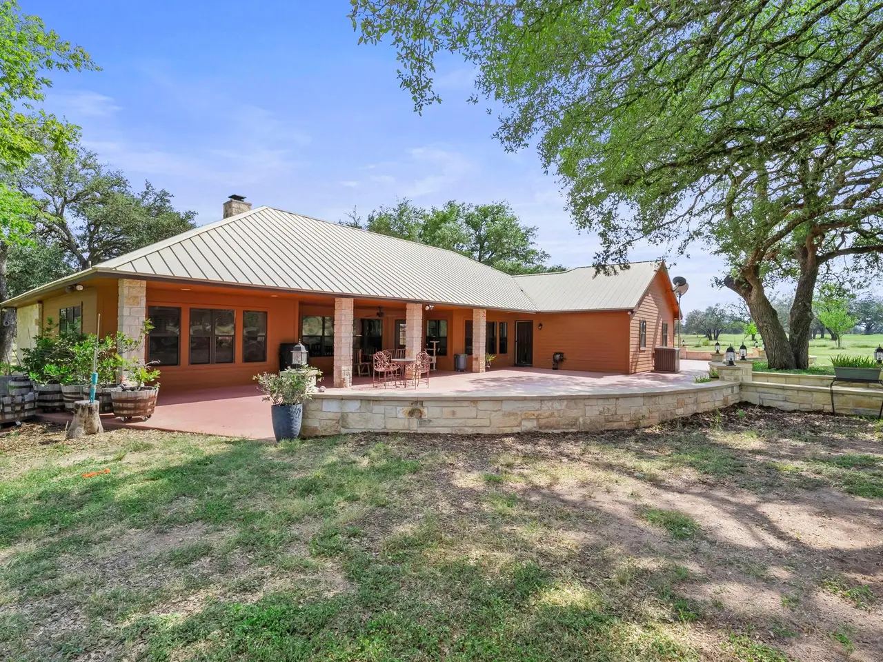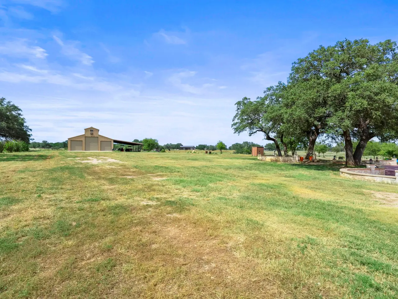 Wow! 10 beautiful acres cleared of cedars and full of oaks! Country setting with gated and fully fenced acreage, one story home offering flowing floorplan and great backyard space, PLUS huge metal barn with utilities. Ready for pets, people, plants and hobbies, this property offers easy access to Marble Falls and Burnet and a great North/South orientation. Room for toys, rvs, boats, etc. to be stored safely and out of the elements. Add to your hobbies, while enjoying the country life! Low tax rate and carrying costs.