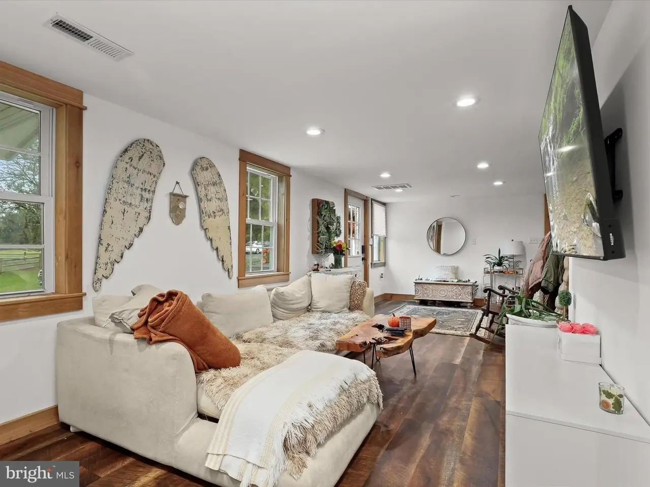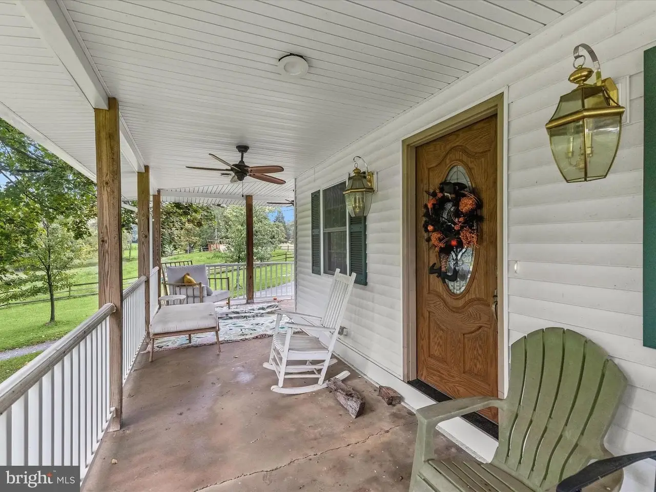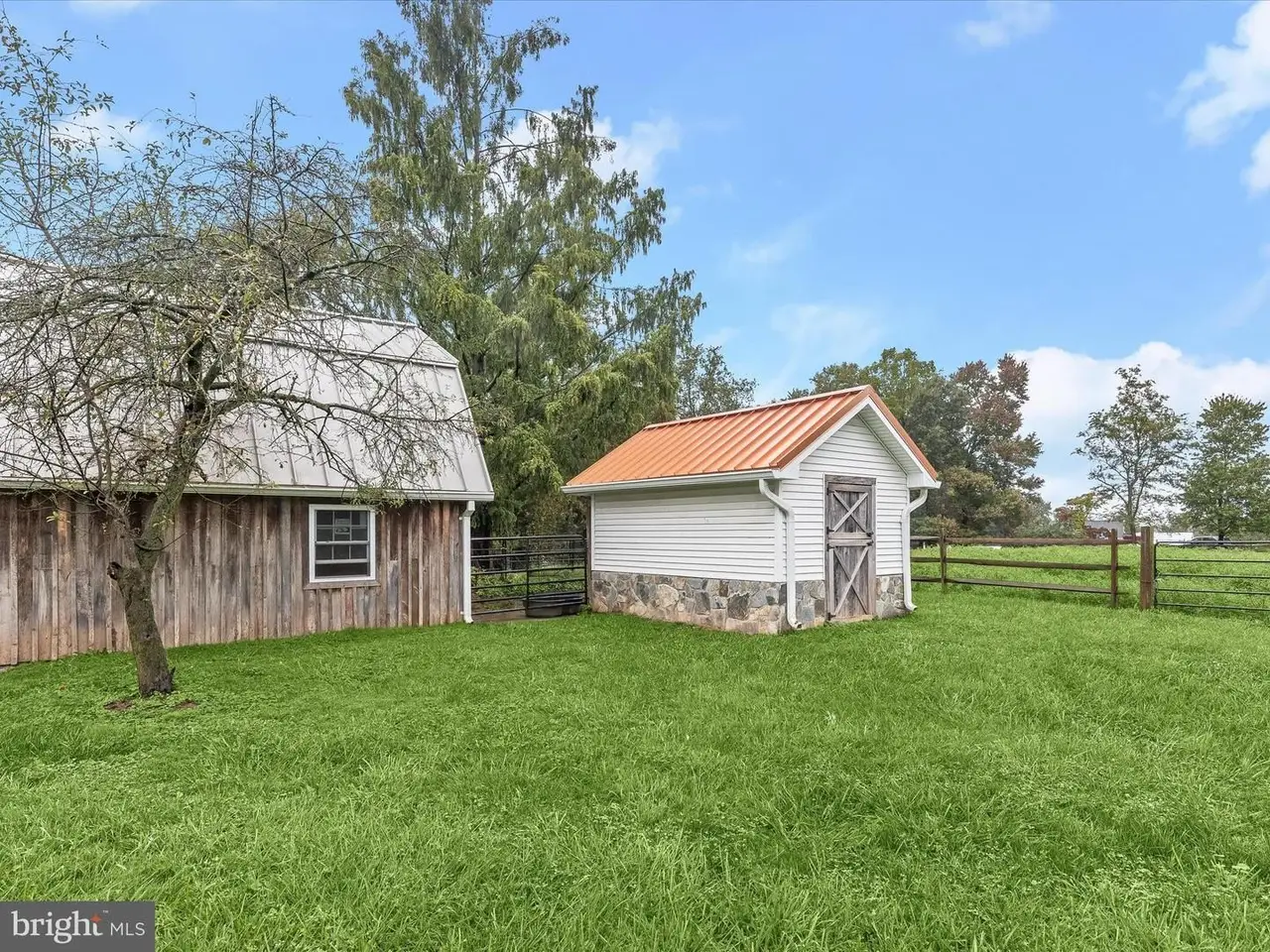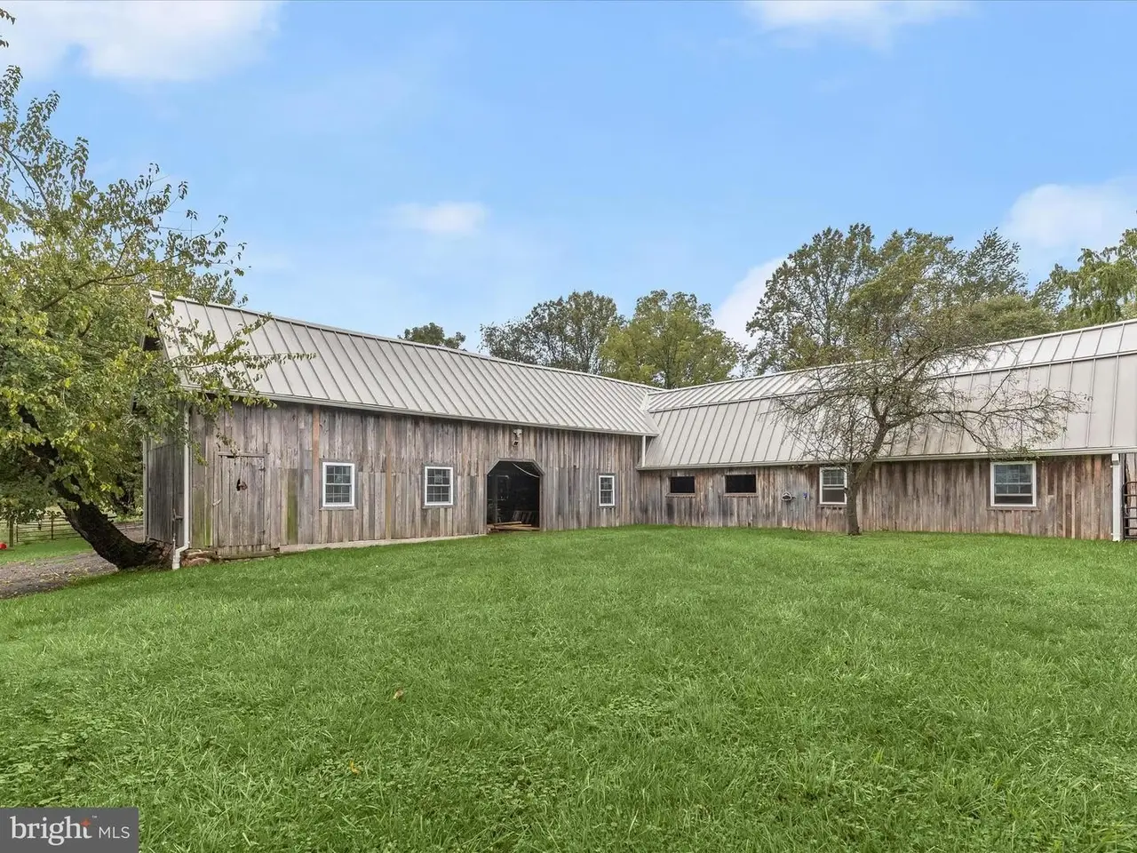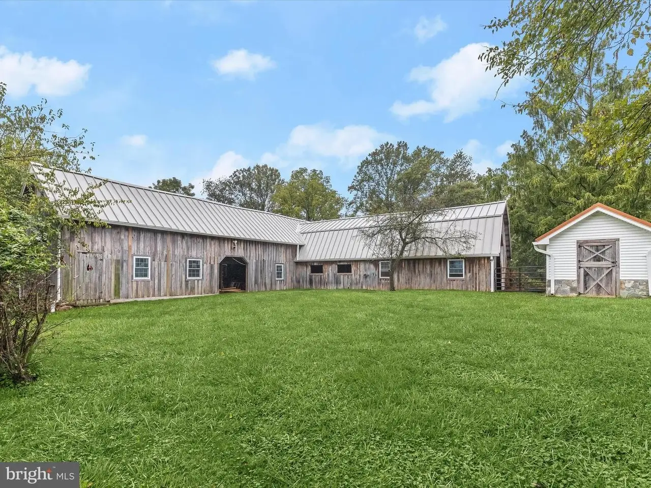 Nestled on a picturesque 10.86-acre pastoral lot, this charming farmhouse offers the perfect blend of rustic charm and modern amenities, featuring two bedrooms and a full bathroom. A welcoming covered wraparound front porch greets you, leading into a bright interior adorned with a neutral color palette, recessed lighting, and sun-filled windows complemented by luxury vinyl plank flooring. The open-concept main level showcases a relaxing living area and a dining space that boasts a brick fireplace with a wood-burning stove, perfect for cozy gatherings. The well-equipped kitchen impresses with stainless steel appliances, granite counters, a brick backsplash, soft-close cabinets, a breakfast bar, and a pantry. This level also includes a convenient laundry room, along with versatile unfinished storage and bonus rooms. Upstairs, you will find the two bedrooms and the full bathroom with a tub shower. A nook at the end of the hallway could easily function as an office or workout space with French doors that lead to the rear balcony. A utility room for additional storage completes the upper level. Outside, the expansive barn is equipped with electricity and two stalls that open into one of the fenced pastures. A separate shed provides even more storage. This retreat is ideal for those seeking tranquility and space to roam.
