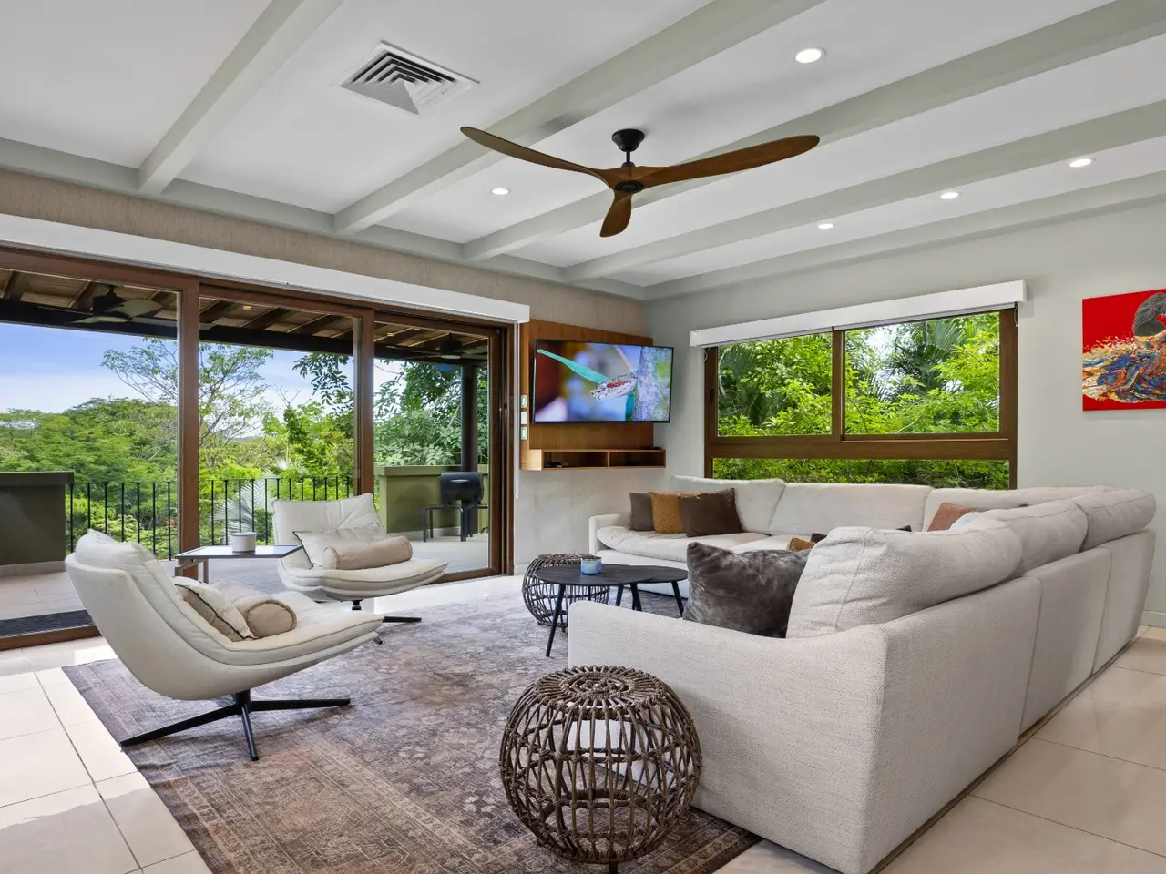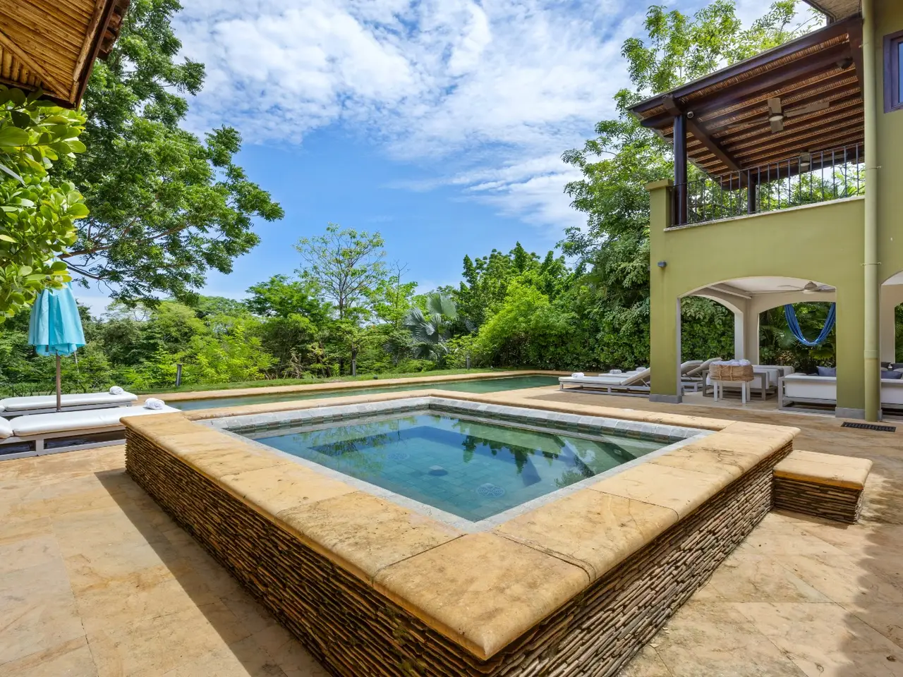 Welcome to Villa Carao #11, a sophisticated sanctuary located within the exclusive and gated Reserva Conchal community—one of Costa Rica’s premier luxury beach and golf resorts. This exquisitely renovated 4-bedroom, 4.5-bathroom villa spans over 6,781 sq ft (630 m²) across two thoughtfully designed levels, offering elegant indoor-outdoor living with spectacular golf course views and upscale amenities throughout. Refined Living Spaces The heart of the home features a bright, open-concept layout with high-end finishes, LED lighting, and elegant custom woodwork. A newly remodeled chef’s kitchen is outfitted with top-of-the-line appliances, two sink areas, abundant cabinetry and expansive countertops. It is ideal for culinary entertaining! Seamlessly connected to the interior, the lower level's expansive covered veranda invites space for outdoor dining and serene lounging with panoramic views of the Robert Trent Jones II–designed golf course. Whether sipping coffee at sunrise or hosting a sunset gathering, the setting is nothing short of spectacular. Private Bedroom Suites Each of the villa’s four bedrooms offers privacy, comfort, and style—each with its own ensuite bathroom: • The primary suite on the main level boasts a King bed, oversized walk-in closet, private terrace, and spa-inspired bathroom with skylit shower and two-person Jacuzzi tub. • A second main-level bedroom features a loft bed with a desk and garden views. It offers extra closet space. • Downstairs, a spacious guest suite includes two Queen beds, a sleeper sofa, and terrace access • Last, the 4th bedroom is currently being used as an office. Each has its own private bathroom with a convenient exterior door for poolside access. Luxury Outdoor Entertaining Designed for the ultimate in relaxation and entertaining, the villa’s outdoor living area features: • A newer custom pool and jacuzzi surrounded by lush tropical landscaping • A state-of-the-art summer kitchen with BBQ, dishwasher, and outdoor dining • Electric privacy blinds that convert the terrace into an enclosed, breezy living room • Hammocks, sun loungers, outdoor shower, and beautifully maintained gardens (HOA includes landscaping and irrigation) Additional highlights include a full generator (covered by HOA), custom electric blinds and LED lighting throughout, and generous walk-in closets for ample storage. A secondary entertainment kitchenette on the lower level offers double ovens, a wine and beverage refrigerator, and extensive storage. It is perfectly positioned for effortless poolside hosting! Lifestyle & Location As a privileged owner of Reserva Conchal, you gain exclusive access to: • A 60,000 sq ft private Beach Club with infinity pool and fine dining • A world-class fitness center, hiking and biking trails, dog park, and skate park • Stand-up paddleboards, kayaks, bikes, billiards, and nearly daily events • Discounts at 13 restaurants and 2 spas, plus vibrant community volunteer opportunities Ideally located just 2–10 minutes from the top international schools (La Paz, CRIA, Educarte), and only 1 hour from Liberia International Airport, Villa Carao #11 offers both unmatched convenience and a front-row seat to the best white sand beach in the region—Playa Conchal. Villa Carao 11 isn’t just a home—it’s a lifestyle. Don’t miss your chance to own a luxury golf villa in Costa Rica’s most coveted resort community. Schedule your private tour of Villa Carao #11 today.